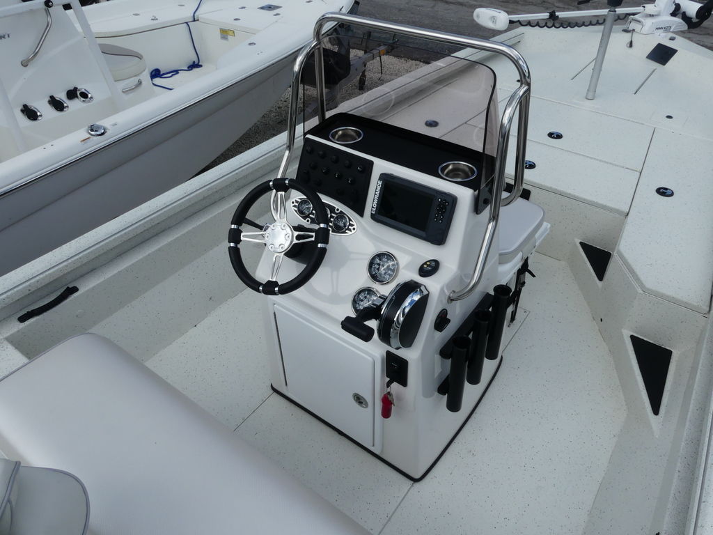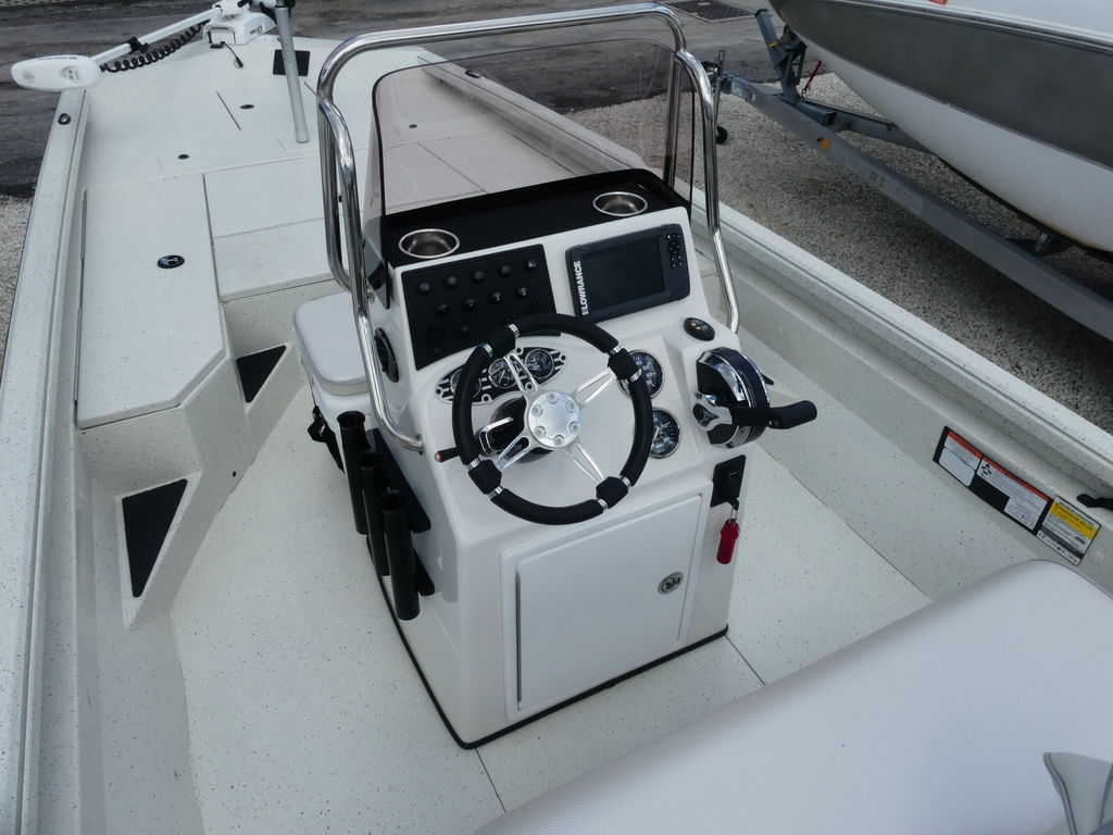The all-new RB200 packs more muscle in a bigger hull for greater performance, stability and capability to take you further than ever. The pad-bottom hull is designed for a dry ride that planes in a hurry, even in the shallows. The all-welded hull delivers strength in chop while precision steering and throttle control give you the ultimate in command. The wide, stable front casting deck delivers huge room for multiple anglers, and the interior is perfectly tailored for taking on inshore fisheries or a bass tournament with dual livewells and rod boxes, a huge in-deck storage and storage under the rear jump seats. At the helm, electronics up to 9" may be flush mounted and membrane-style switching delivers convenient simplicity. The ruggedized Ranger Trail® trailer is constructed with all-welded aluminum for the utmost in corrosion-resistant strength. Diamond plate fenders offer a step up and protection from road debris. A new camo version is more than just a paint scheme, this special rig features blacked-out badging, matte black closures and console railing, along with an all-black steering wheel for maximum concealment. No matter where your quarry swims, the enhanced capability of the all-new RB200 is designed to Dominate Inshore and Nearshore.