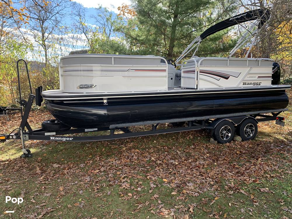 2020 Ranger Reata RP 220C 24' 2 long pontoon boat with a 102 deck width, a maximum horsepower of 150 HP, and a 32-gallon fuel capacity.