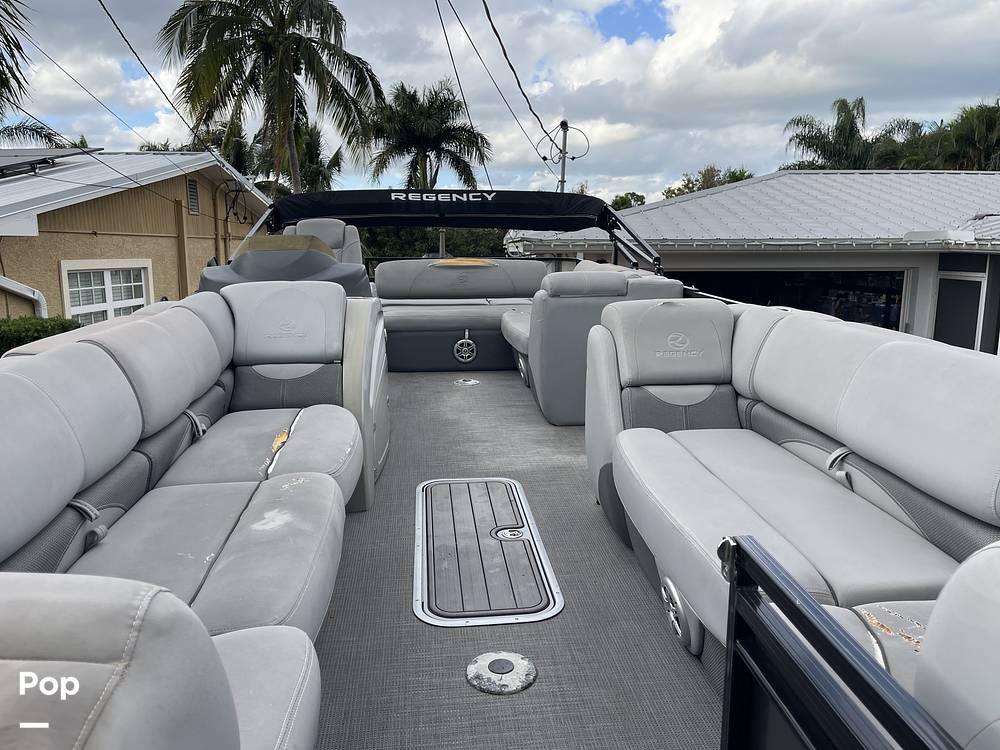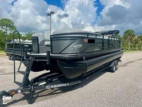 This beautiful 2020 Regency 250DL3 Tritoon/Pontoon boat comes with a Mercury 300hp Verado 4-stroke outboard engine with low hours and a tandem axle trailer with brakes!
