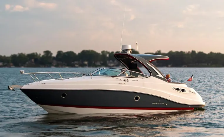 3K PRICE IMPROVEMENT 9-8-25! (CURRENT OWNER OF 1 YEAR) THIS 2020 RINKER 290EX IS A MUST FOR CONSIDERATION. PLEASE SEE FULL LISTING DETAILS.This freshwater vessel features a Mercruiser 8.2 Liter MAG (380 hp), with only 120 hrs. Bow Thruster, A/C-Heat, Windlass, Simrad GPS/Chartplotter, Raymarine VHF, Premium Stereo system with Bluetooth audio, Camper Top with screens, Bow sun pads, and much more!