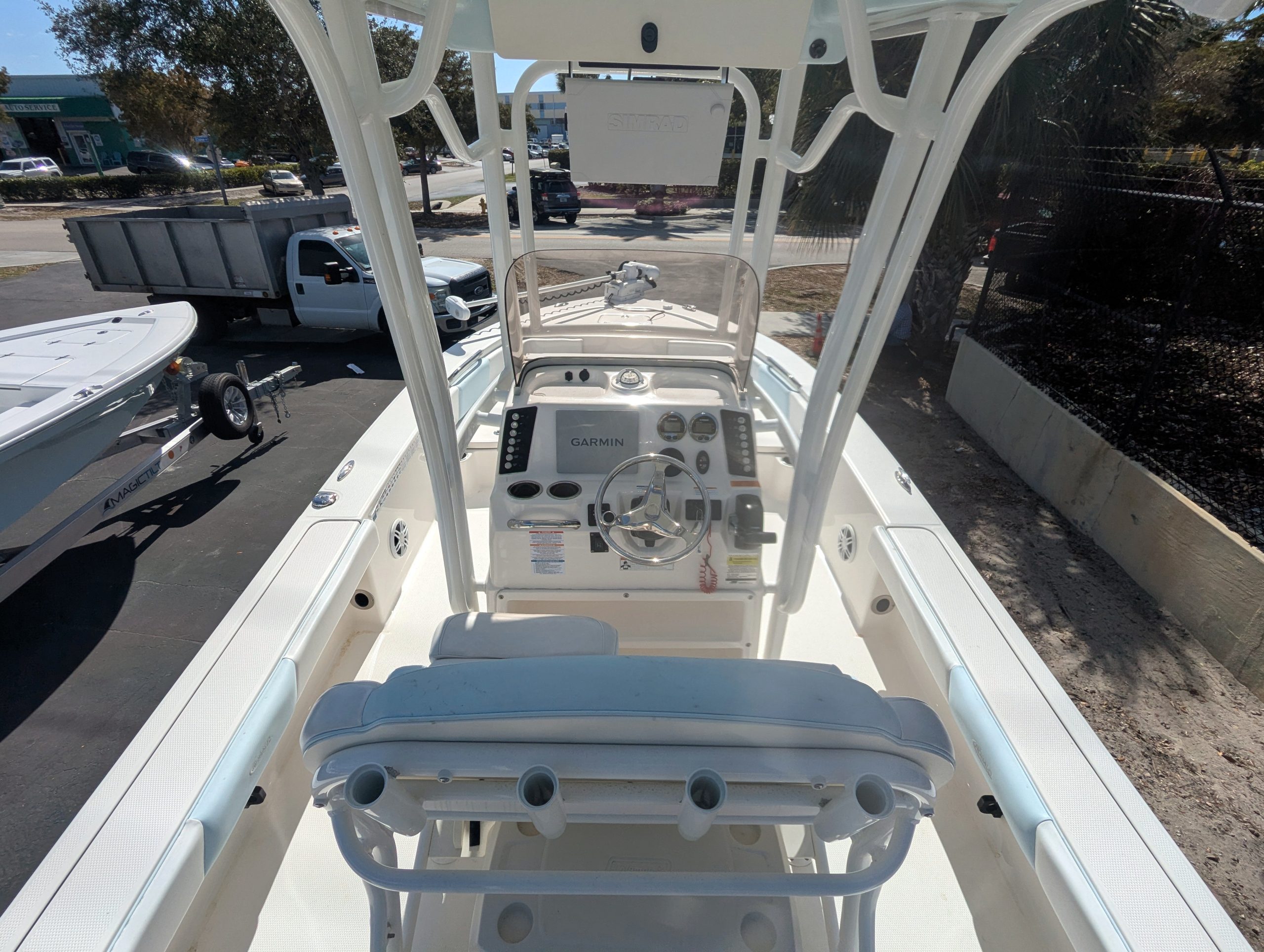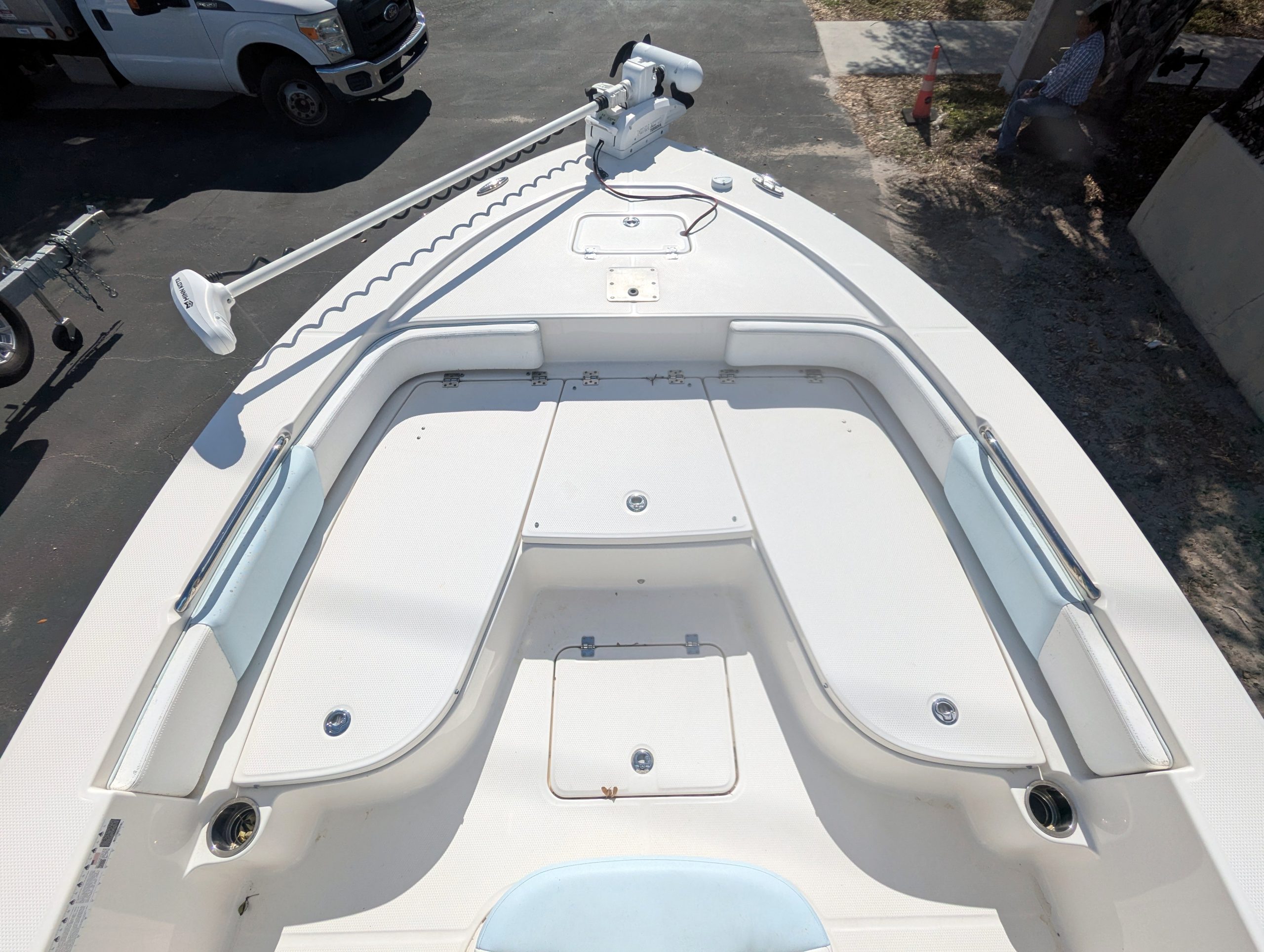 It features a 10’ Power-Pole shallow water anchor and a 112 lb thrust 36V Minn Kota Riptide trolling motor for serious inshore capability and precise boat control.
