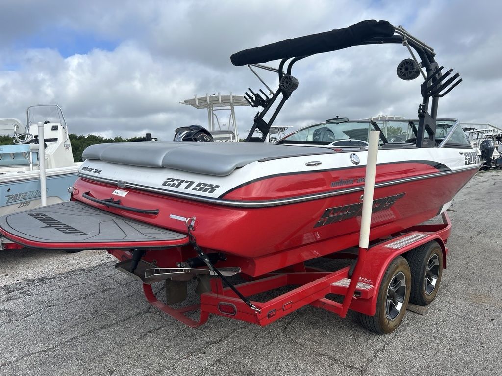 The 2020 Sanger V237 SX is a 23-foot, 5-inch watersports boat designed for families and wakeboarding, offering a smooth ride, nimble handling, and substantial space for up to 14 passengers. Key features include a deep V-hull, a deluxe wakeboard tower, a surf system for customized wakes, a digital dash with a touchscreen, ballast systems, and a lifetime hull warranty, all powered by a custom Indmar engine.