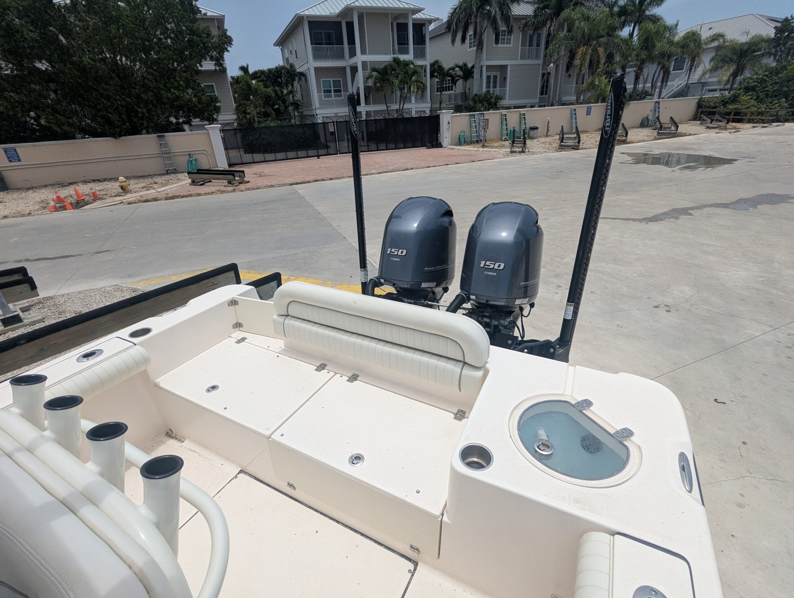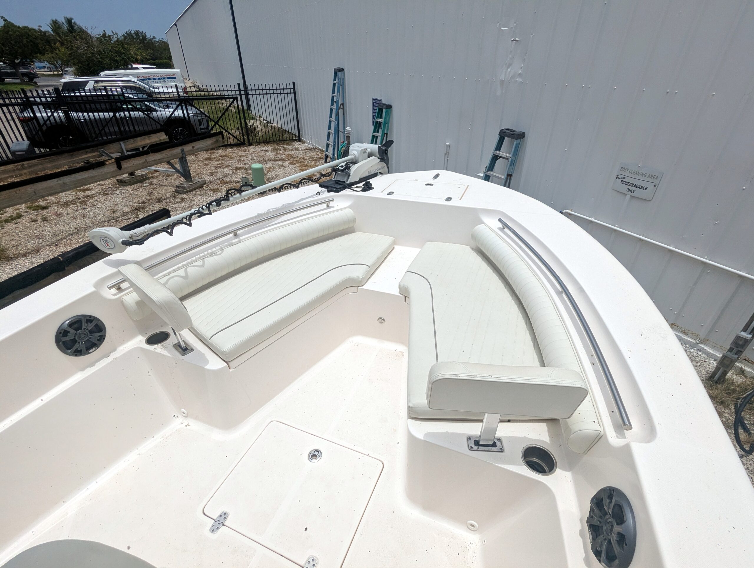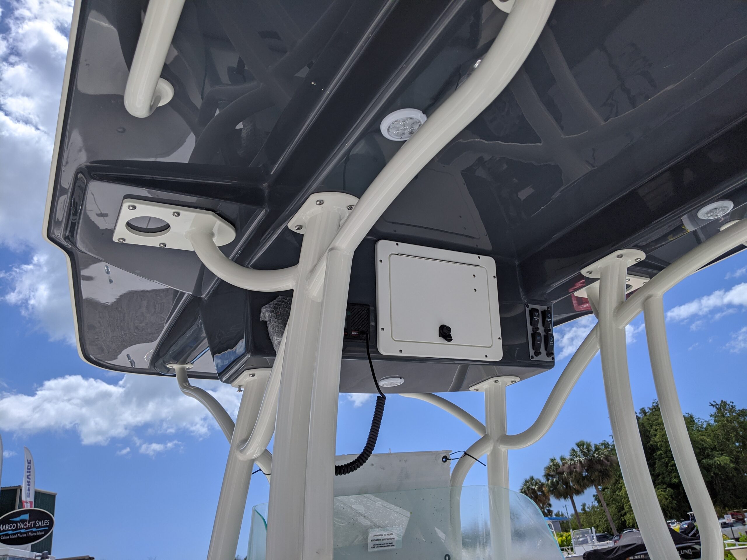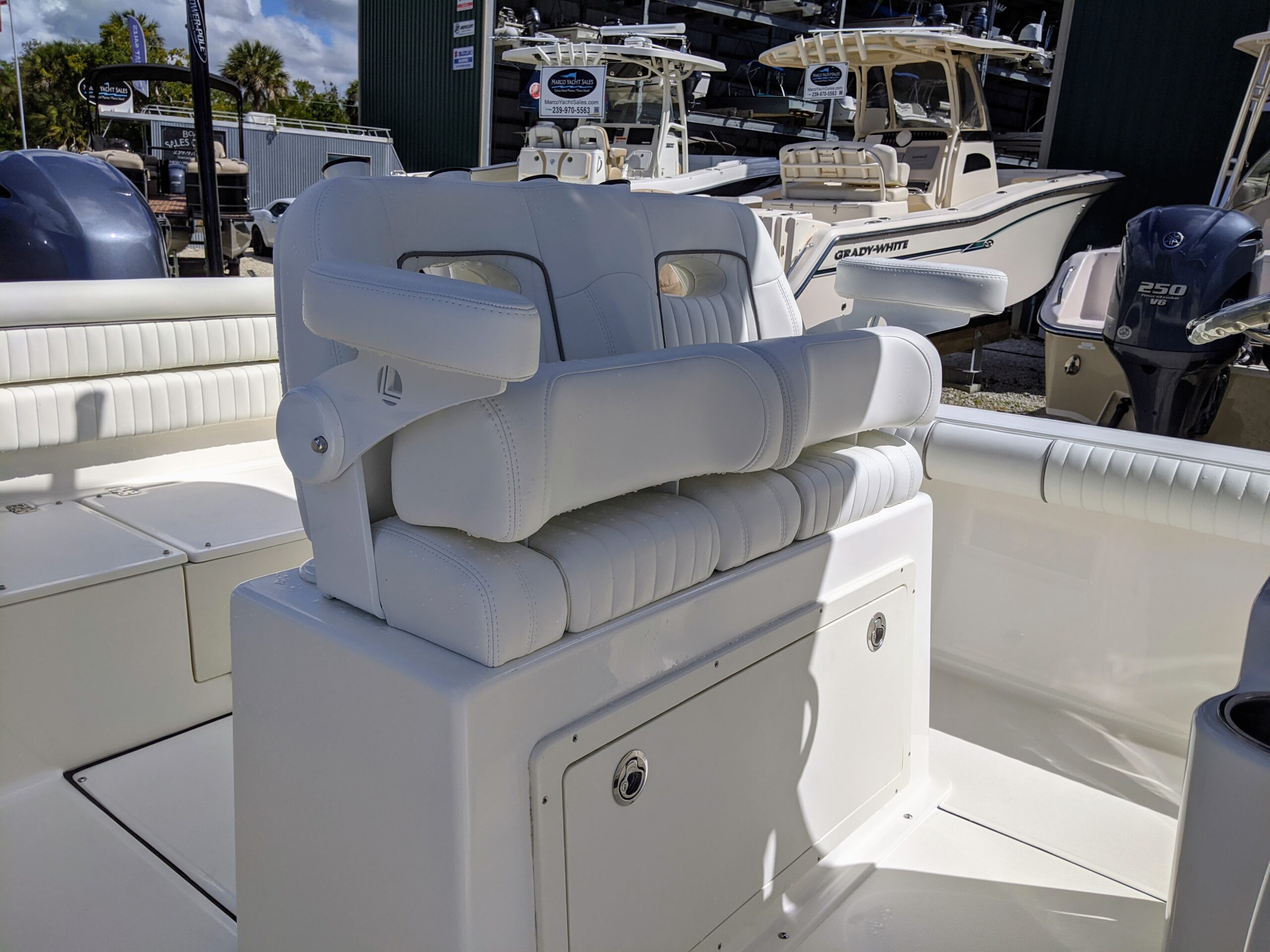 FEATURES: LE PACKAGE, Hard Top w/ Wired Electronics Box, Underside Color Matched Top, 2 Additional All Weather Speakers, Select Cushions: White / White Pleat 3 ft. Ant. / SS Mount Power Assist Steering Upgrade Porta Potti w/ Pump Out Fitting Upgrade LP Bolster Seat to Llebroc Billfish Bench Power Powder Coat Package (With Top) - White