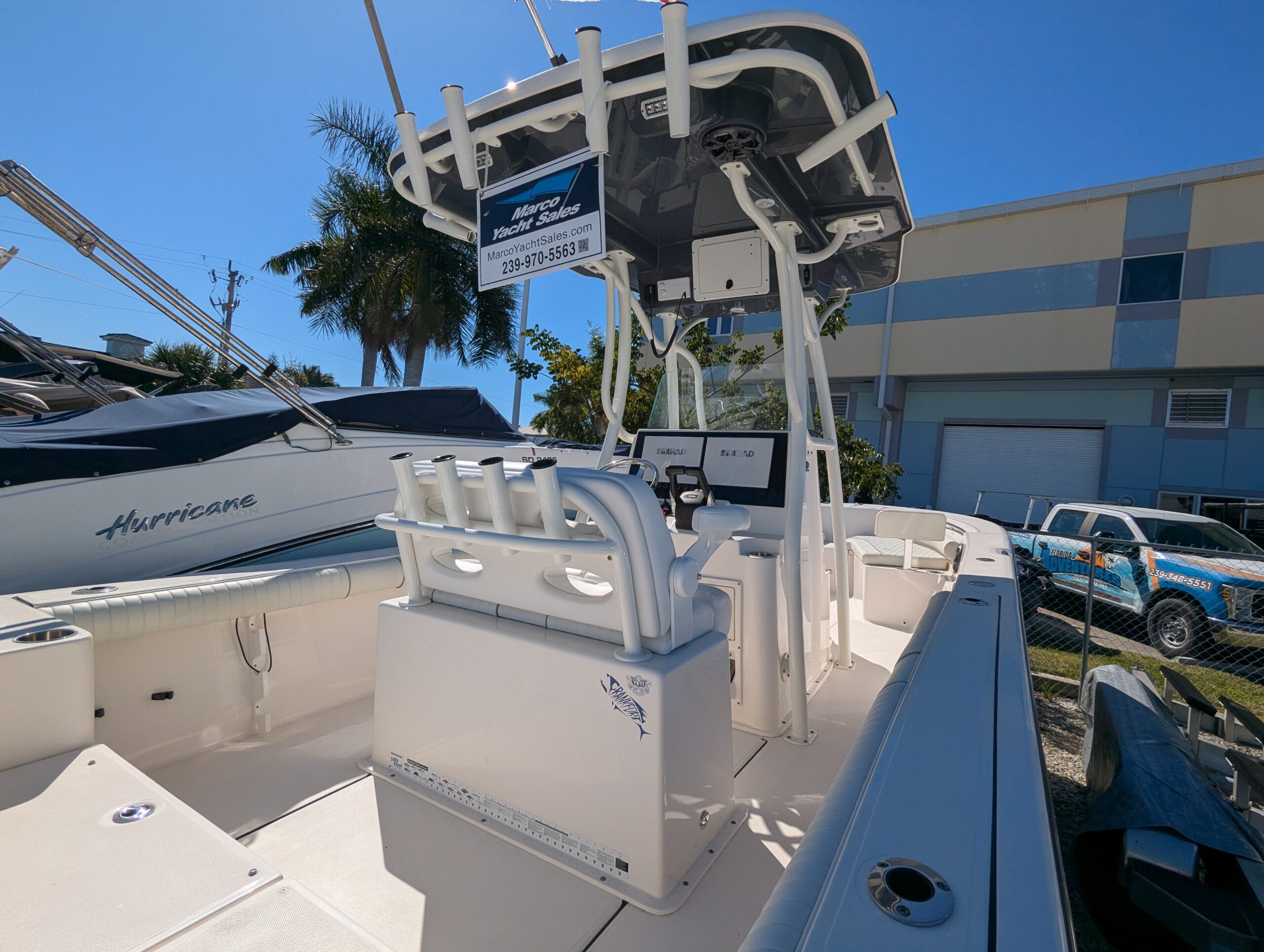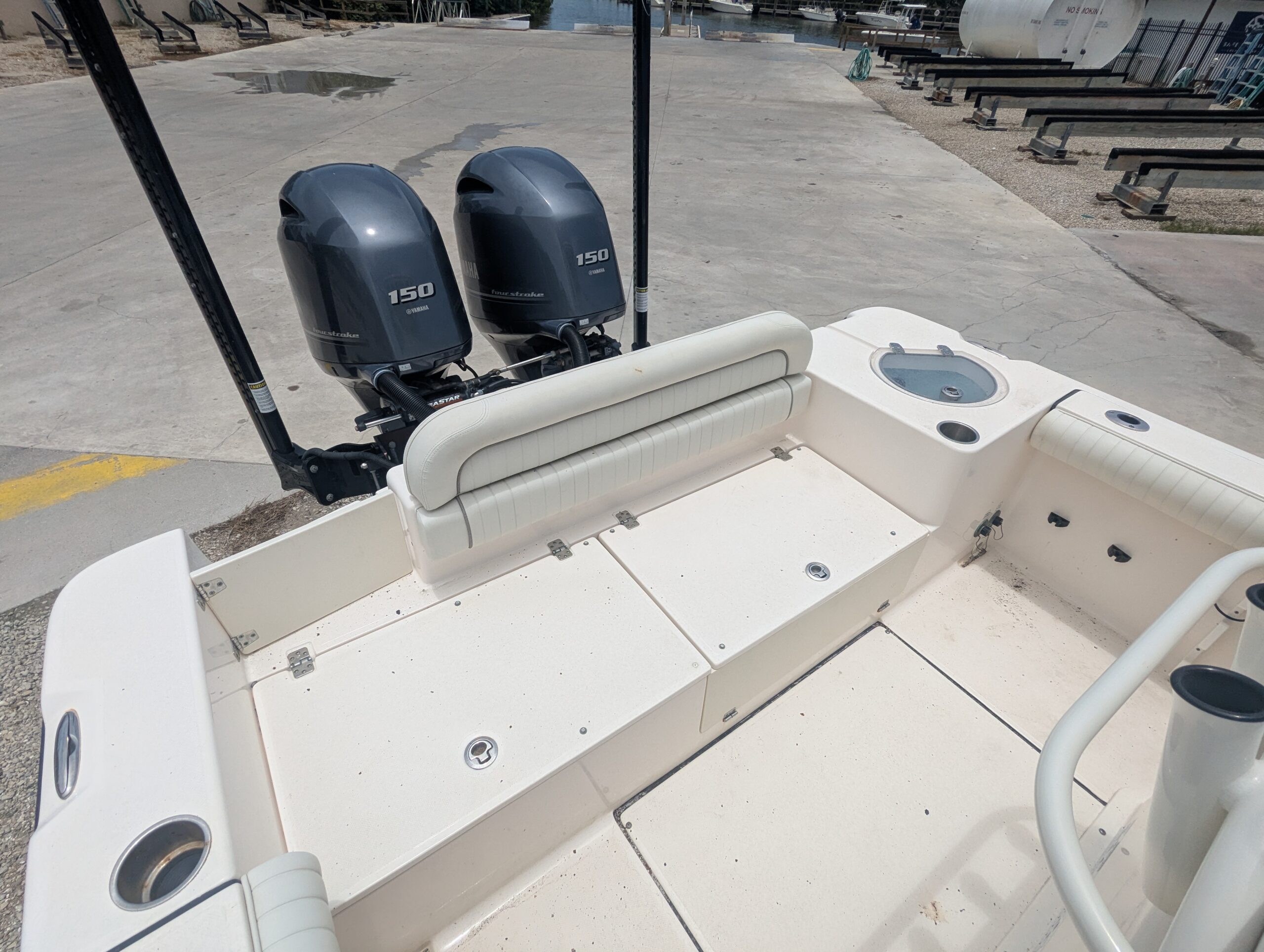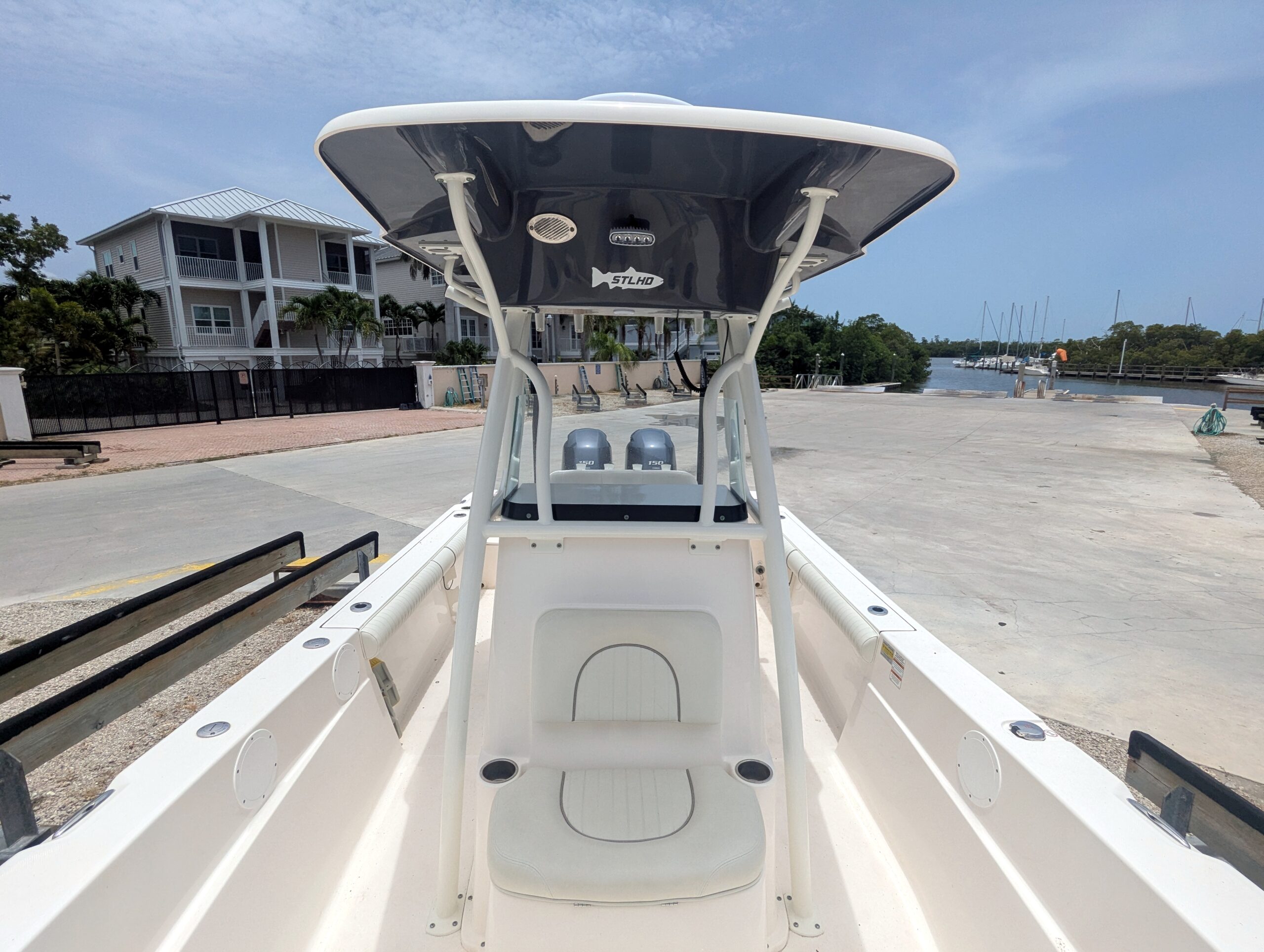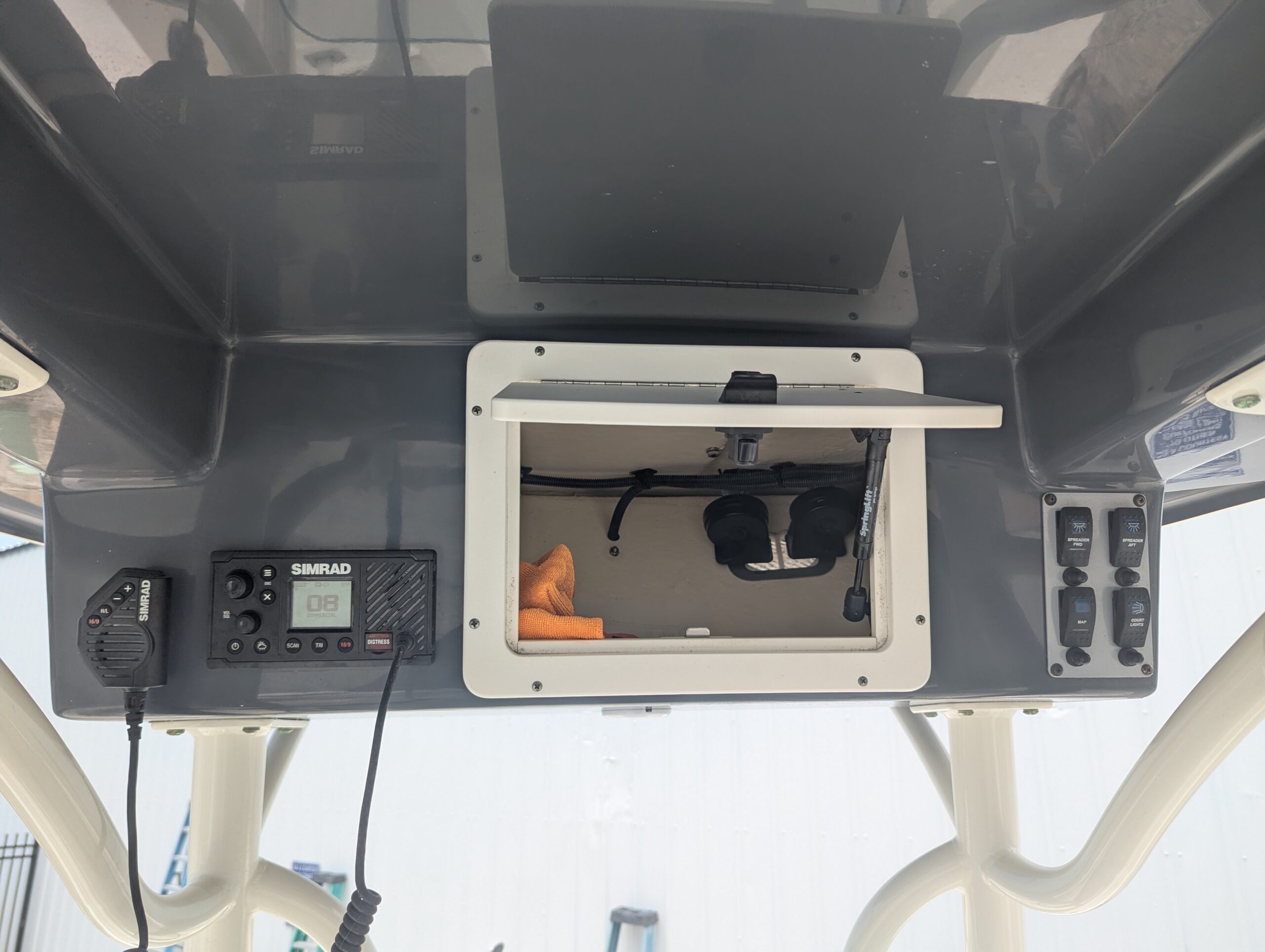 FEATURES: LE PACKAGE, Hard Top w/ Wired Electronics Box, Underside Color Matched Top, 2 Additional All Weather Speakers, Select Cushions: White / White Pleat 3 ft. Ant. / SS Mount Power Assist Steering Upgrade Porta Potti w/ Pump Out Fitting Upgrade LP Bolster Seat to Llebroc Billfish Bench Power Powder Coat Package (With Top) - White