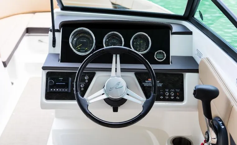 Freshwater / Great Lakes boat since new this vessel features a Single MerCruiser 4.5-litre MPI ECT 250-hp Gas Engine with Alpha I Sterndrive. Notable features include but are not limited to the following: Canvas Package (Cockpit Mooring, Bimini Top), Premium Fusion Sound System, Swim Platform w/Boarding-Ladder, and MUCH more!