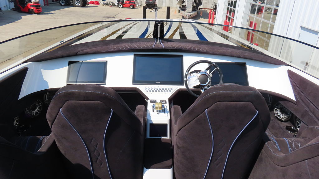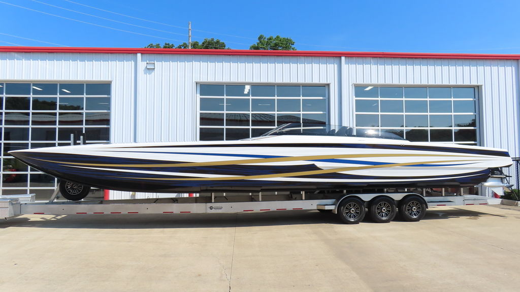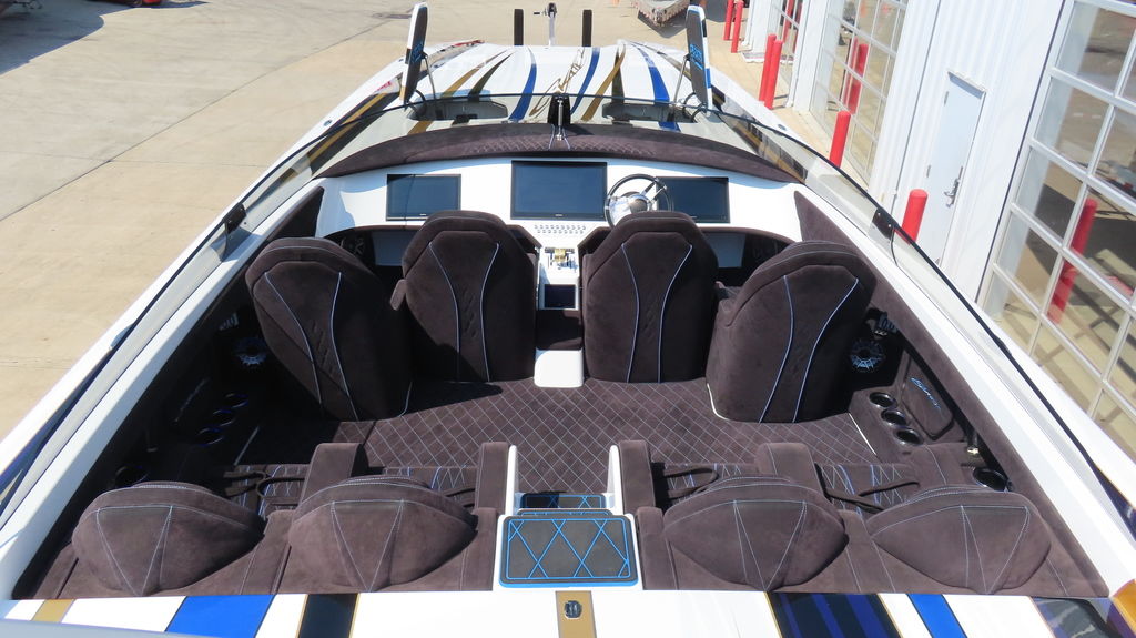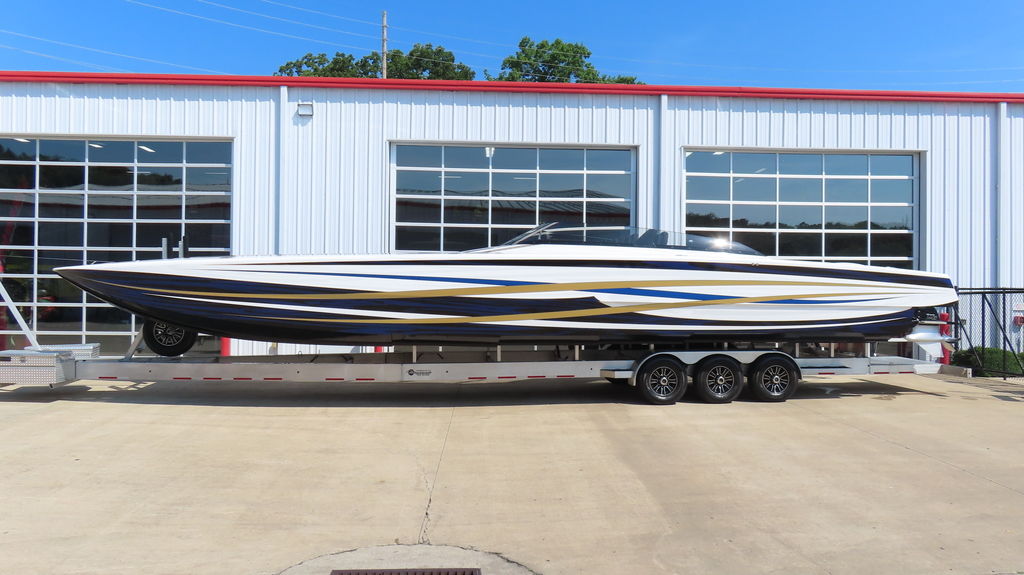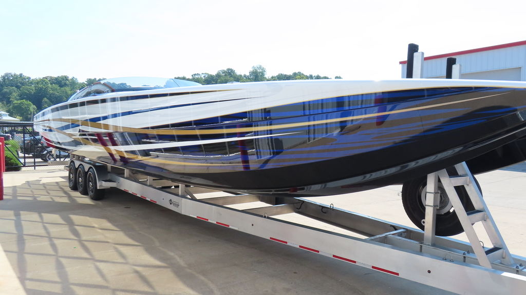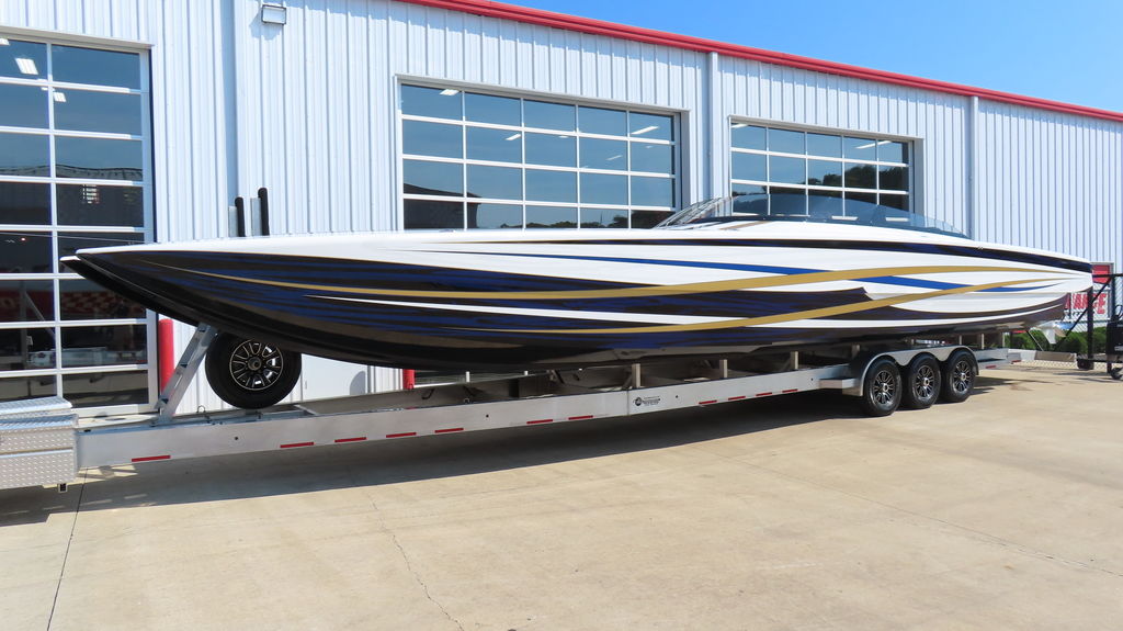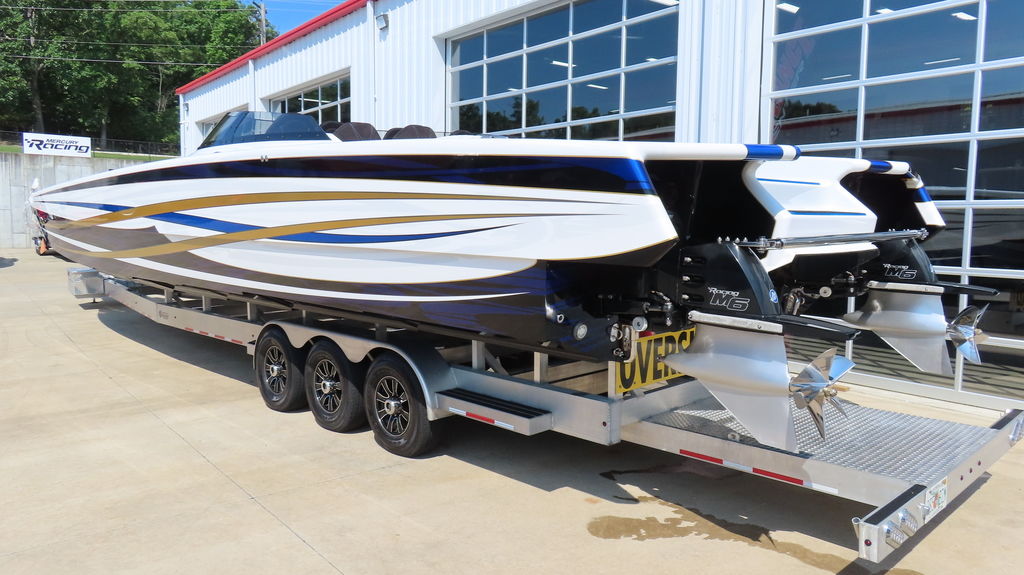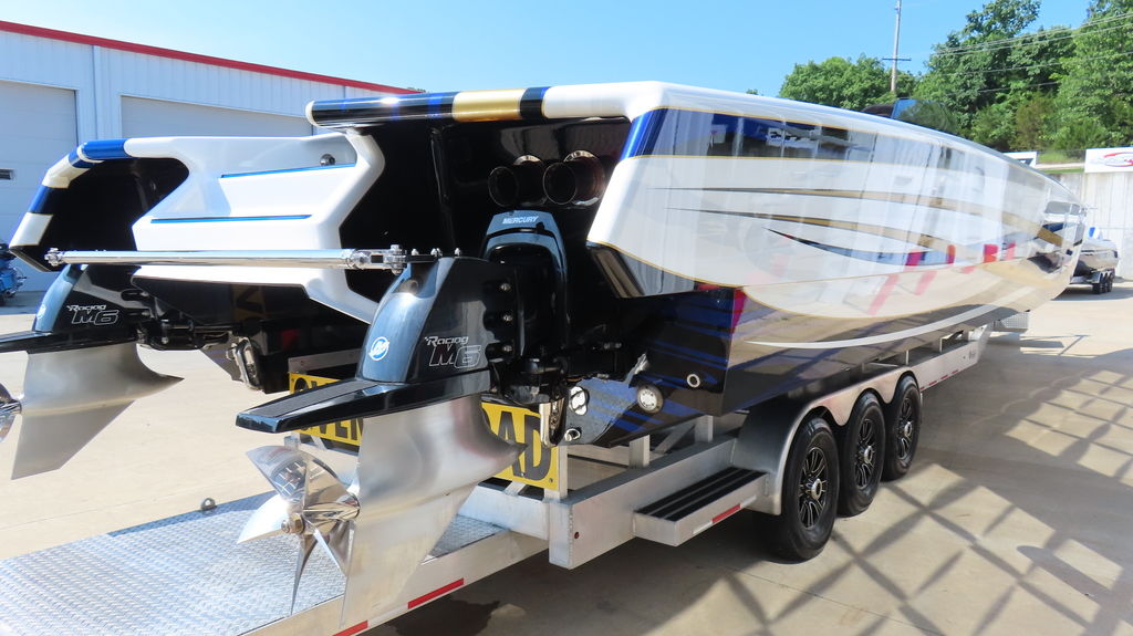 2020 438 Skater Powered by Twin Mercury Racing QC4V 1100s with 100 original hours! Mercury M6 Drives, Full Alcantera Interior, 3 Garmin Chartplotters on the dash, 2 Rear Garmins, Mercury 504 Vessel View, Huge JL Audio Stereo, Accent Lighting through out, under water lights, Power front and rear hatches, Aluminum Manning trailer inlcuded!