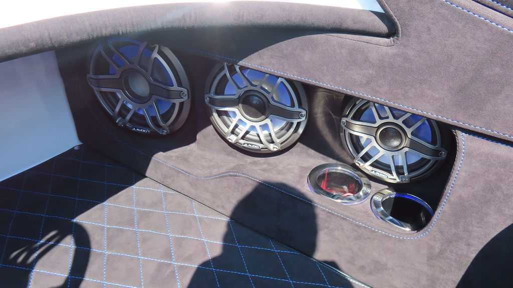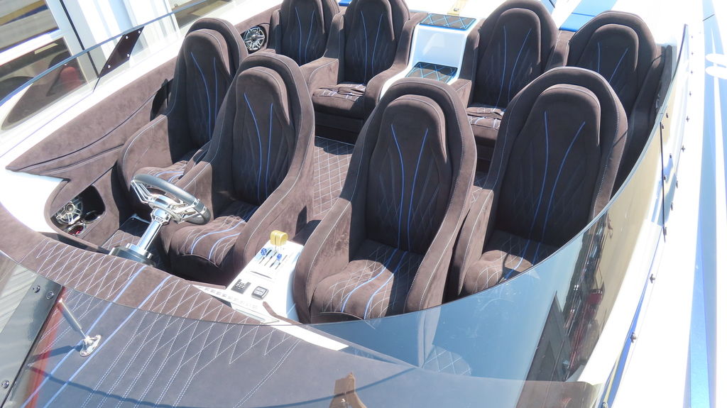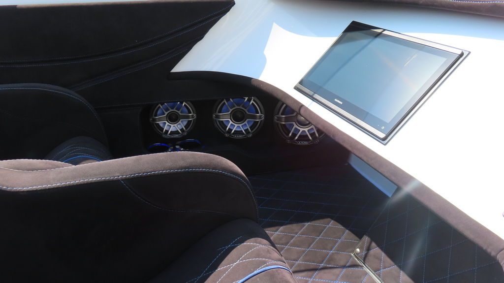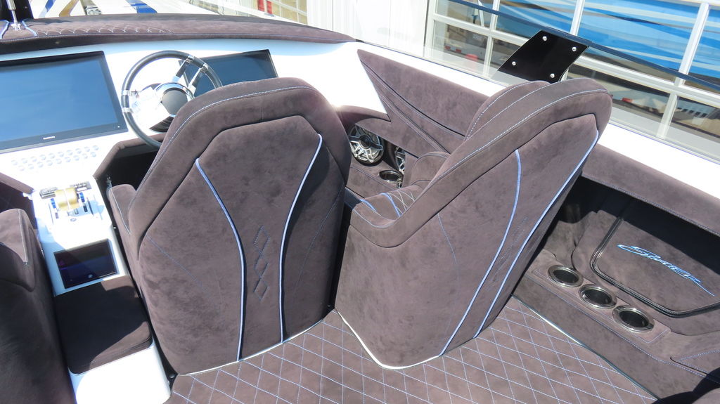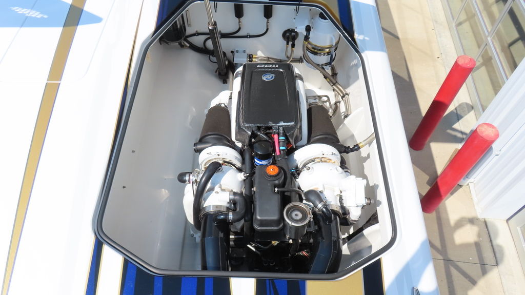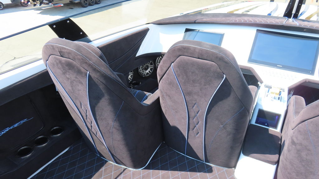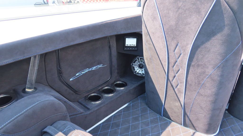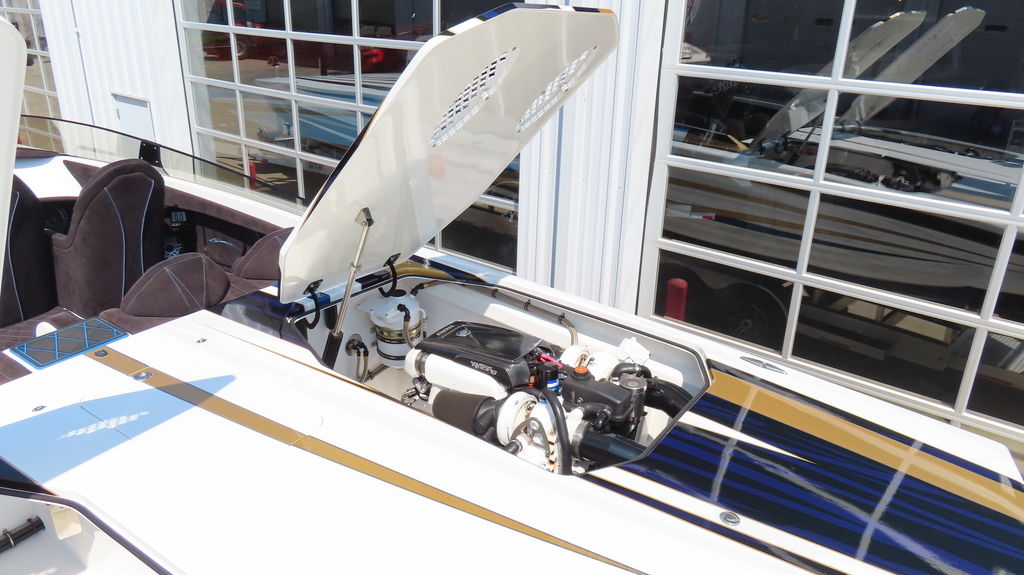2020 438 Skater Powered by Twin Mercury Racing QC4V 1100s with 100 original hours! Mercury M6 Drives, Full Alcantera Interior, 3 Garmin Chartplotters on the dash, 2 Rear Garmins, Mercury 504 Vessel View, Huge JL Audio Stereo, Accent Lighting through out, under water lights, Power front and rear hatches, Aluminum Manning trailer inlcuded!