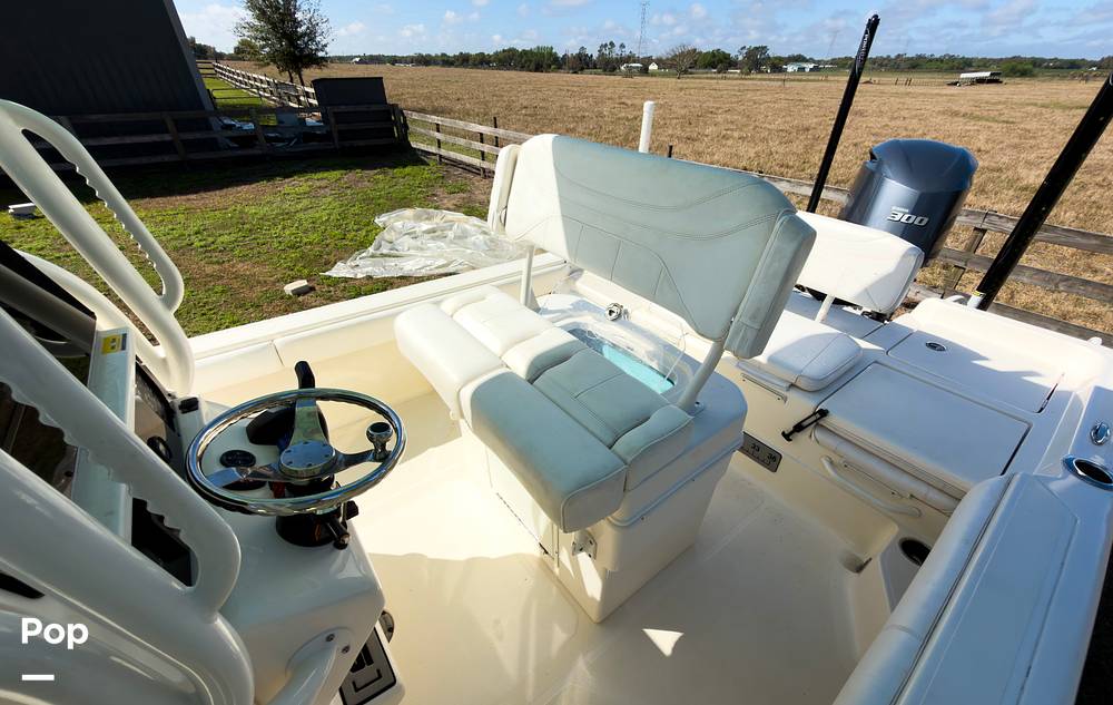 This one is set up right for fishing with a large bow casting deck, a Minn Kota trolling motor, and dual Power-Pole shallow water anchors, which make it easy to hold position when you're working the flats. It also has a large in-floor fish box with a macerator and an aerated livewell for keeping bait healthy.