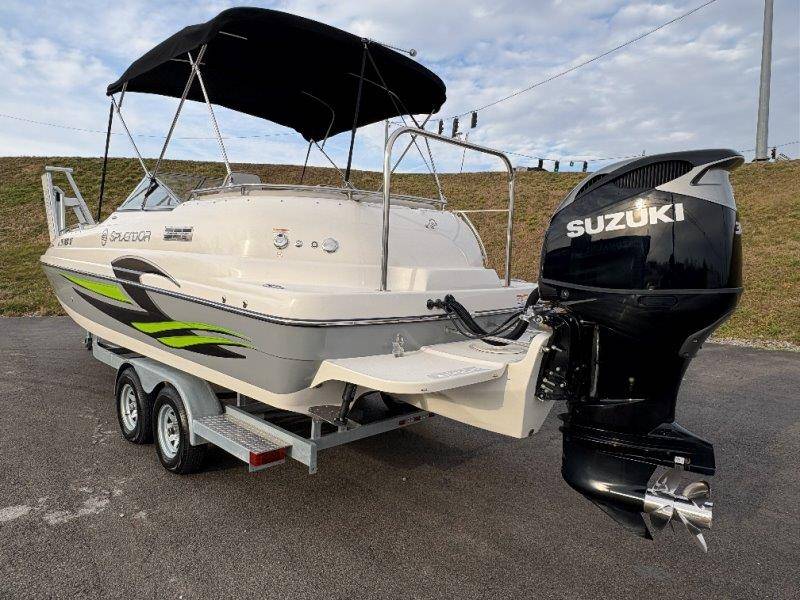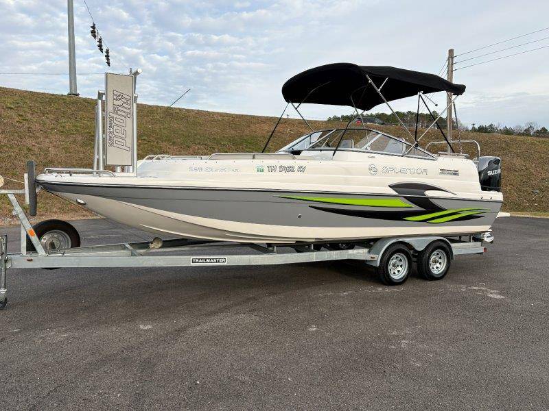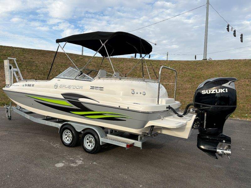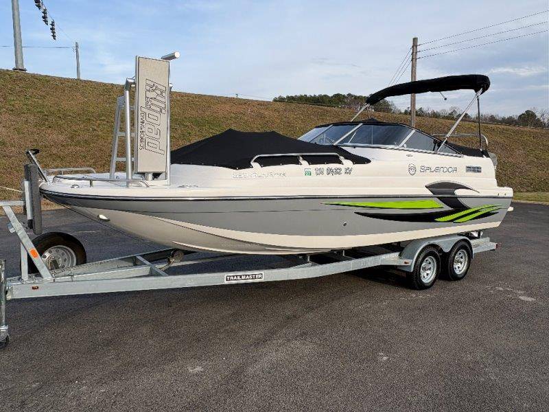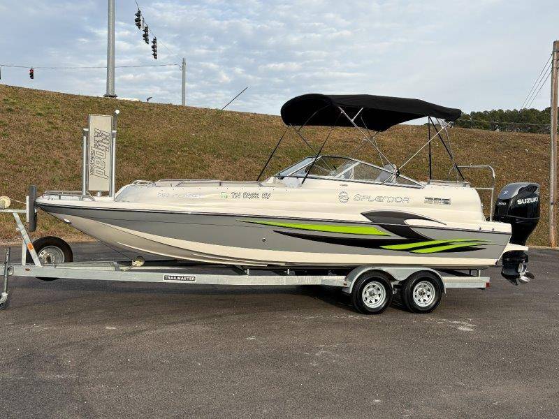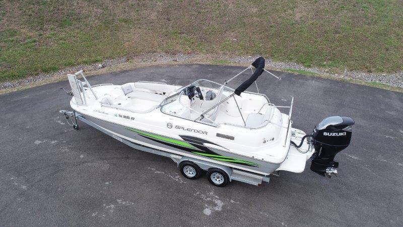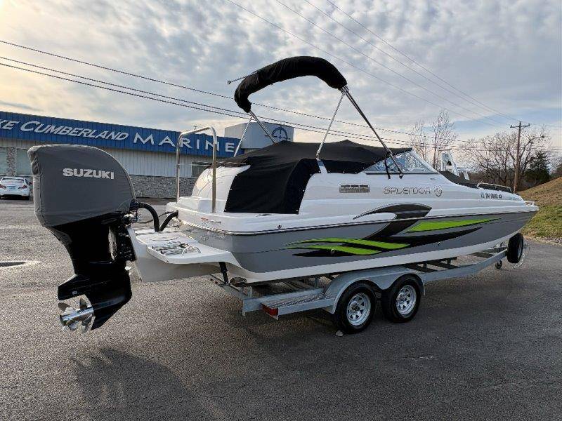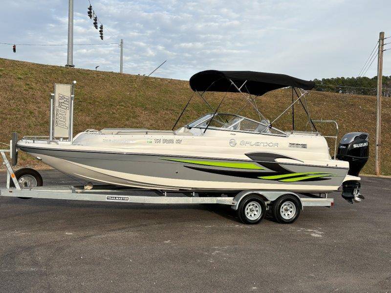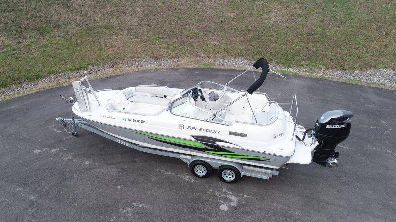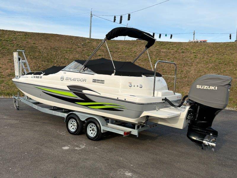 2020 Splendor Sunstar 259 2020 Splender Sunstar 259 Suzuki 300 Hp. Lenco Trim Tab Staiinless Prop Extended Swim Platform with Boarding Ladder Bow Boarding Ladder Bow & Coclpit Covers Full Mooring Canvas Bimini Top with Boot Battery On-Off Switch Enclosed Head with Porta Potty Fresh Water Cockpit Sink Tilt Steering Polk Audio Bluetooth Head Unit 12 Passenger Capacity Docking Lights 2020 Dual Axle Trailer: Break away tongue, spare & surge brakes