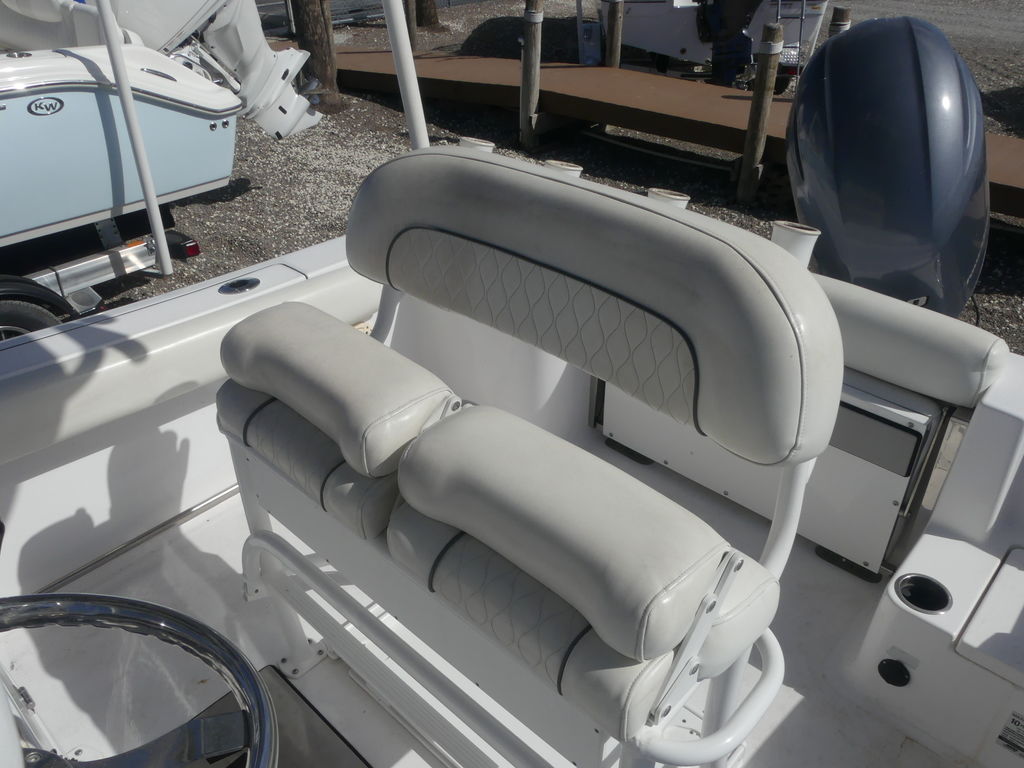 The Open 212 features a larger capacity livewell and more open cockpit space for the more serious angler. Overall, more room behind the leaning post and a walk-through transom makes this 21 footer a great fishing platform. Standard amenities include a Garmin 9” touchscreen GPS, B60 thru-hull transducer, wrap-around bow seating, bow & cockpit bolsters and much more.