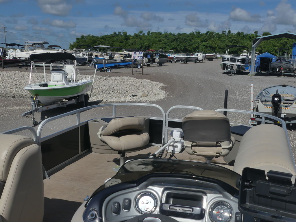 - Console w/cooler storage below, NEW helm chair, stereo w/Bluetooth® & USB input & forward couch w/Stow More™ seat-back compartment & underseat compartment