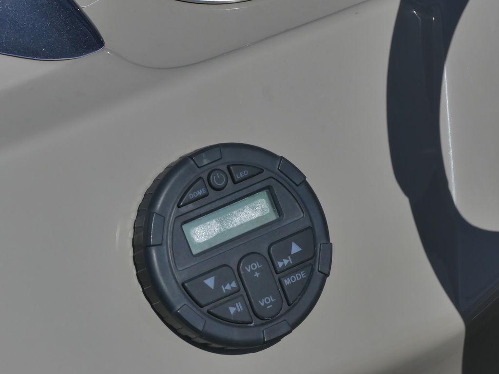 - Console w/cooler storage below, NEW helm chair, stereo w/Bluetooth® & USB input & forward couch w/Stow More™ seat-back compartment & underseat compartment
