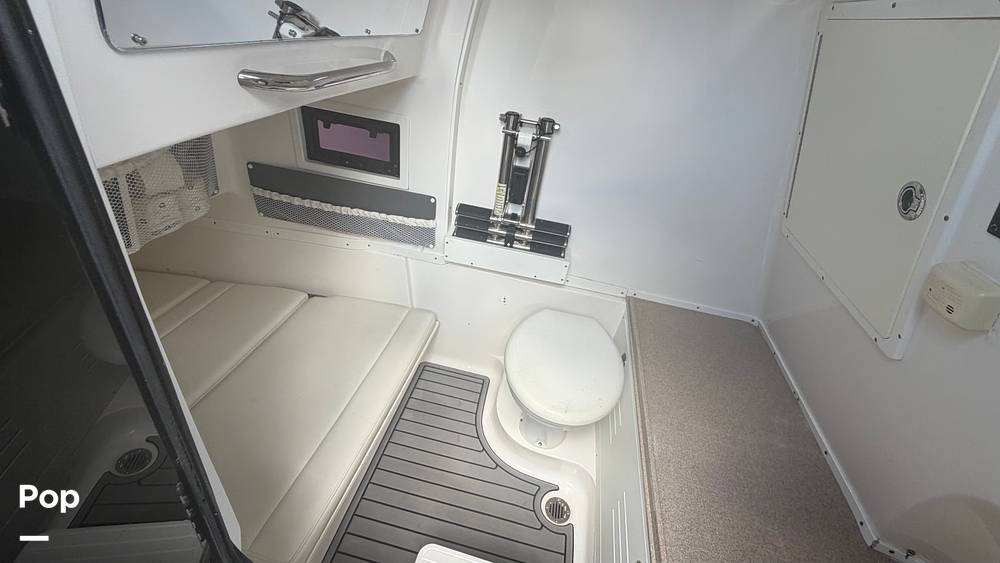 The walk-in console houses a porcelain head and a small berth for a quick nap or even stashing dry gear.