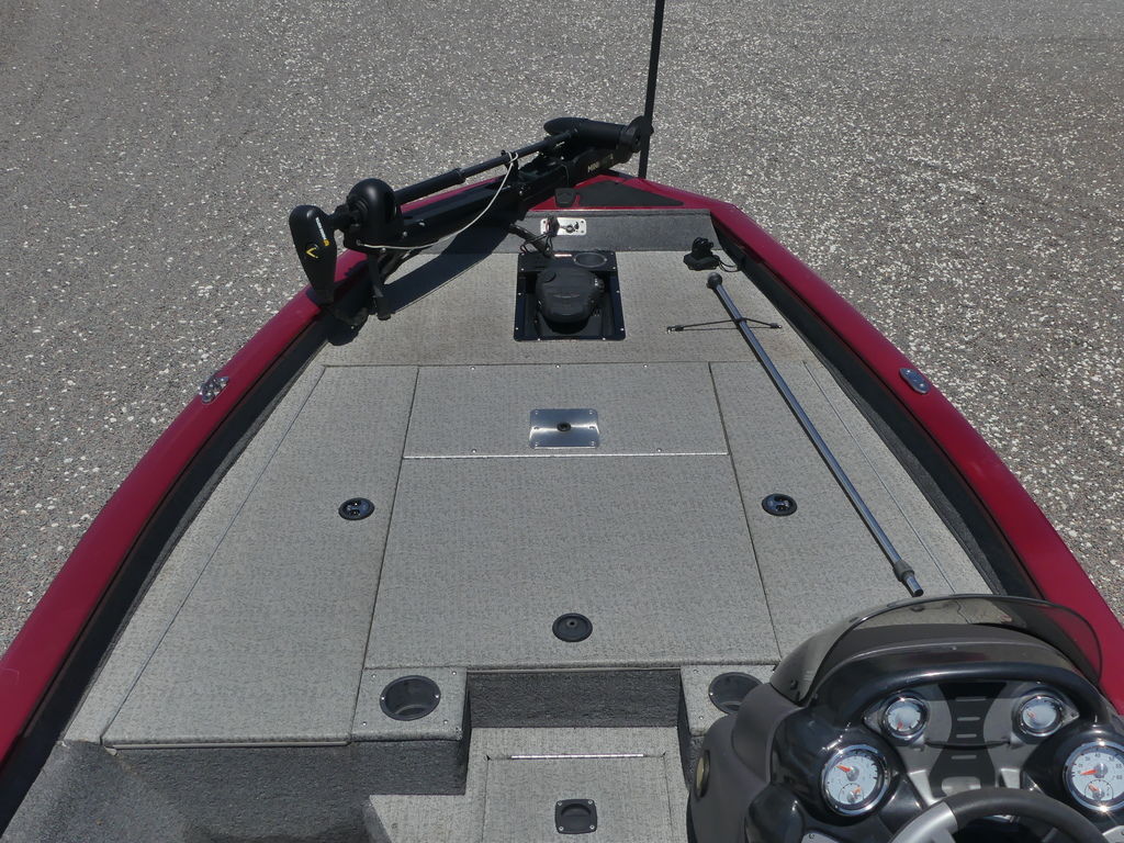 Interior- Tournament-style 32-sq.-ft. (2.97-sq.-m) elevated bow deck w/oversized dual rod boxes & center tackle organizer