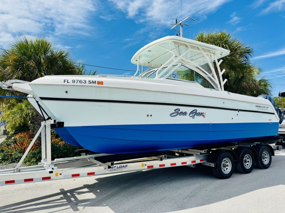 Powered by Twin Yamaha 150 HP four-stroke outboards with 379 hours, this boat offers reliable performance, efficient cruising, and the peace of mind Yamaha is known for. With an approximate beam of 8’6” and World Cat’s proven catamaran hull design, you’ll experience reduced bow rise, improved fuel efficiency, and a noticeably softer ride compared to traditional monohulls. Every detail — from stainless-steel hardware to the self-bailing cockpit — reflects offshore durability and long-term quality.