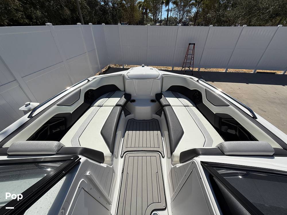 Fitted with Fusion stereo with 6 speakers, Connect 7" touchscreen, cruise assist, no wake mode, depth finder, and water temperature gauge.