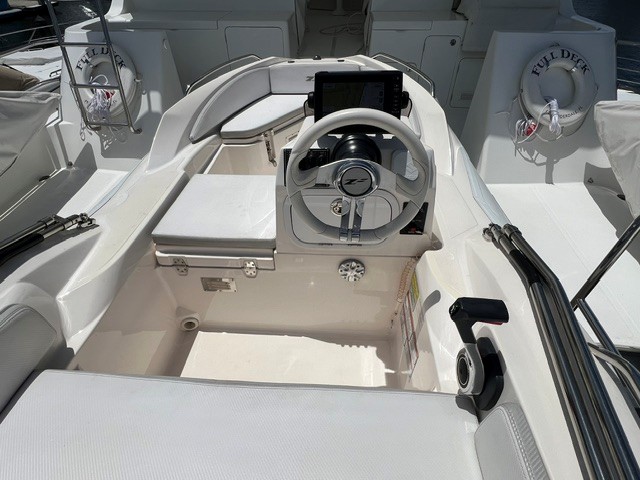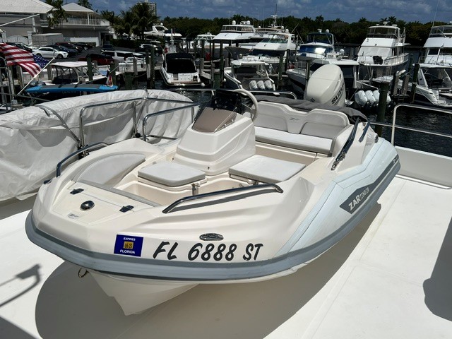 This pre-owned ZAR ZF-1 with a Suzuki 40 is a perfect example of a very well cared for boat. The boat has 159 hours on it. installed options such as a 9" Garmin, fusion stereo, fresh water shower system, underwater lights, deck lights, bimini top, and swim ladder on the swim platform, and mooring cover, make it the perfect ready to go package for someone looking for a ZAR ZF-1. This is an excellent deal.