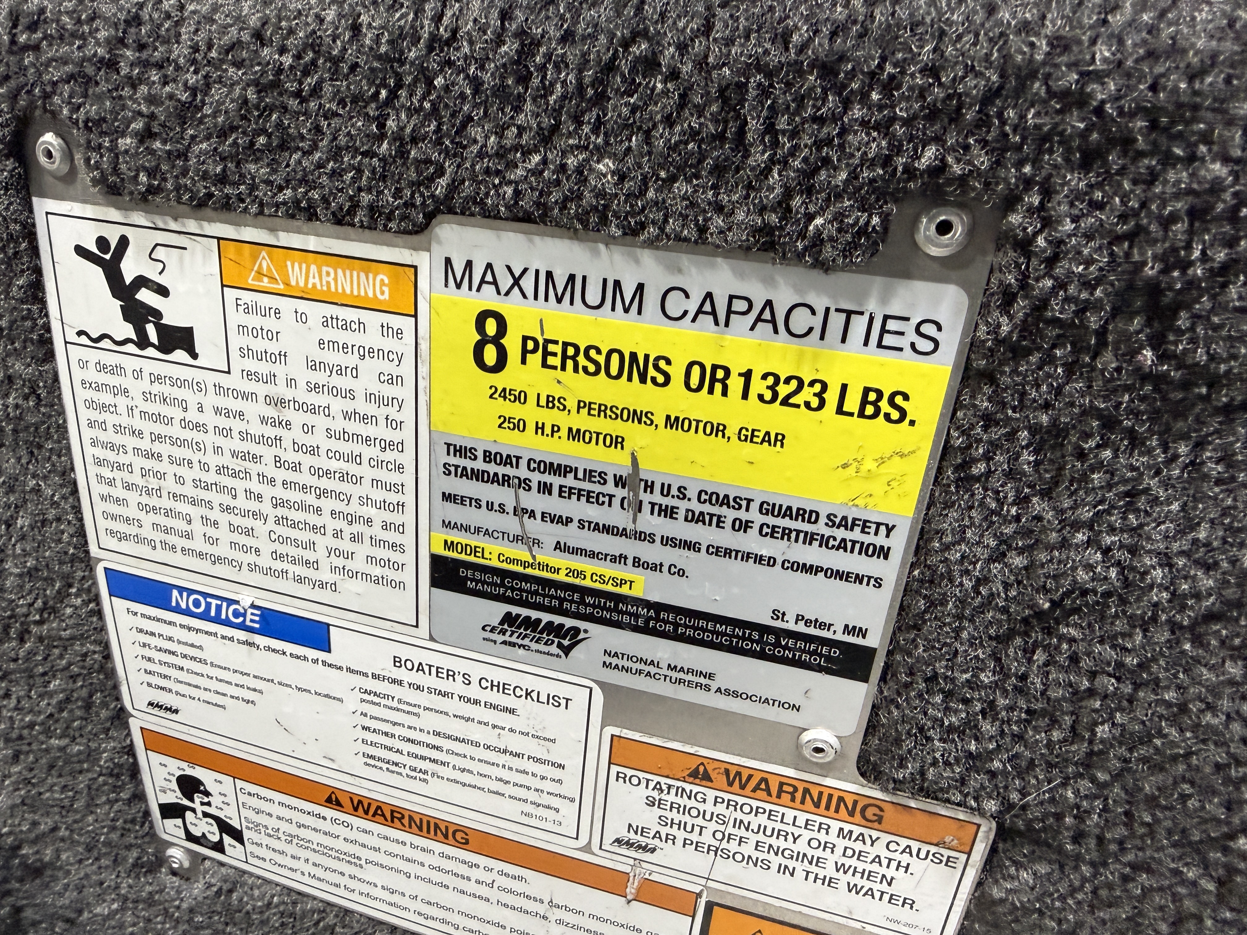 The Alumacraft Competitor 205 Sport is a 20'8" aluminum fishing boat built for serious freshwater anglers who demand stability, range, and fishability. With Alumacraft’s legendary 2XB performance hull, massive fuel capacity, and dual livewells, this rig is designed to handle big water and long days on the bite. Rated for up to 8 people.