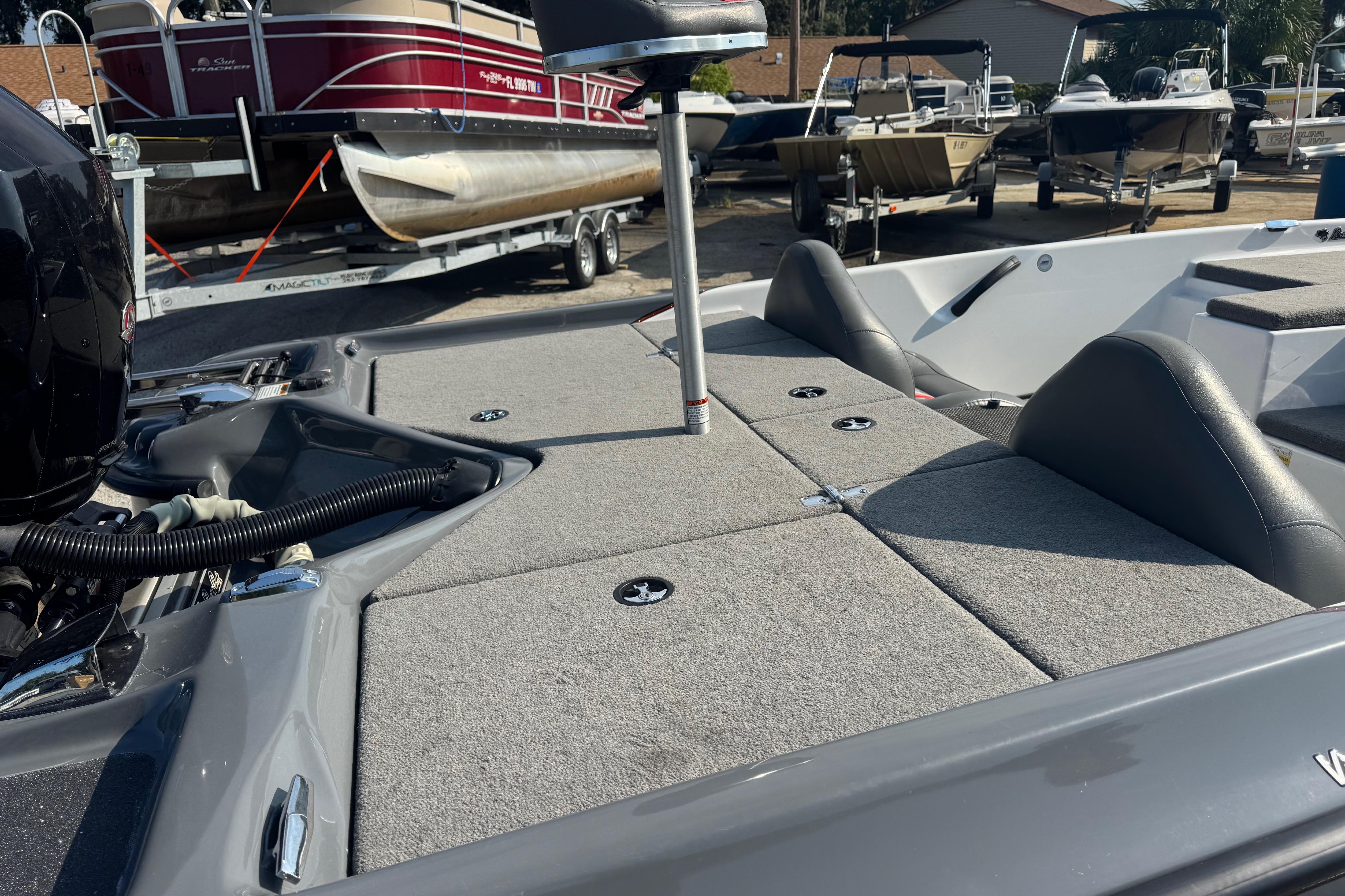 We built the Margay with a price tag and construction technique no one other competitor can touch. The innovative design features a huge center rod locker. Ten rods can rest above a tackle storage area, and outwards are two smaller storages for your choice of other items. The rear deck is large. It offers a storage for your partner, as well as a tool tray for you to stow gear. Couple this with the large under-seat storages (2), and you will not be short for space. An all-fiberglass hull, and construction techniques to minimize shock. It gives a soft ride in a big bodied boat. The hull has some neat tweaks to allow engines from 70 hp to the top end 150 four strokes. Just take your pick and price them accordingly to fit your budget. The dash will hold all the way up to the massive HDS 9 or 998 units, and has the options of switches or touch pad. This is standard on the Vision Tour group. This model comes with dual cable steering, or you can bump up to hydraulic. It comes standard with a 3” frame and pivot tongue with the option to move on up to a tandem if you prefer. The Margay will handle any task with ease and give you the safety, ride and function at a price others work hard to beat.