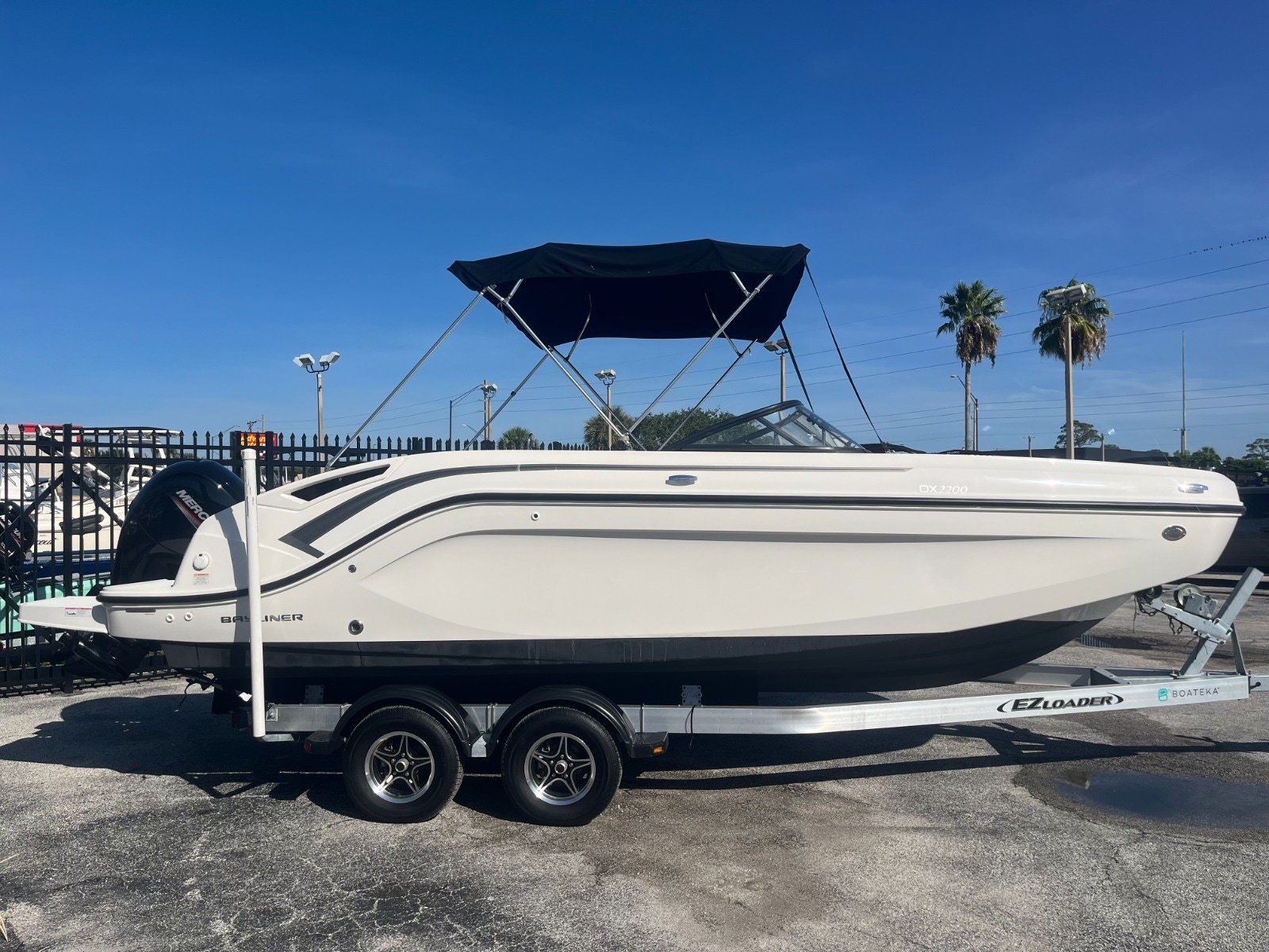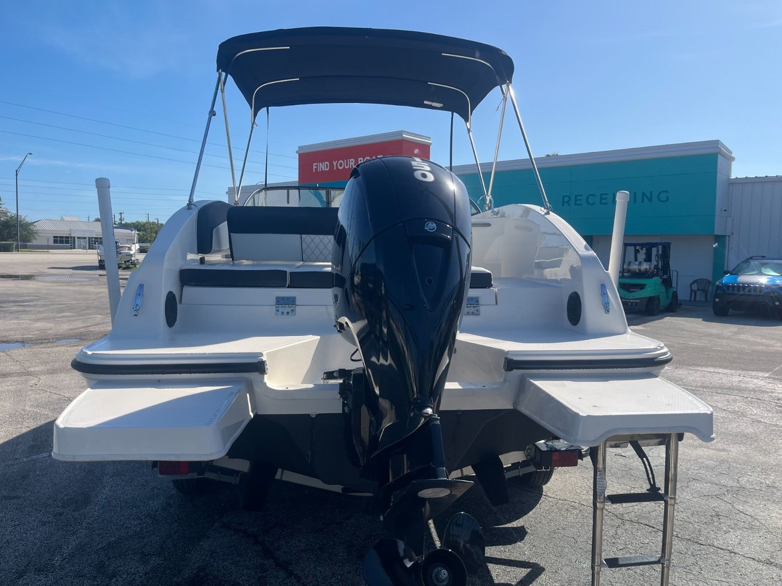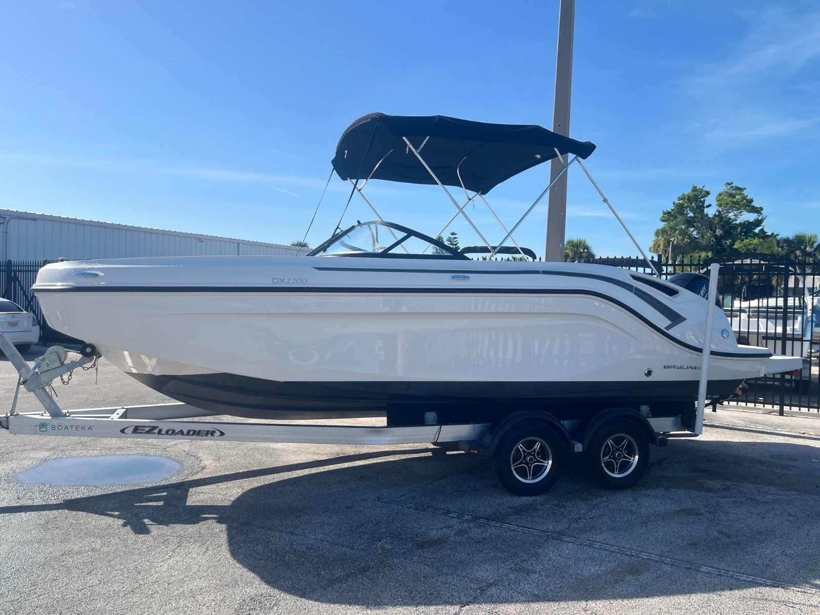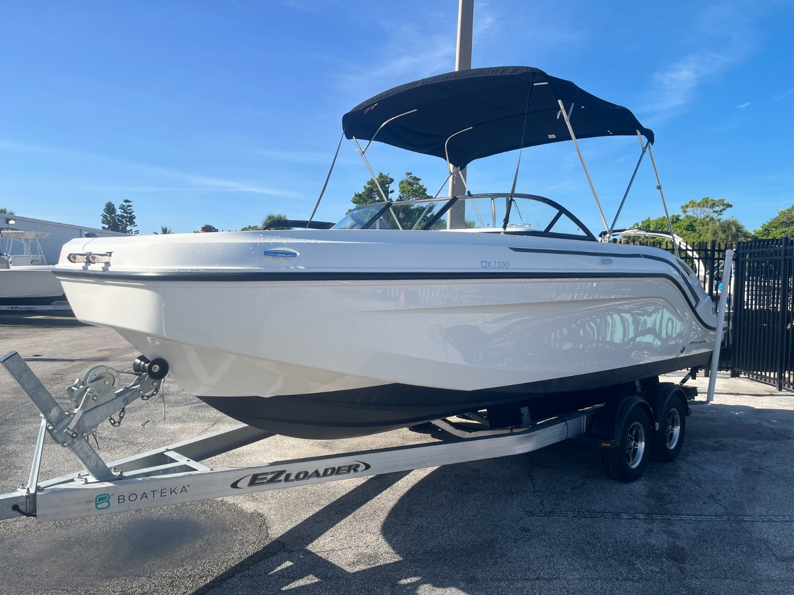 This family-friendly outboard model combines all the most popular aspects of the DX Series. The sleek exterior is complete with hull sculpting and stylish shear lines, while the interior is loaded with all the comforts of home. The plush upholstery features quilting with black welt, plus transitional cockpit and transom seating offer total lounging comfort while facing forward or aft. When underway, the wider V-hull offers stability, and a high freeboard keeps everyone safe and dry. Low Hours!!