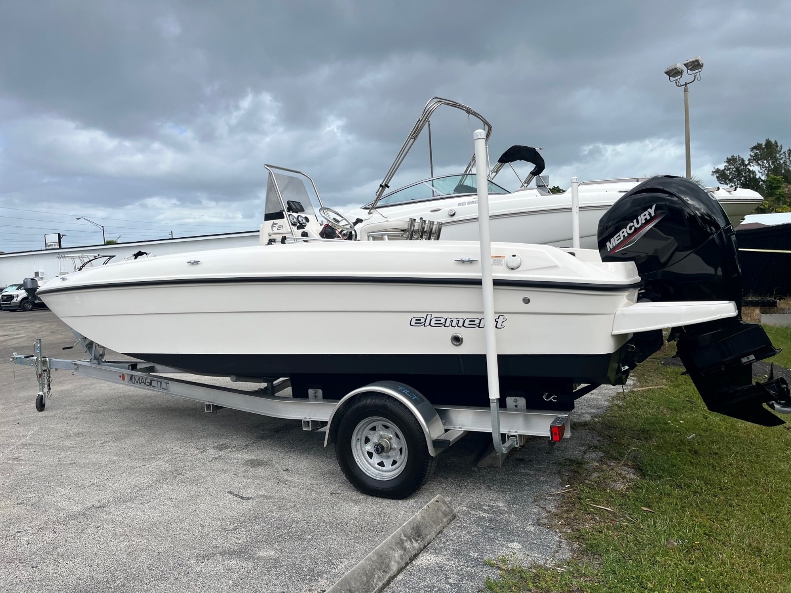 The 2021 Bayliner Element E21 is a 21-foot deck boat built for families and groups who want space, stability, and fun on the water. As the largest model in Bayliner’s Element lineup, it comfortably seats up to 10 passengers and offers a roomy layout designed for cruising, watersports, or casual fishing. Its signature M-Hull design delivers reliable stability and smooth handling, making it easy to operate for both new and experienced boaters. Typically paired with a Mercury outboard engine, the E21 provides dependable performance with plenty of power for towing and exploring. Practical features include generous storage compartments, a self-bailing cockpit, and an extended swim platform that makes water access simple and safe. With multiple seating zones for relaxing and socializing, the Bayliner Element E21 is a versatile deck boat that combines value, comfort, and performance for unforgettable days on the water.