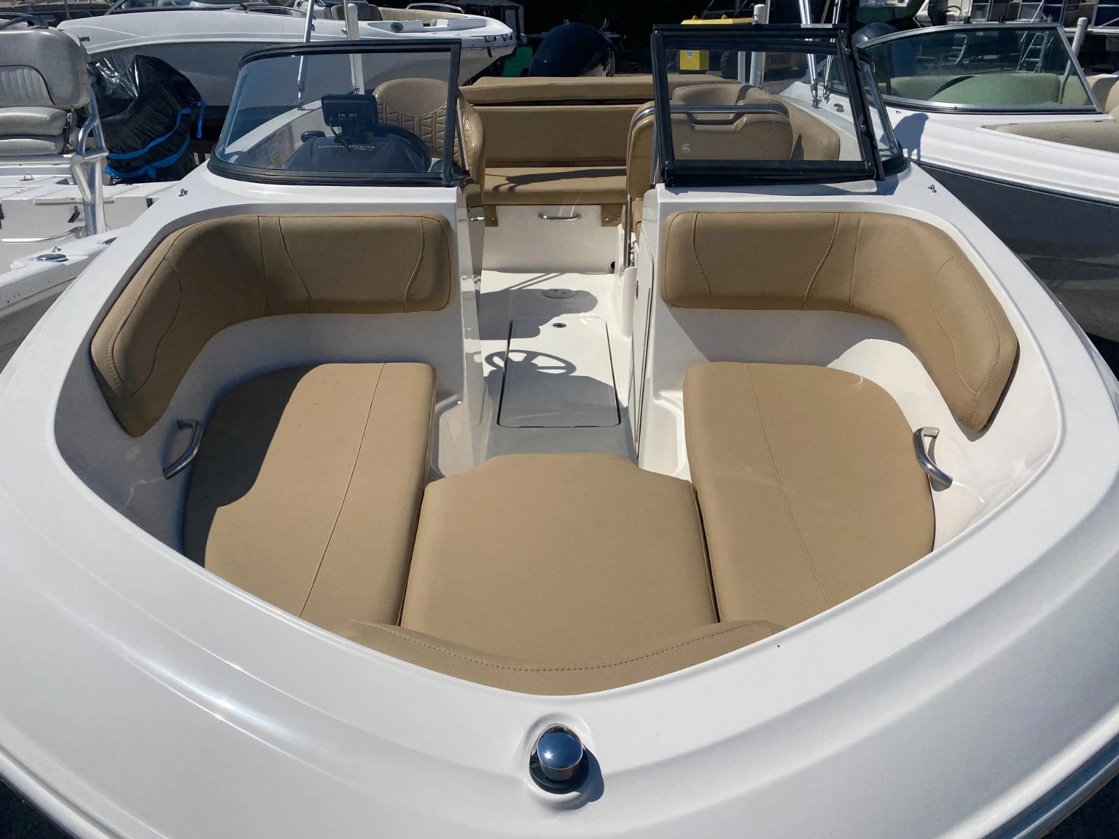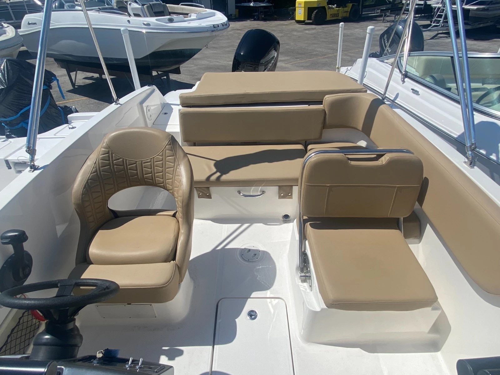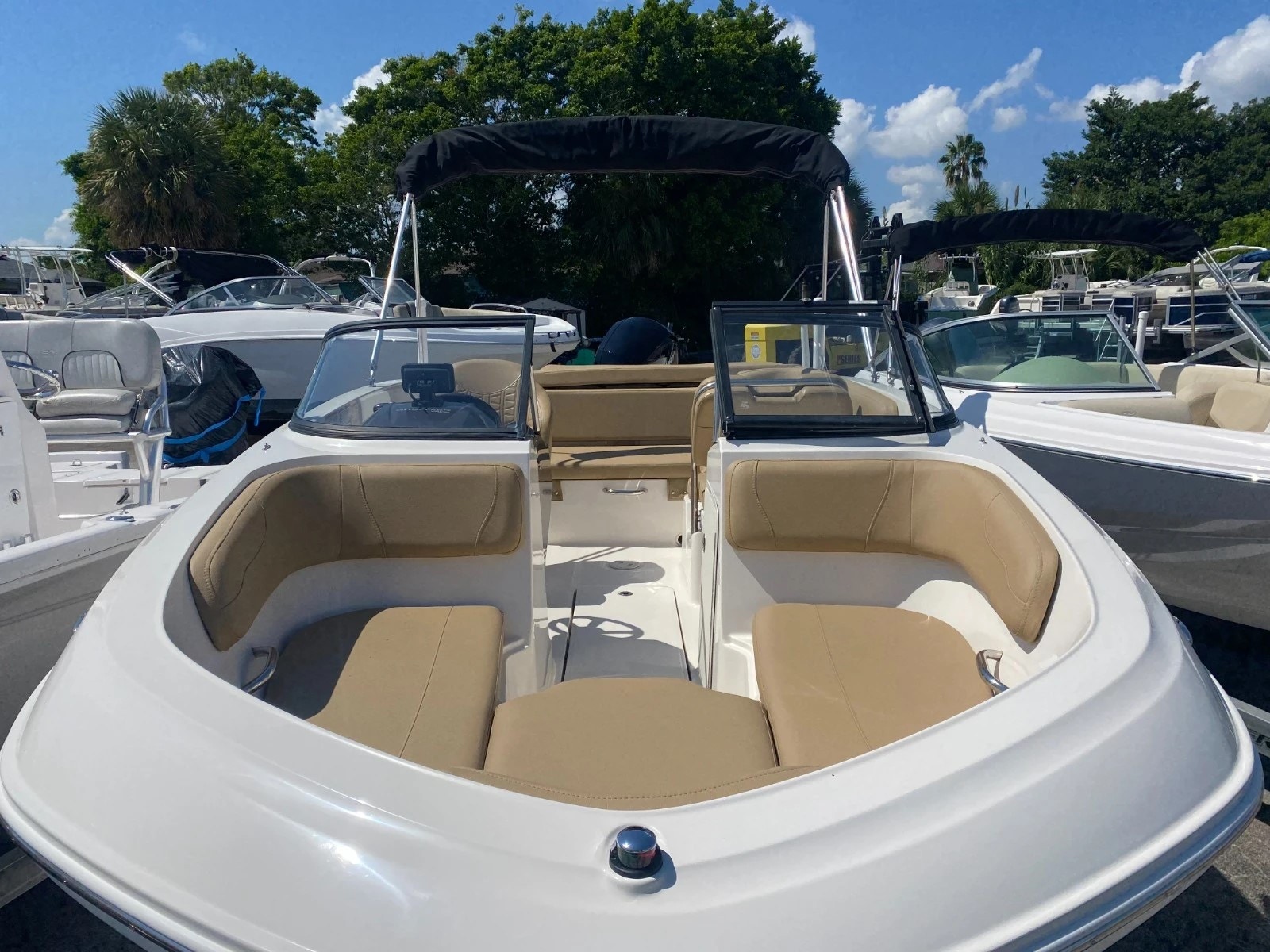 Check out this 2021 Bayliner VR5 at Boateka of Greater Tampa. Picture this: you’re out on the water, wind in your hair, and the VR5 is your trusty sidekick. It’s got a fresh 2023 Mercury 150 Outboard, making waves like a pro. And that BeamForward design? Well, it’s like Bayliner said, “Why stop at the bow? Let’s stretch that beam all the way forward!” So, you’ve got space to stretch out, soak up the sun, and maybe even catch a glimpse of a friendly dolphin or two. At 20 feet 4 inches long, this fiberglass beauty is ready for family fun, tubing adventures, and sandbar chill sessions. Some recent made up testimonials. Captain Nemo: “I’d trade my submarine for this any day!” A Mermaid: “Finally, a boat that complements my scales.” Poseidon: “I’d give up my trident for a spin in the VR5.” Remember, life is short—buy the boat!