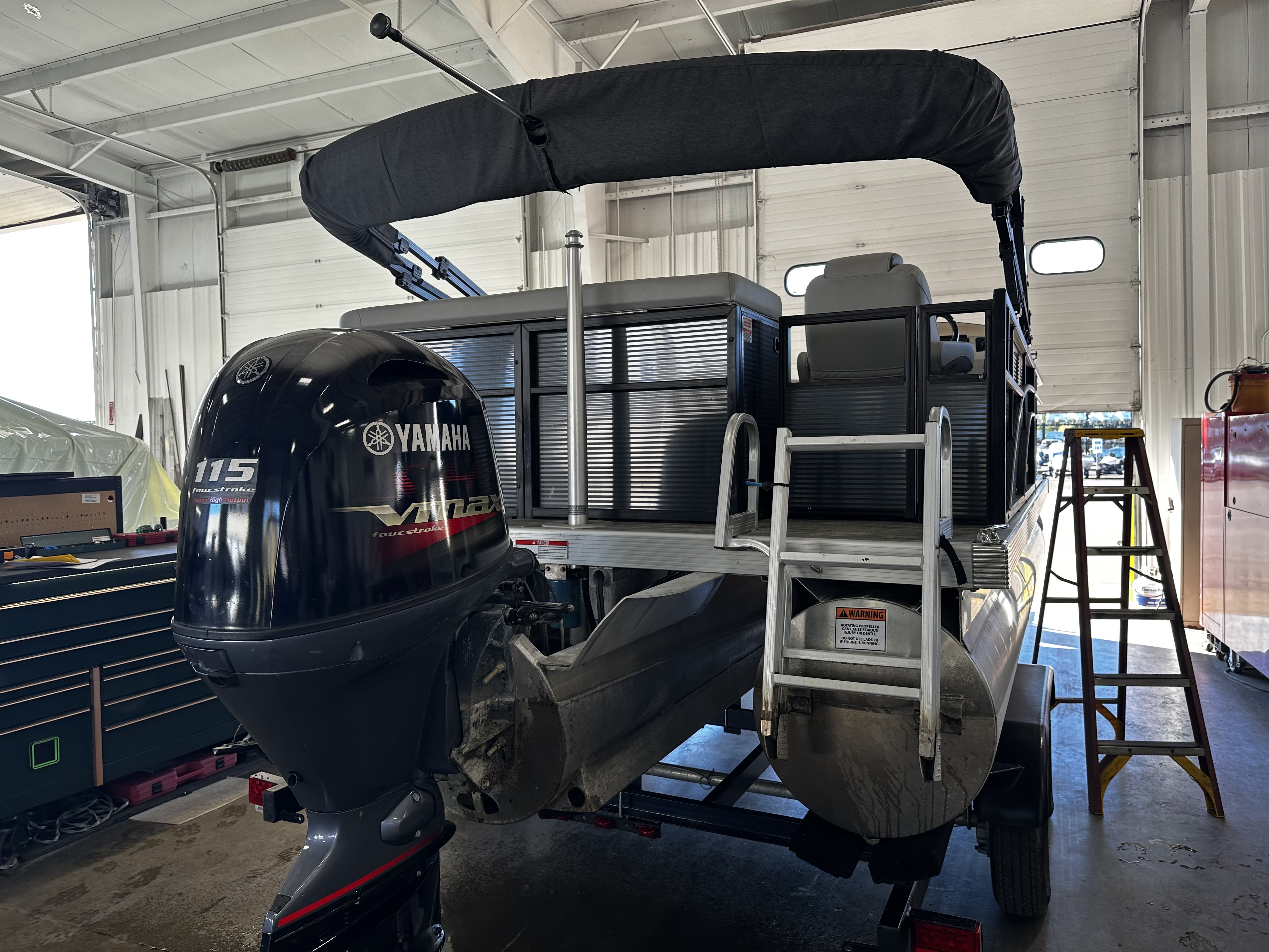 This boat is powered by a Yamaha 115hp and includes the SPS tri toon performance package