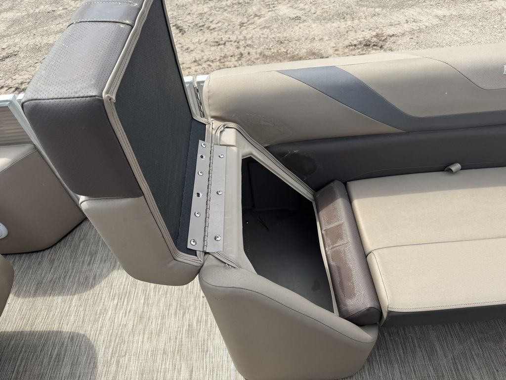 Outboard. This quad lounge layout pontoon features 4 lounge style couches and