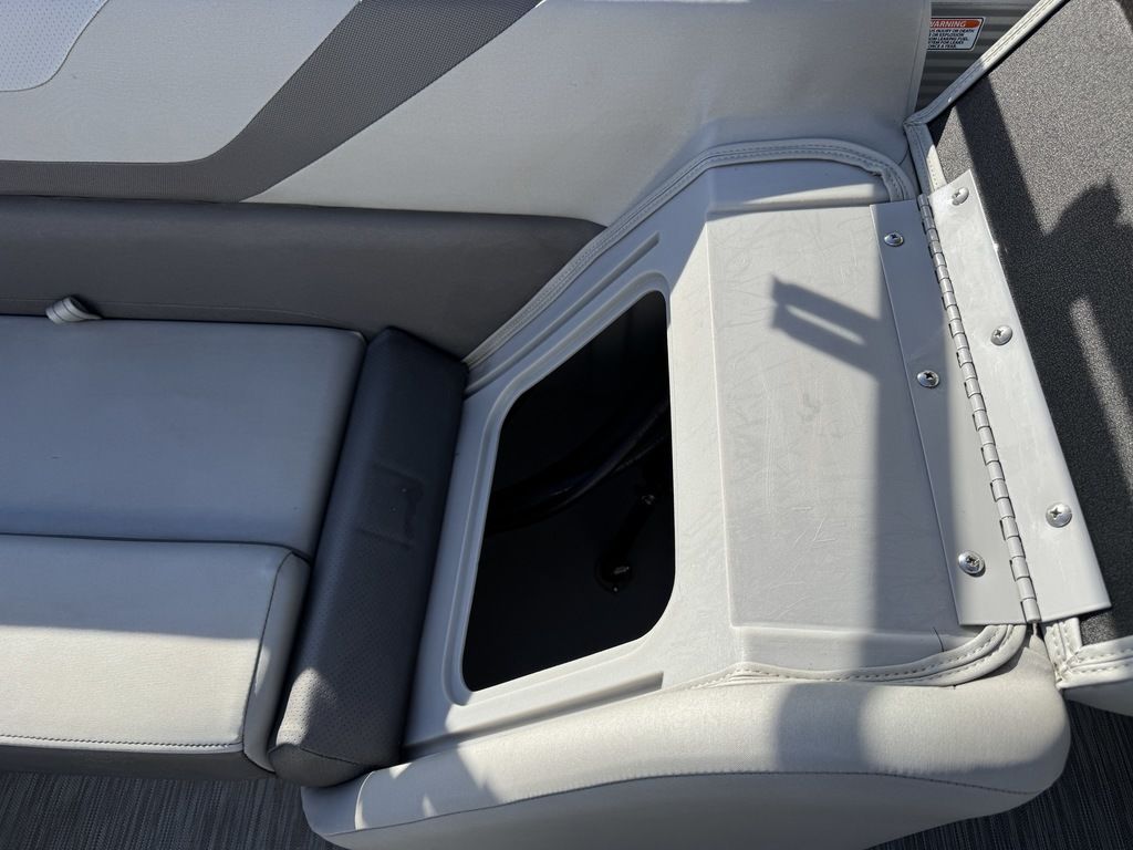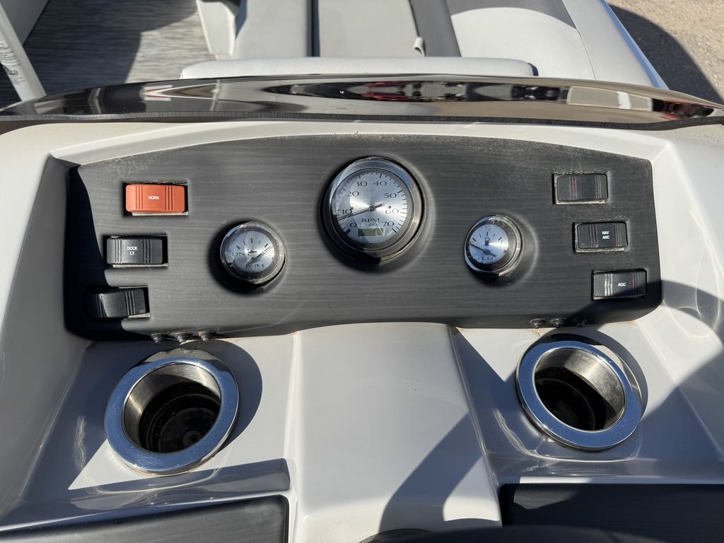 well as fold up arm rests. The helm features a Tachometer, Fuel and Trim gauge