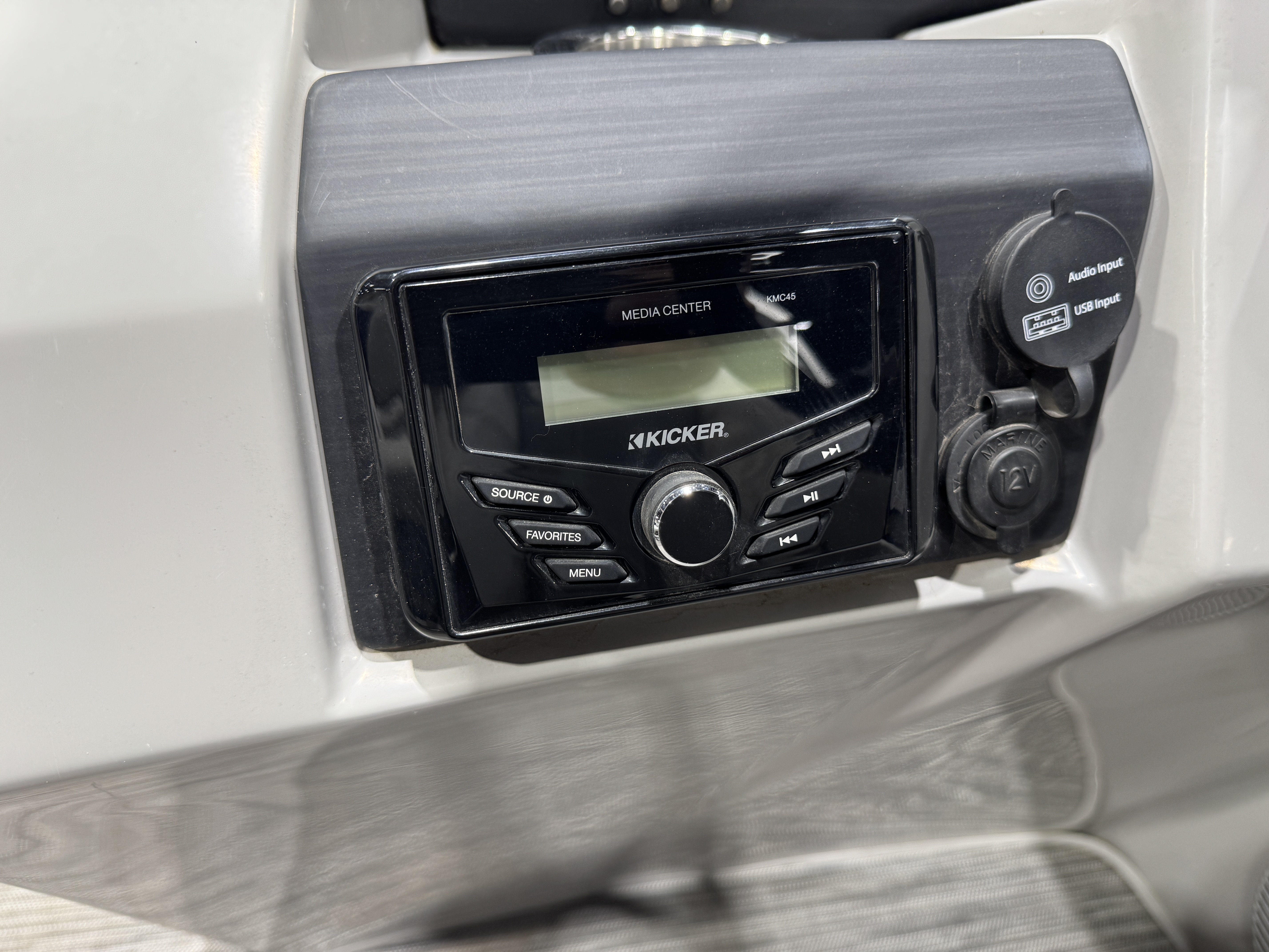 Fuel, Volt and Trim gauge. There is a Kicker KMC45 Bluetooth audio stereo system
