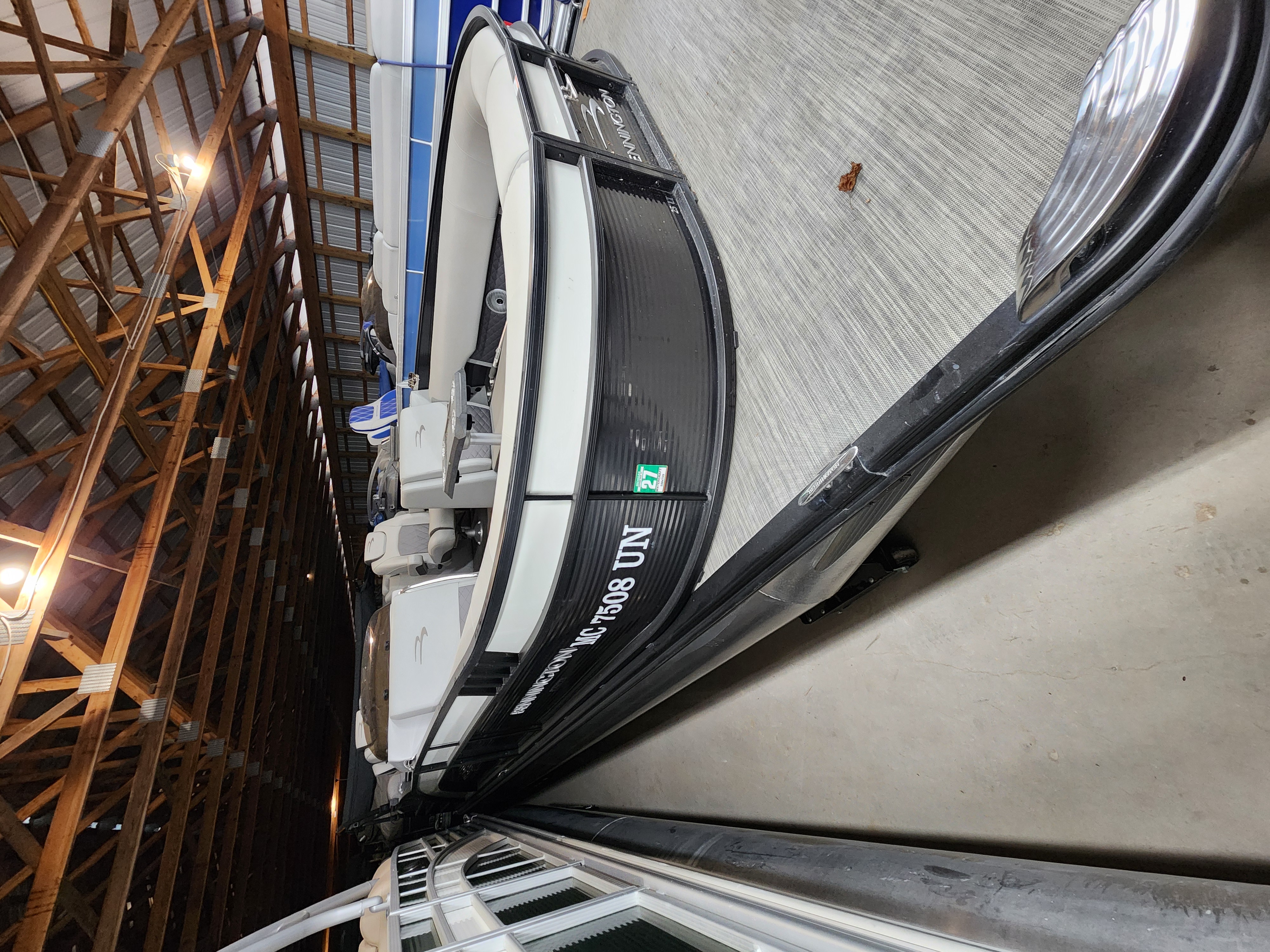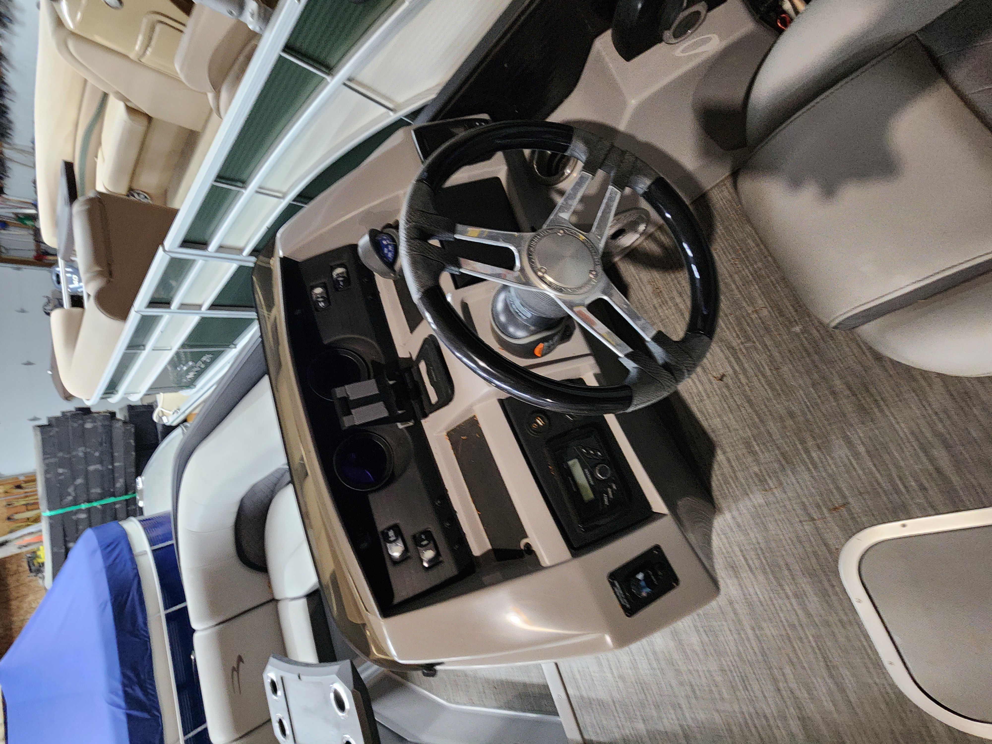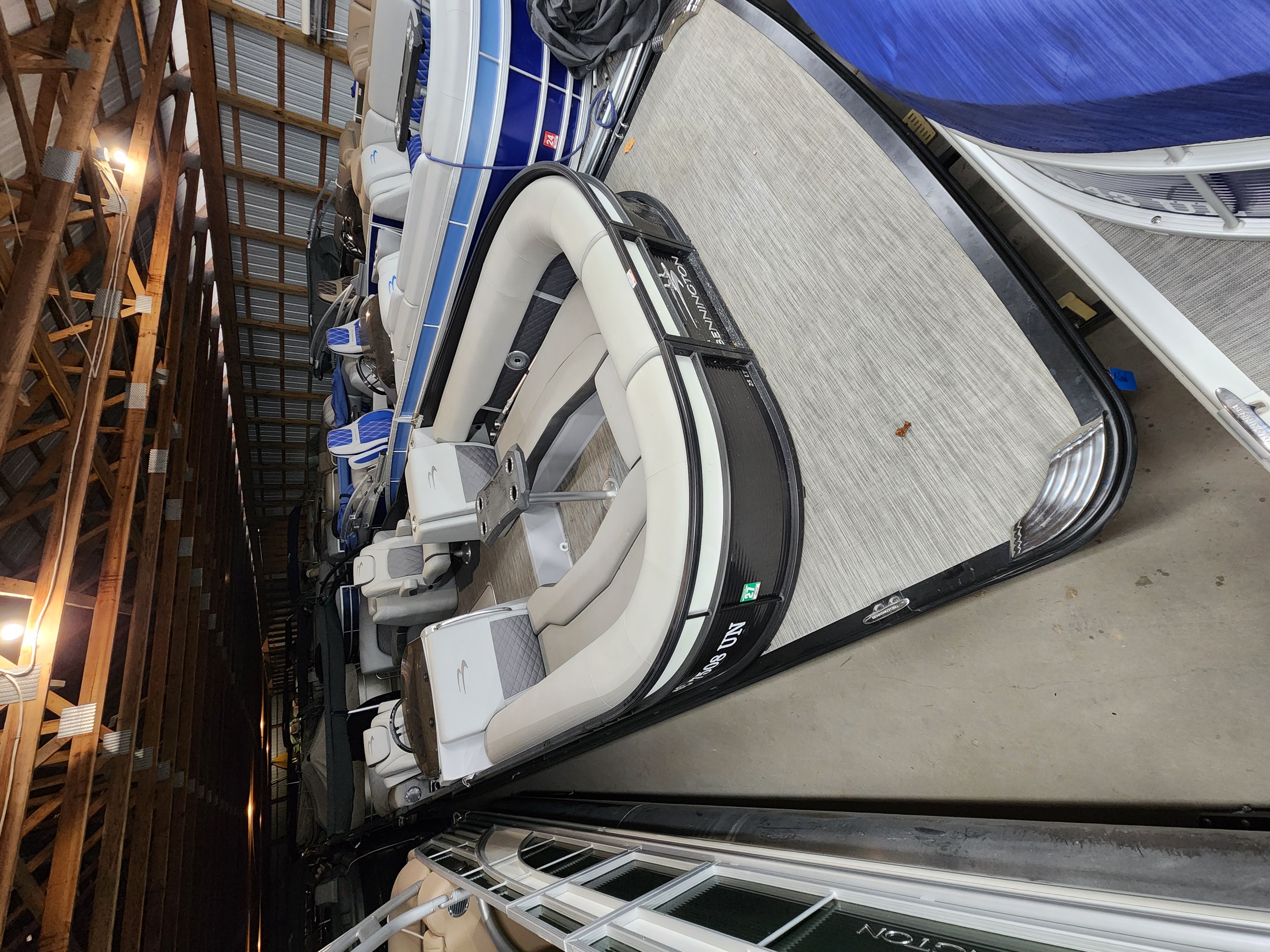 232 hours. Hard to find tritoon in a bowrider configuration. No trailer