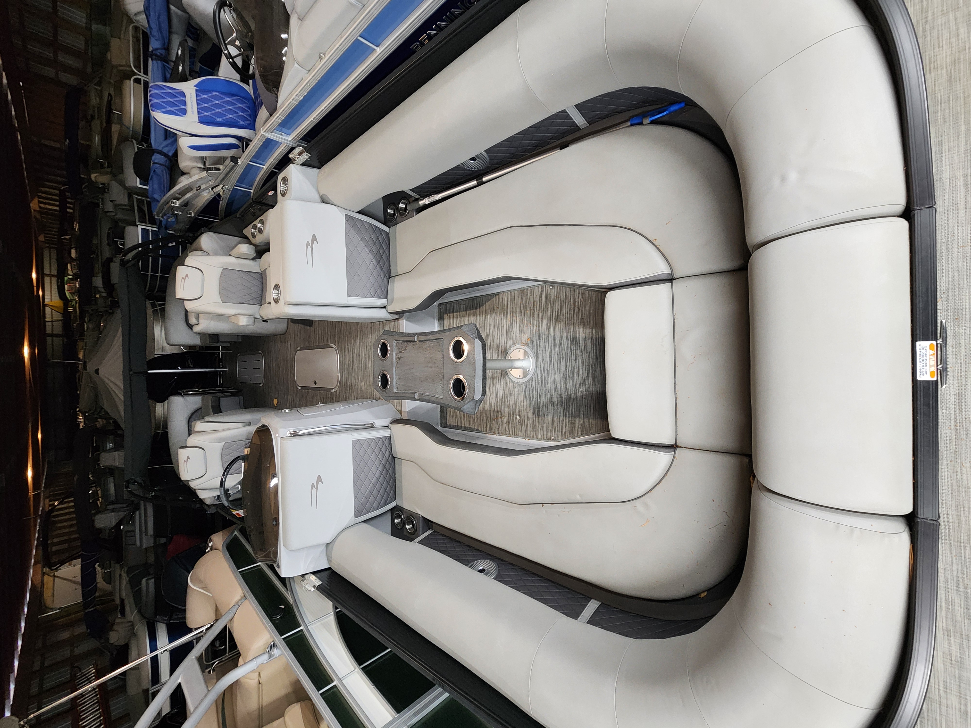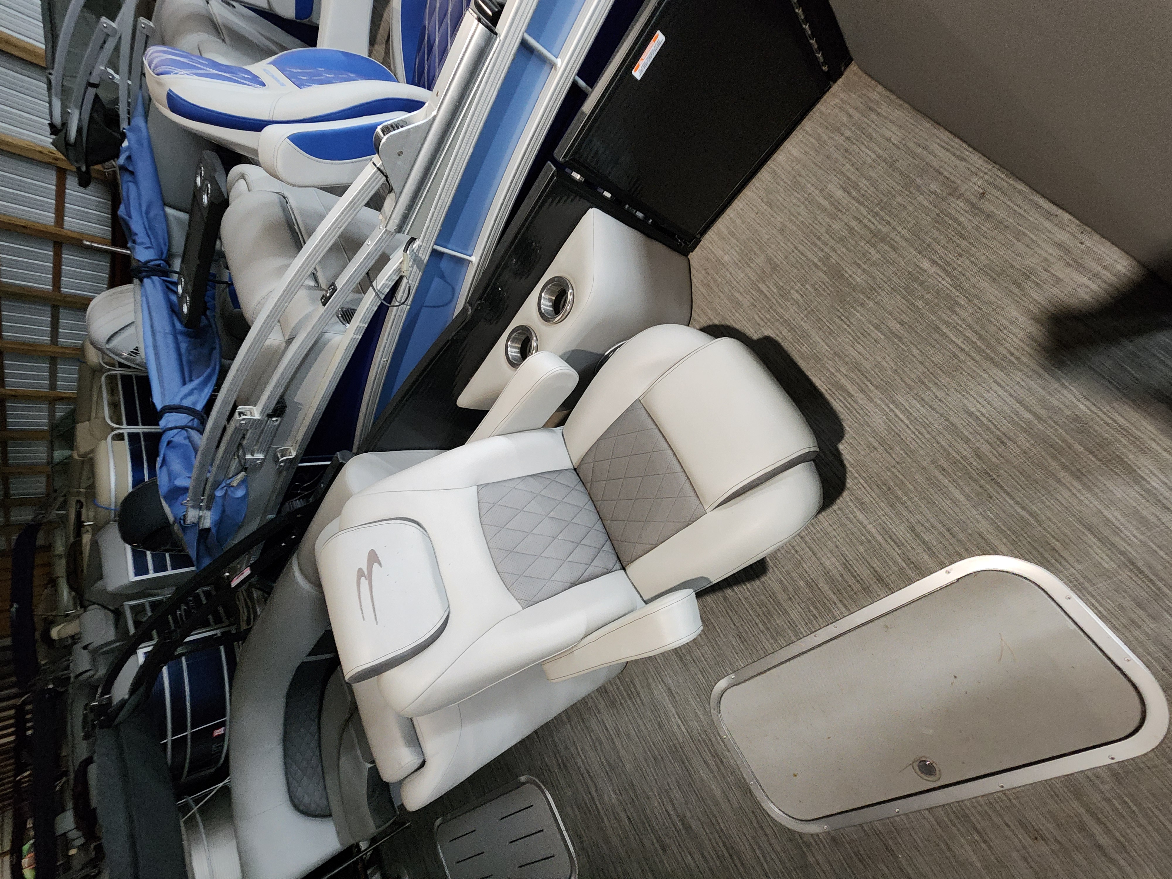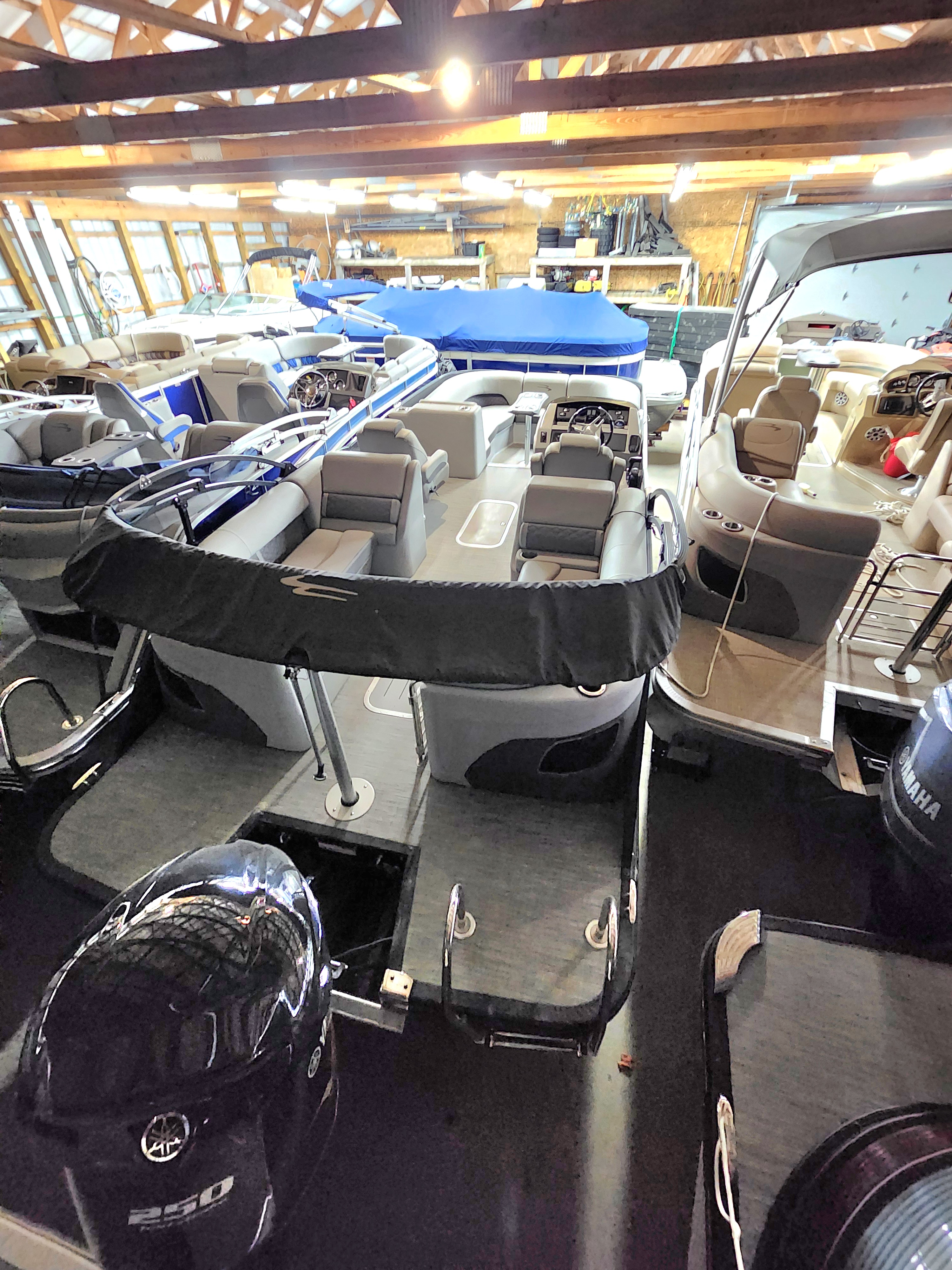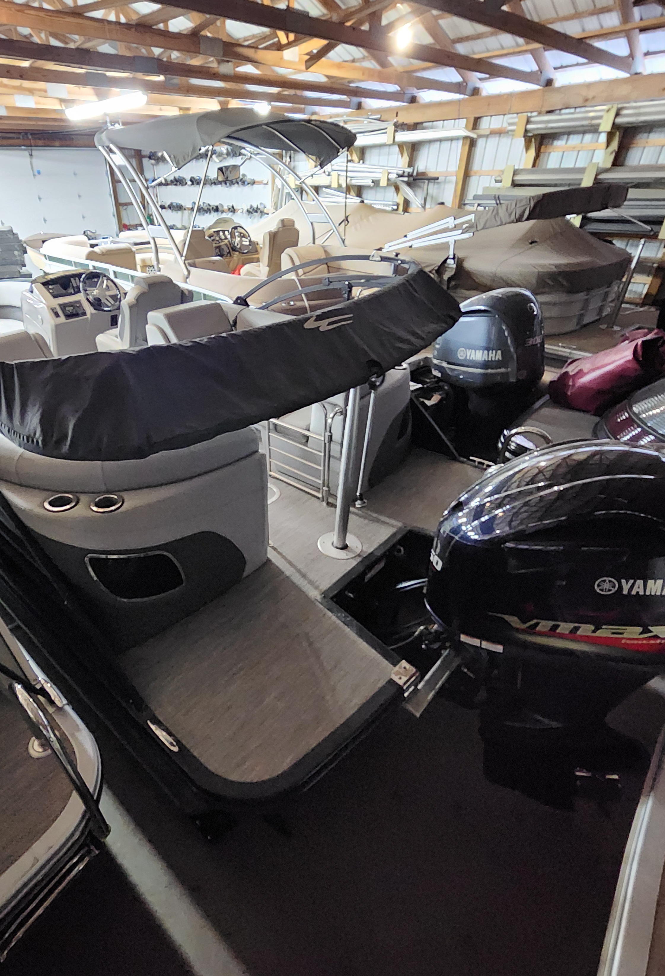 232 hours. Hard to find tritoon in a bowrider configuration. No trailer