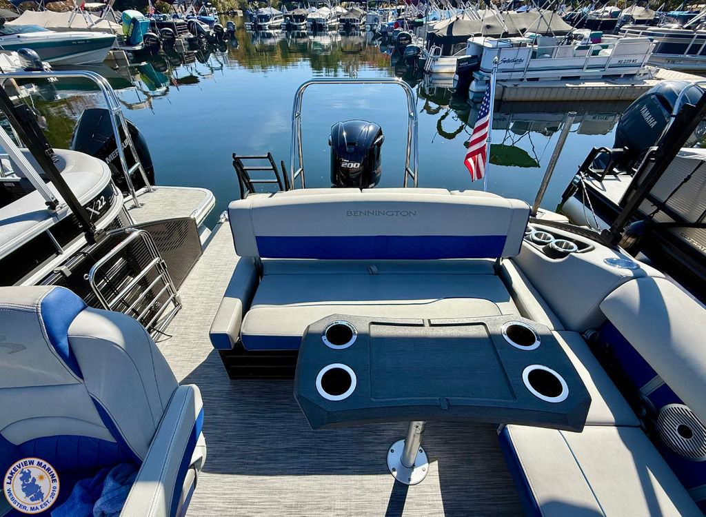 This Bennington is loaded with options and is in the water, available for immediate test drives! Paired with the ultra reliable 200hp Yamaha VMAX SHO