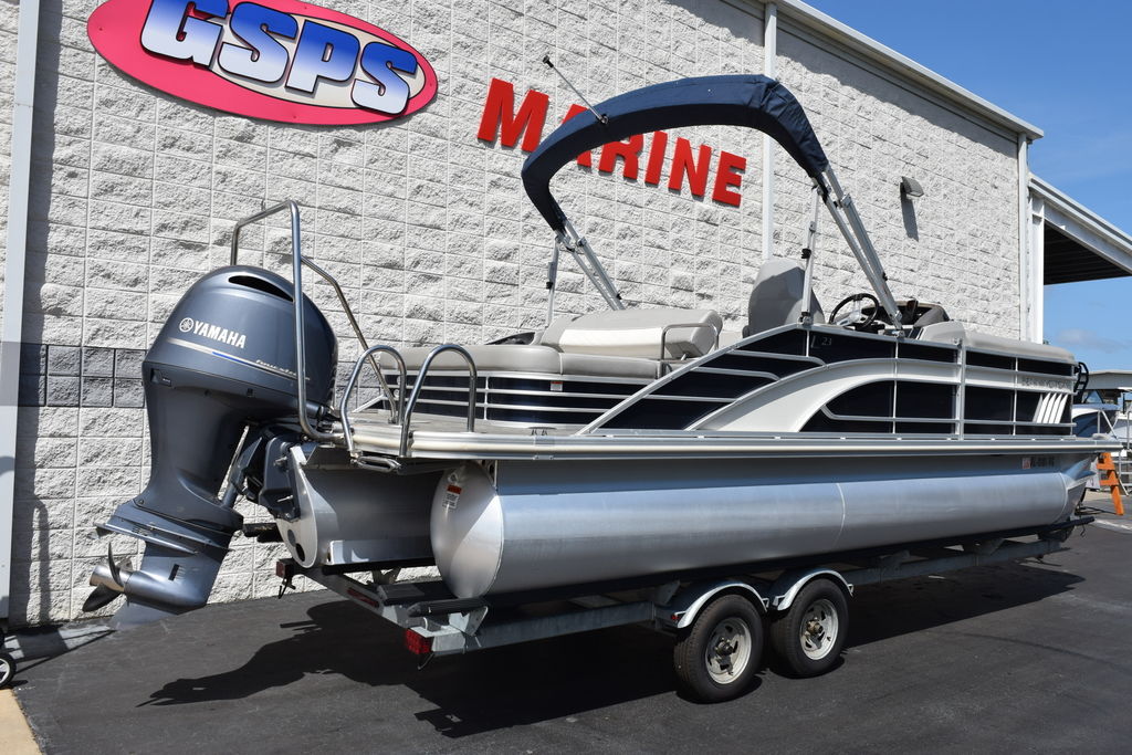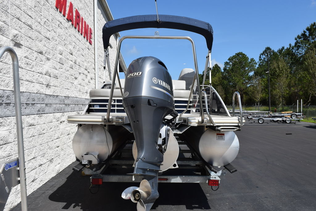 SPS (Full-Length Tri-Toon) powered by a Yamaha F200XB, paired with a galvanized tandem axle aluminum trailer. This is a one-owner, freshwater boat out of middle Alabama that has been well maintained and serviced regularly. It features a Yamaha 200HP 4-stroke 2.8L 4-cylinder (25” shaft) with 434 hours, delivering a strong mix of performance, efficiency, and reliability. The SPS (Sport Performance System) with full-length center tube and transom fuel tank provides a smoother ride, better handling, and more capability than a standard pontoon.