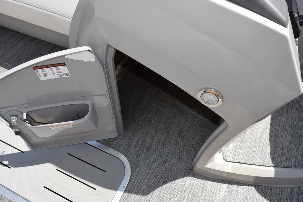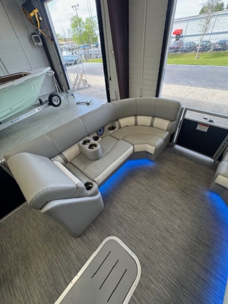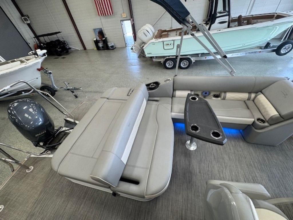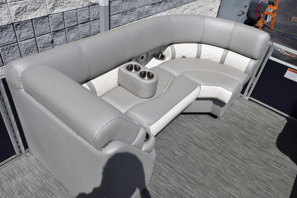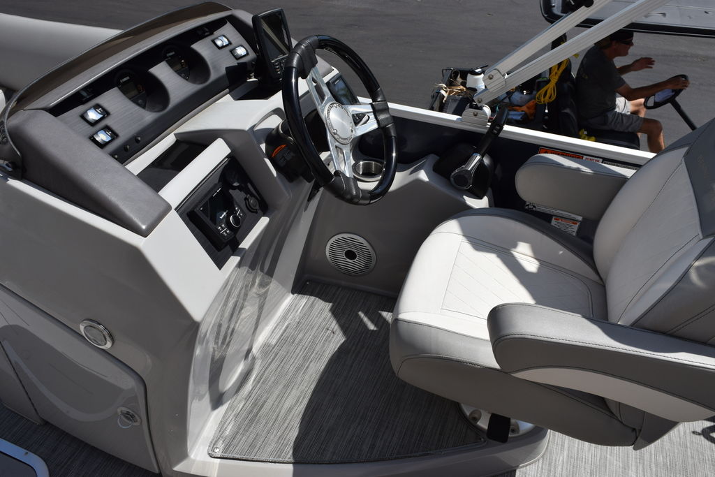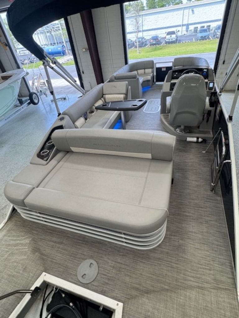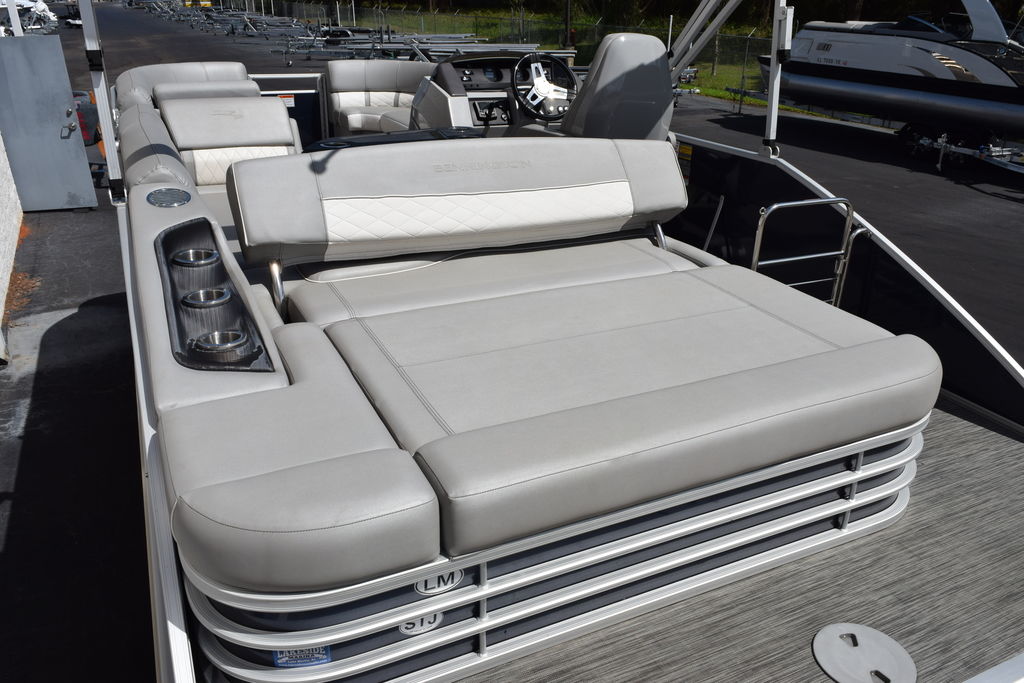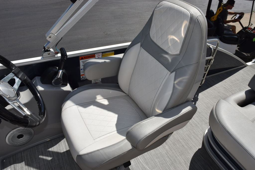 The swing back rear seating layout is one of Bennington’s most popular designs, giving you flexibility for cruising, relaxing, or entertaining. Finished with premium Simtex upholstery and diamond stitching, this boat has the high-end fit and feel Bennington is known for.