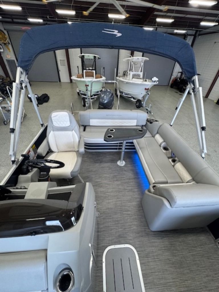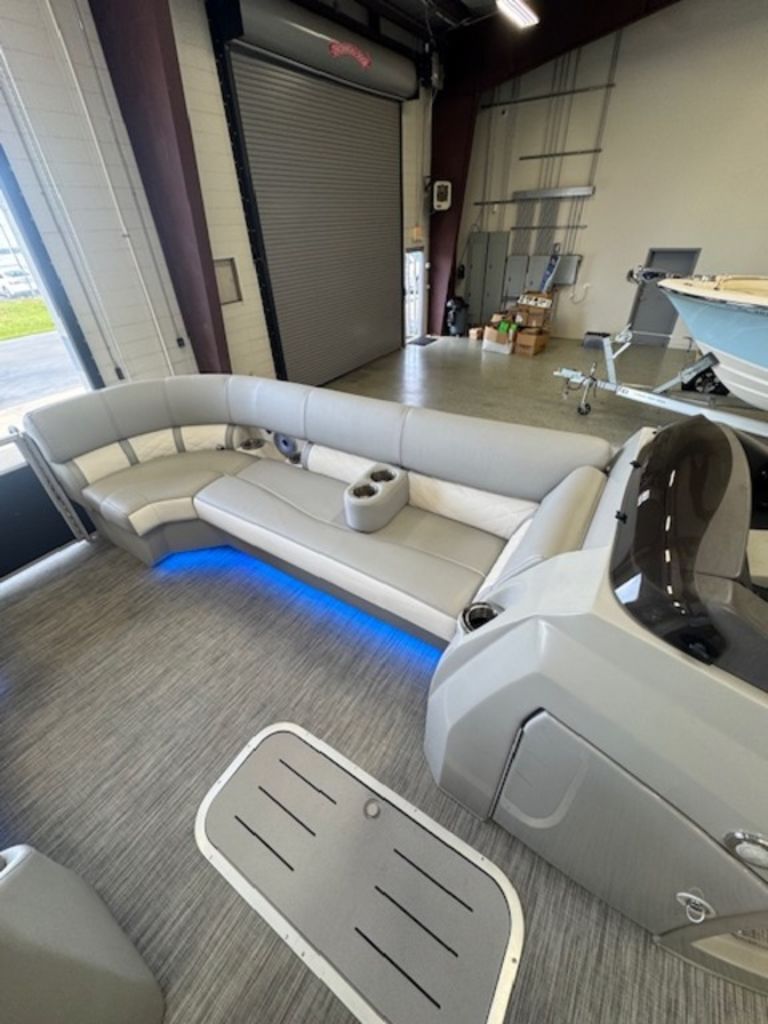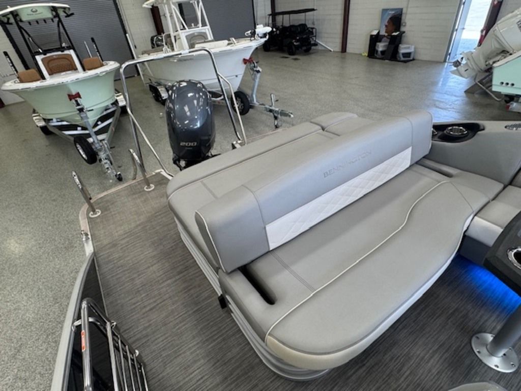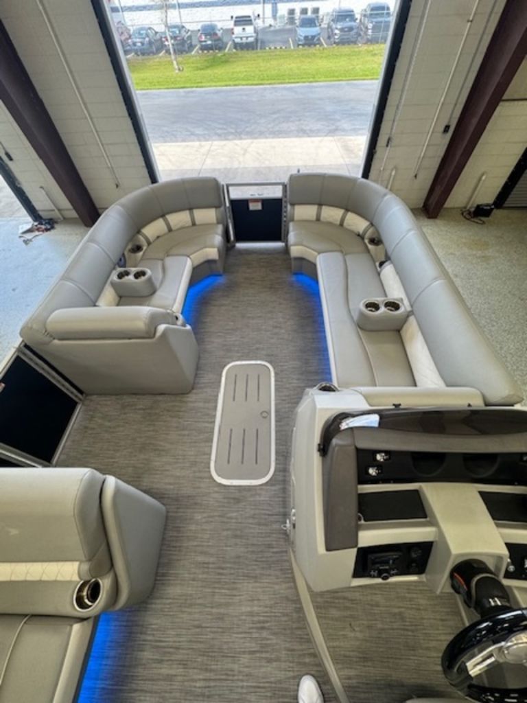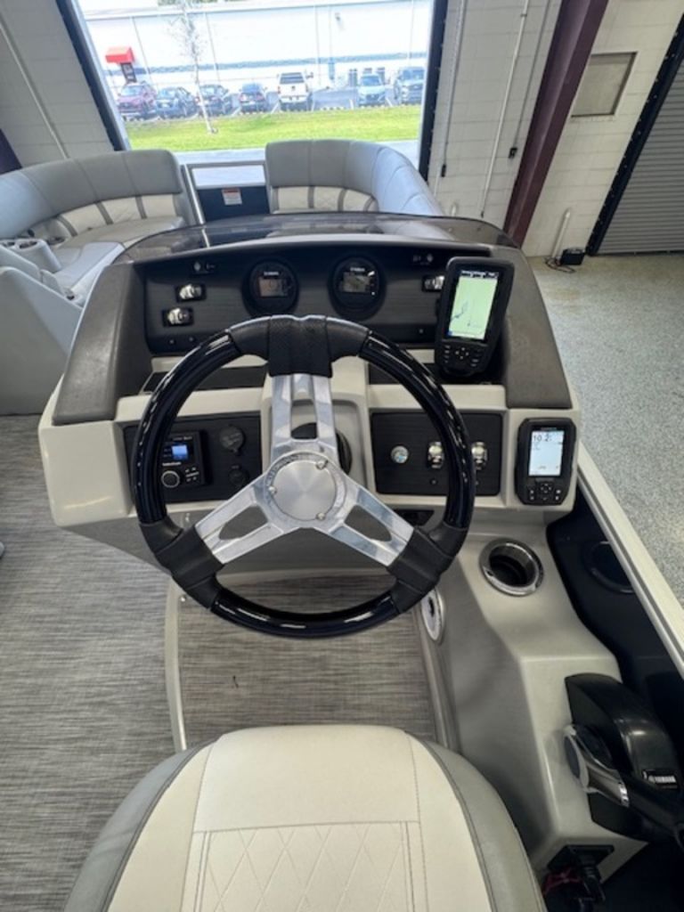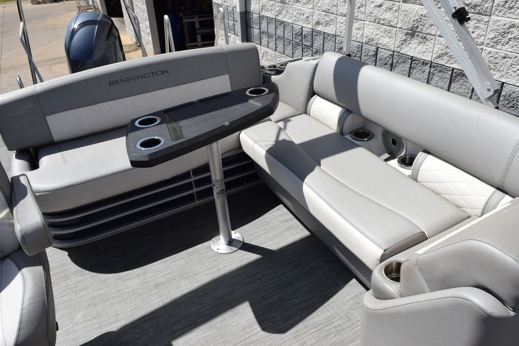 The swing back rear seating layout is one of Bennington’s most popular designs, giving you flexibility for cruising, relaxing, or entertaining. Finished with premium Simtex upholstery and diamond stitching, this boat has the high-end fit and feel Bennington is known for.