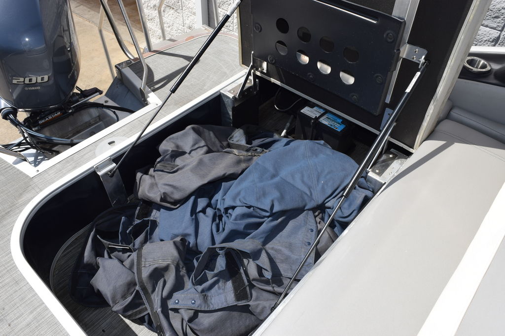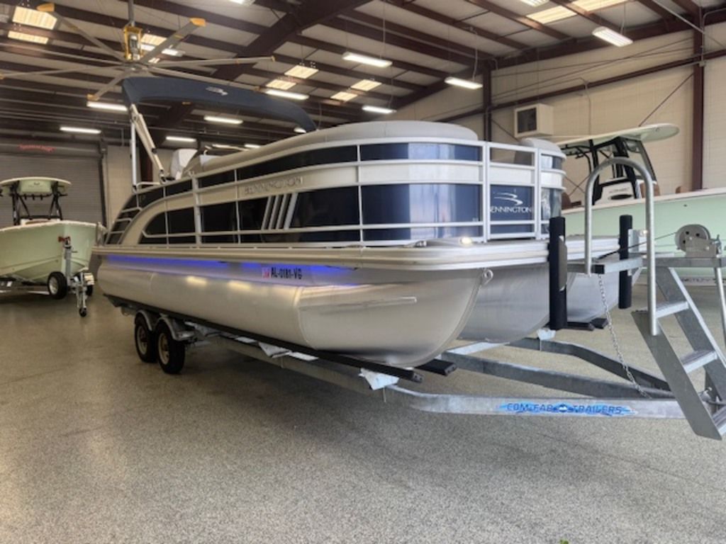SPS (Full-Length Tri-Toon) powered by a Yamaha F200XB, paired with a galvanized tandem axle aluminum trailer. This is a one-owner, freshwater boat out of middle Alabama that has been well maintained and serviced regularly. It features a Yamaha 200HP 4-stroke 2.8L 4-cylinder (25” shaft) with 434 hours, delivering a strong mix of performance, efficiency, and reliability. The SPS (Sport Performance System) with full-length center tube and transom fuel tank provides a smoother ride, better handling, and more capability than a standard pontoon.