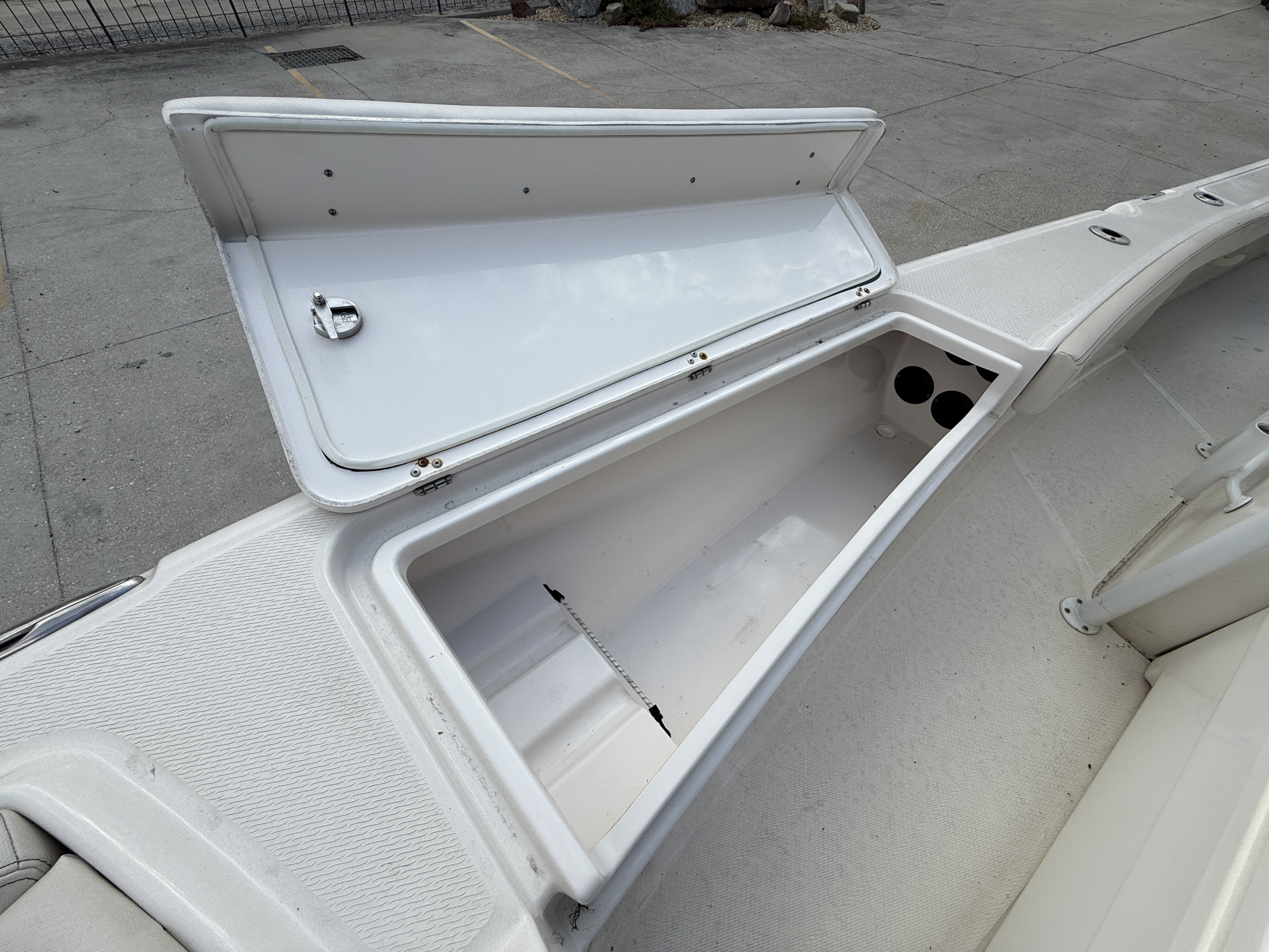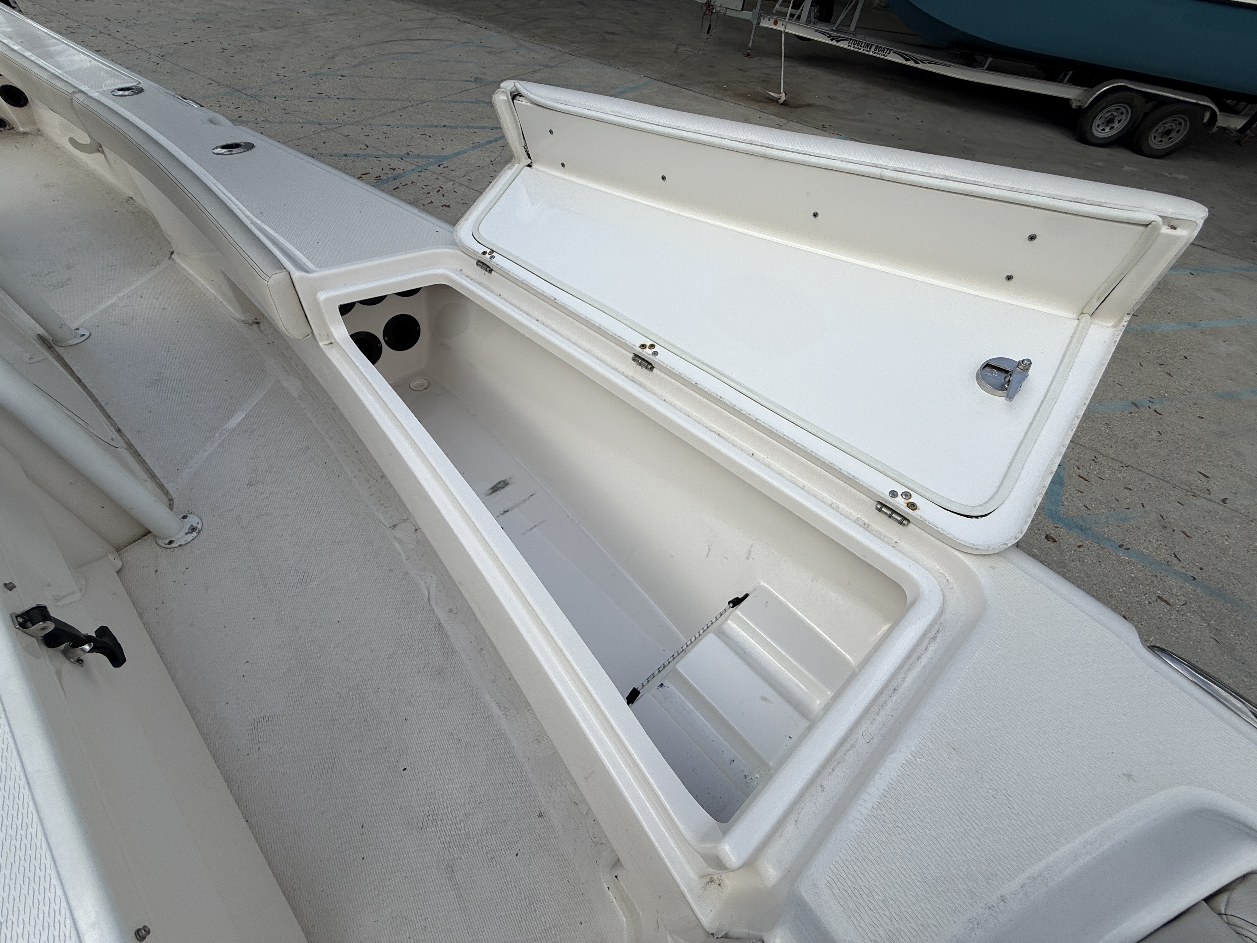 The thoughtful use of space and standard features aboard 2800 Makaira will surprise you. Built-in rod storage in the gunwales, bow seating, optional Frigid Rigid coffin box/forward lounge, toe kicks and combing bolsters provide the comfort you deserve and the performance you demand. You’ll find generous storage, console access plus room for a porta potti inside the console.