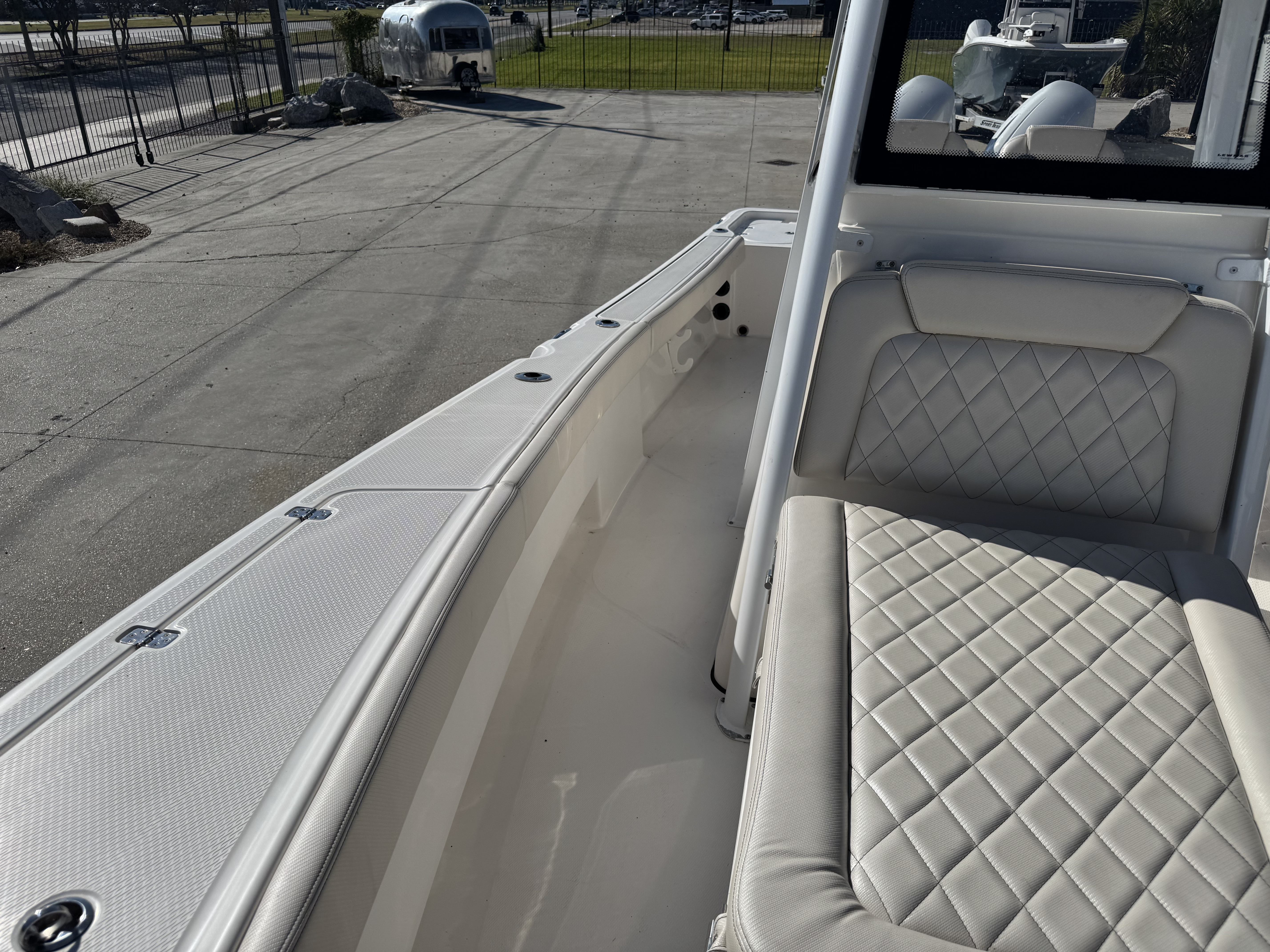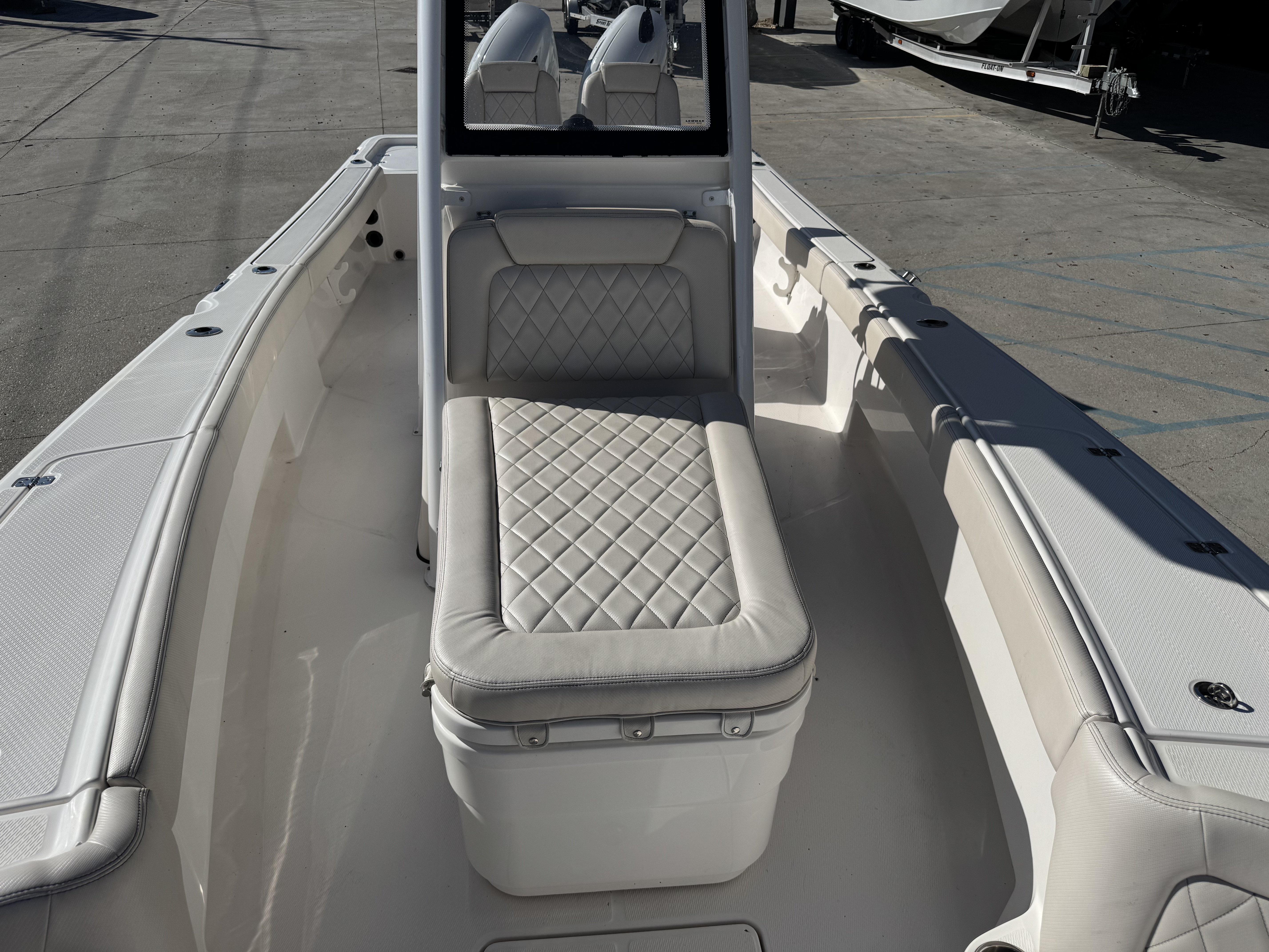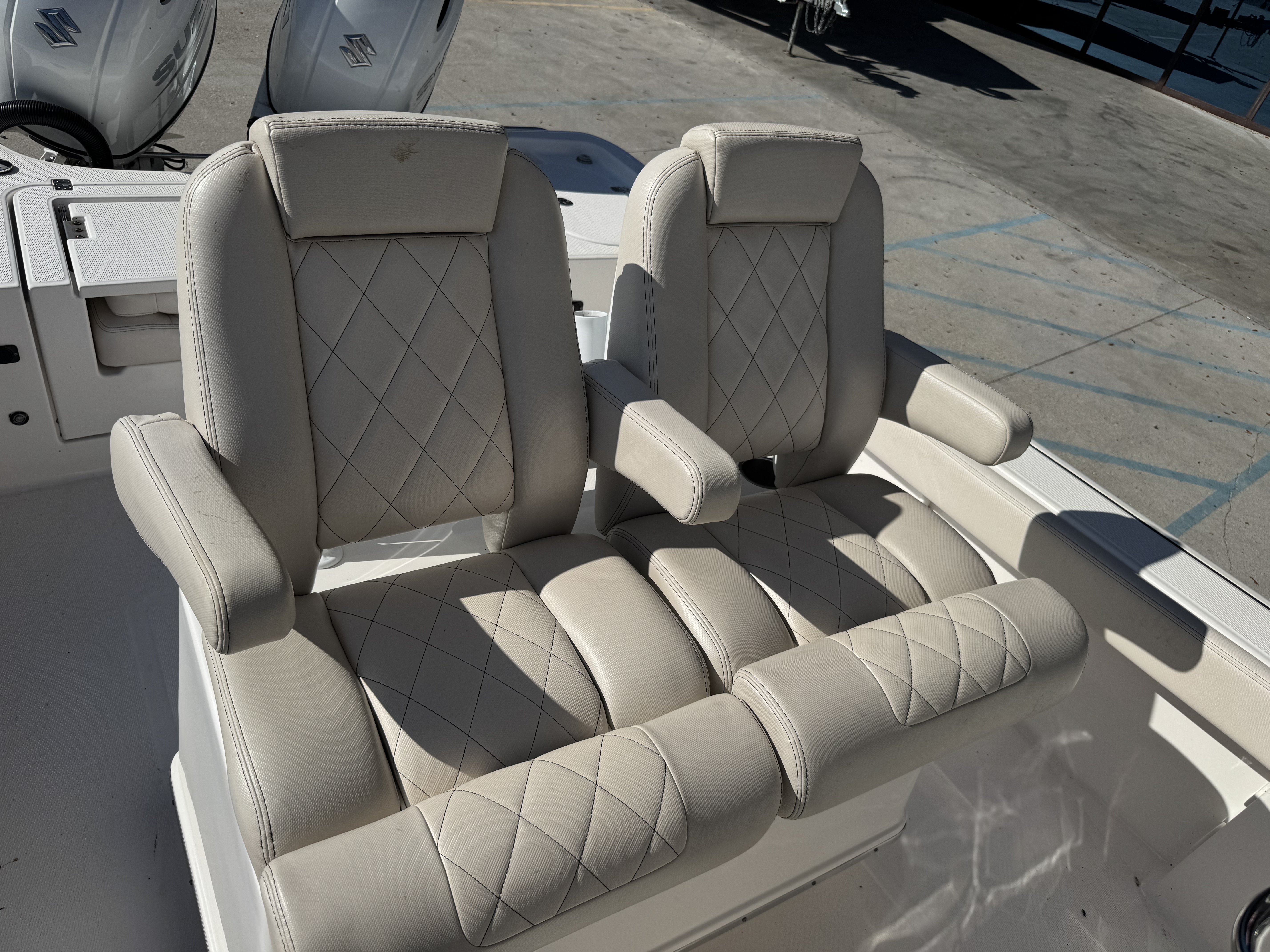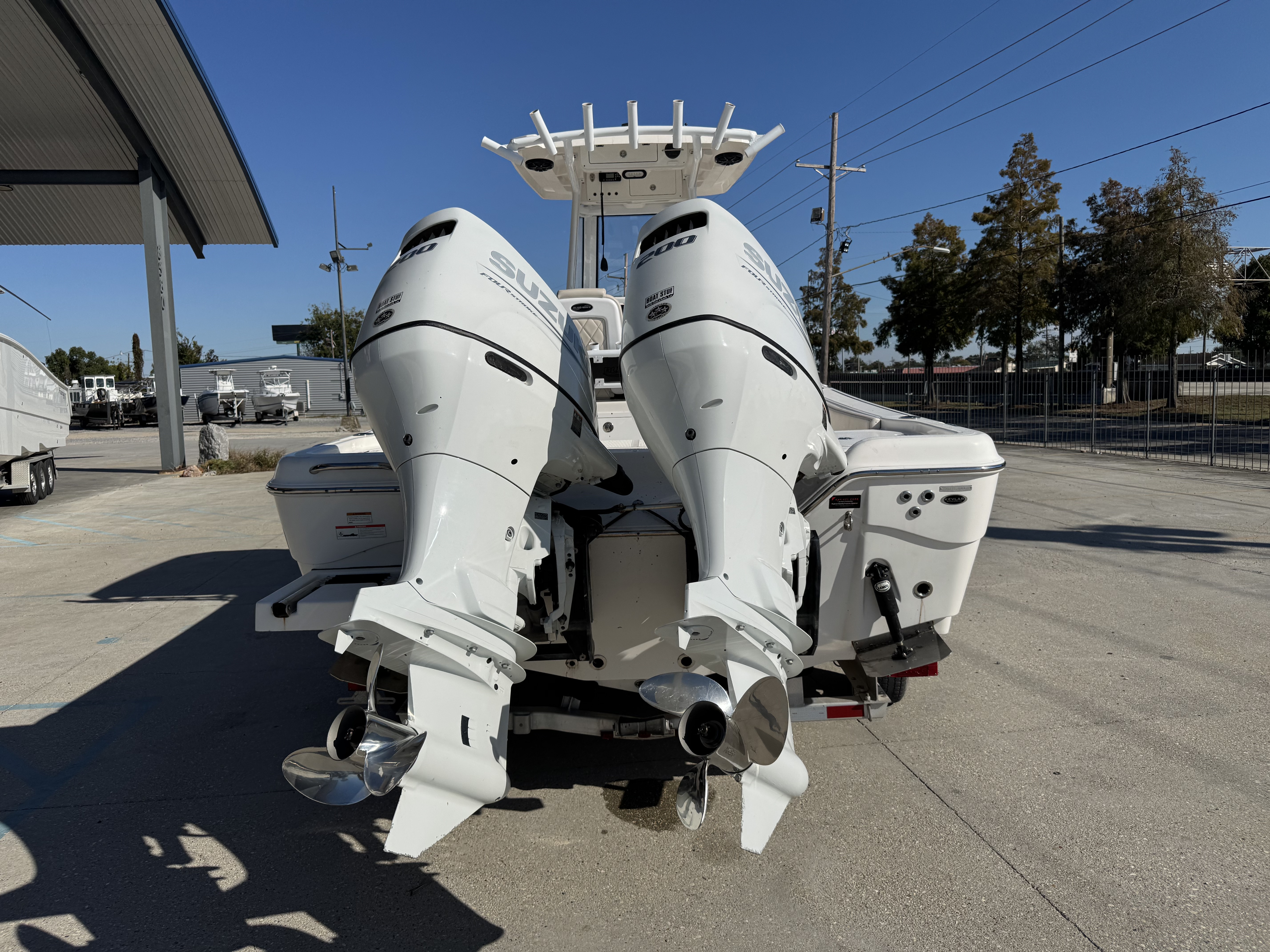 The bow features luxurious wraparound seating with removable cushions and backrests, perfect for cruising or relaxing at the sandbar, while the cockpit offers serious fishability with wide walkways, high gunwales, and ample rod storage. The twin Suzuki 200s provide reliable, efficient power with smooth performance and plenty of punch when you need it. Max HP: 600 HP