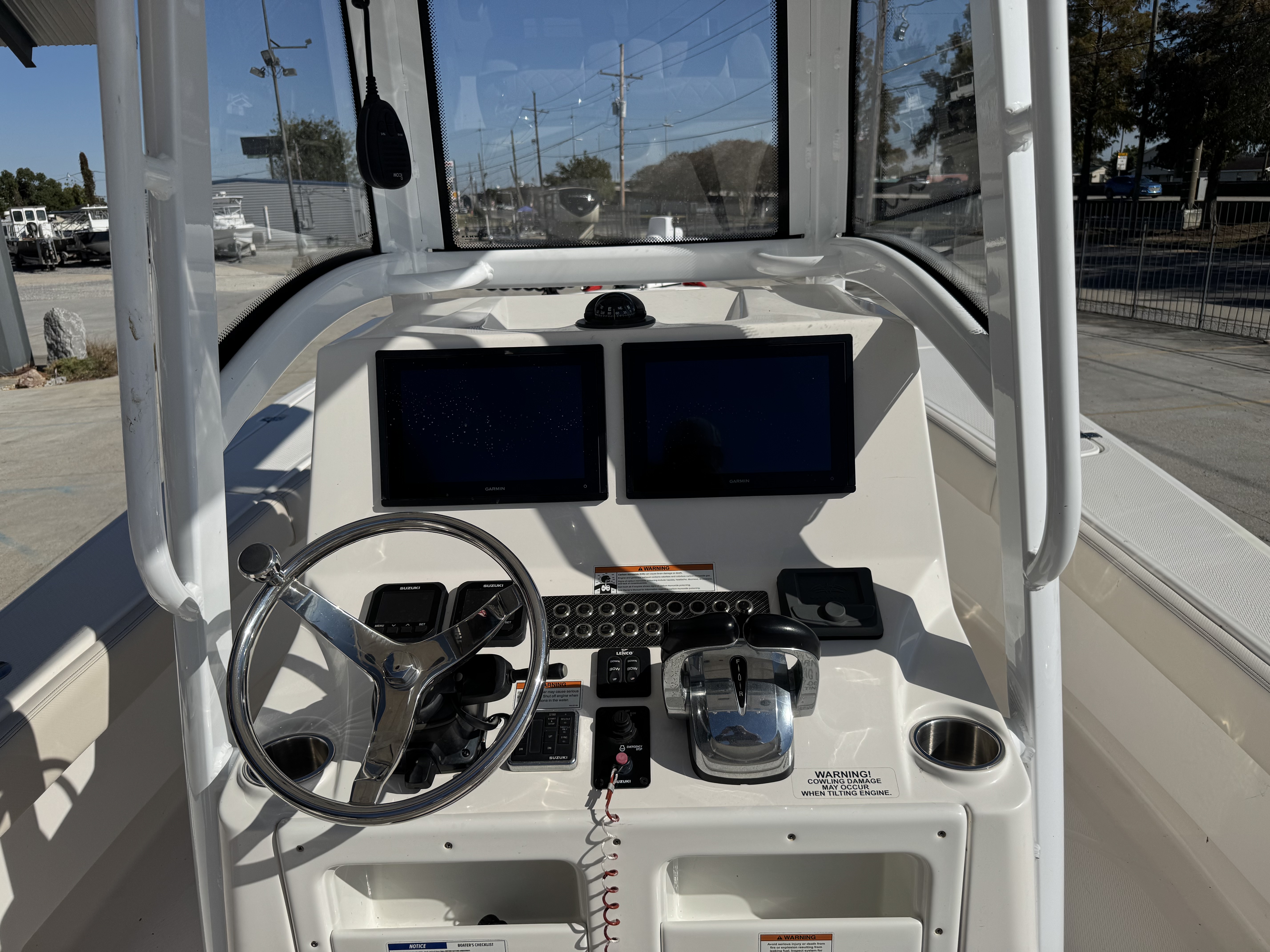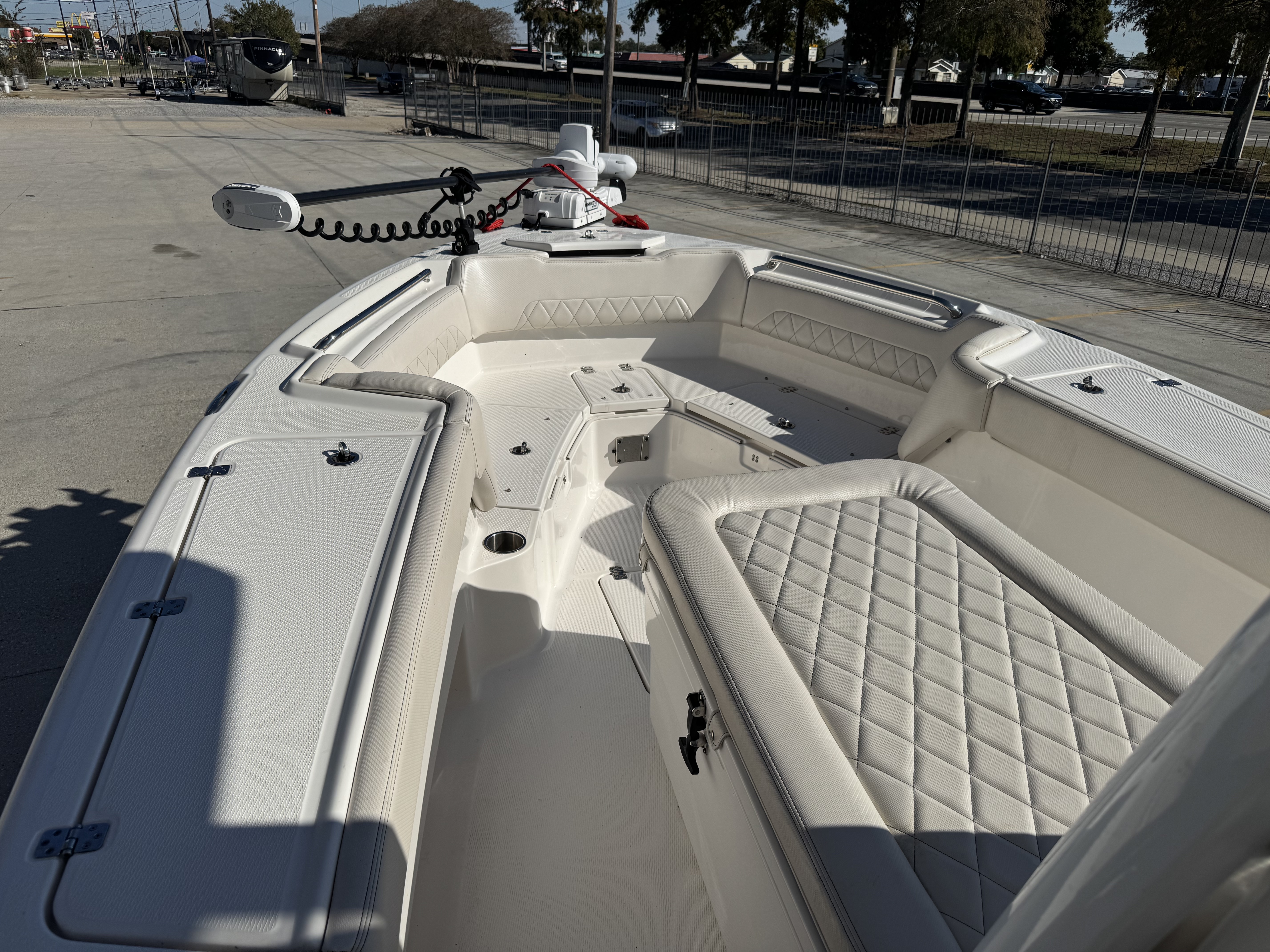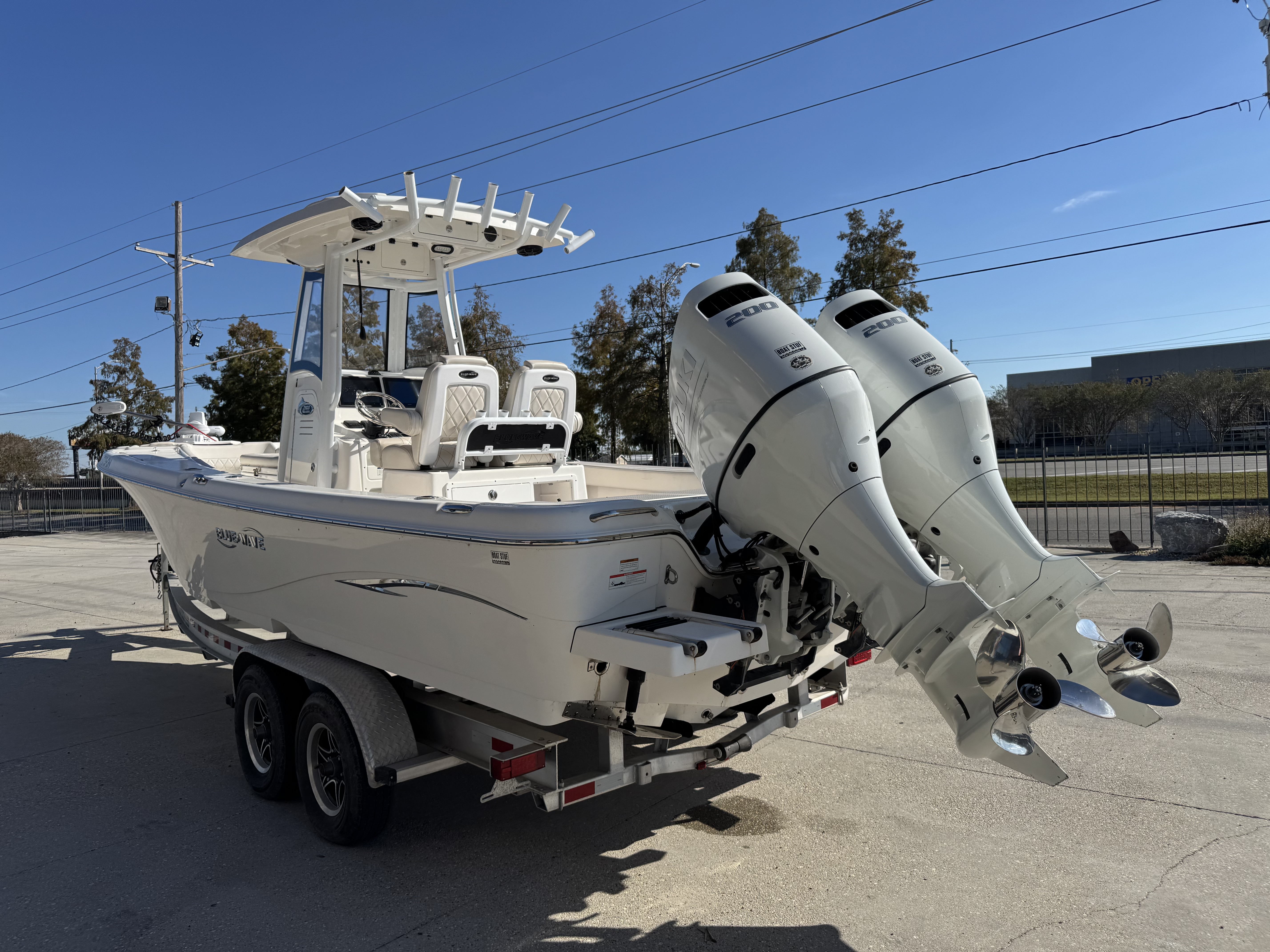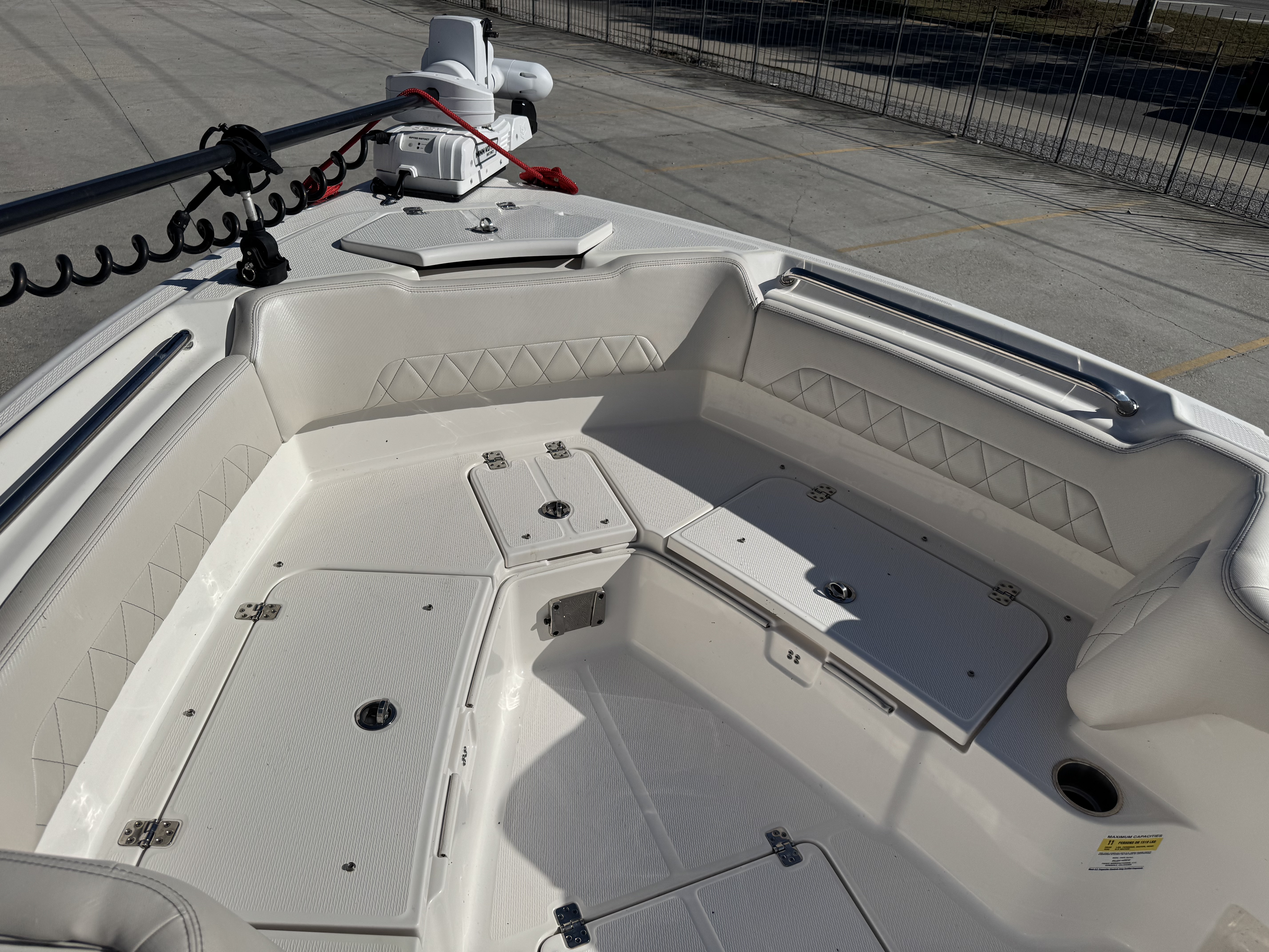The bow features luxurious wraparound seating with removable cushions and backrests, perfect for cruising or relaxing at the sandbar, while the cockpit offers serious fishability with wide walkways, high gunwales, and ample rod storage. The twin Suzuki 200s provide reliable, efficient power with smooth performance and plenty of punch when you need it. Max HP: 600 HP