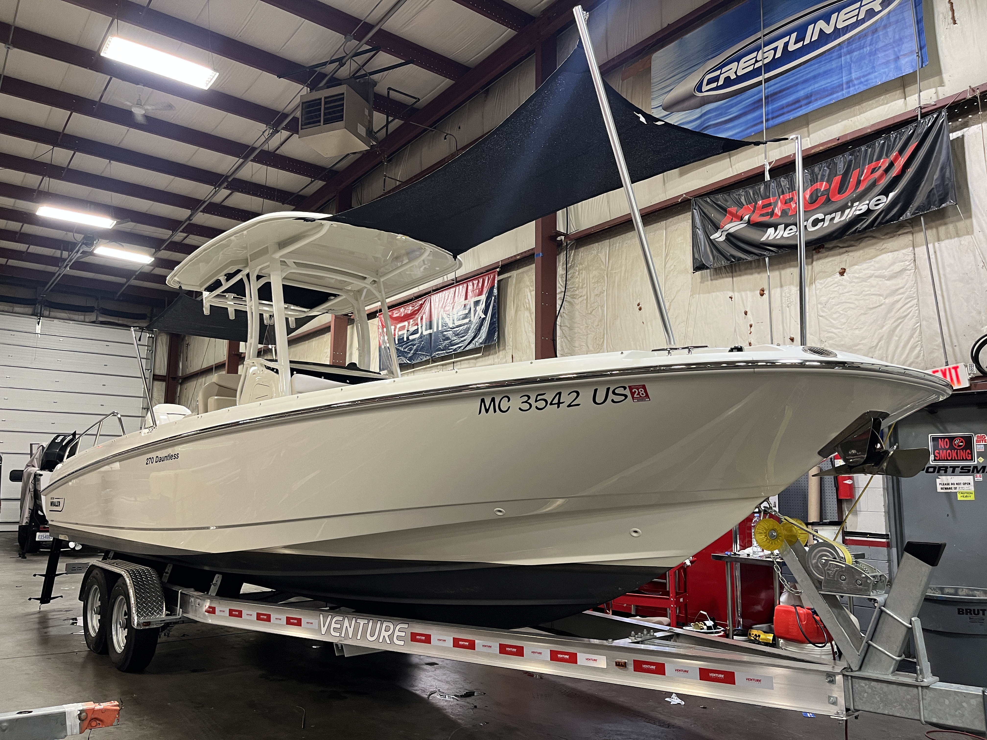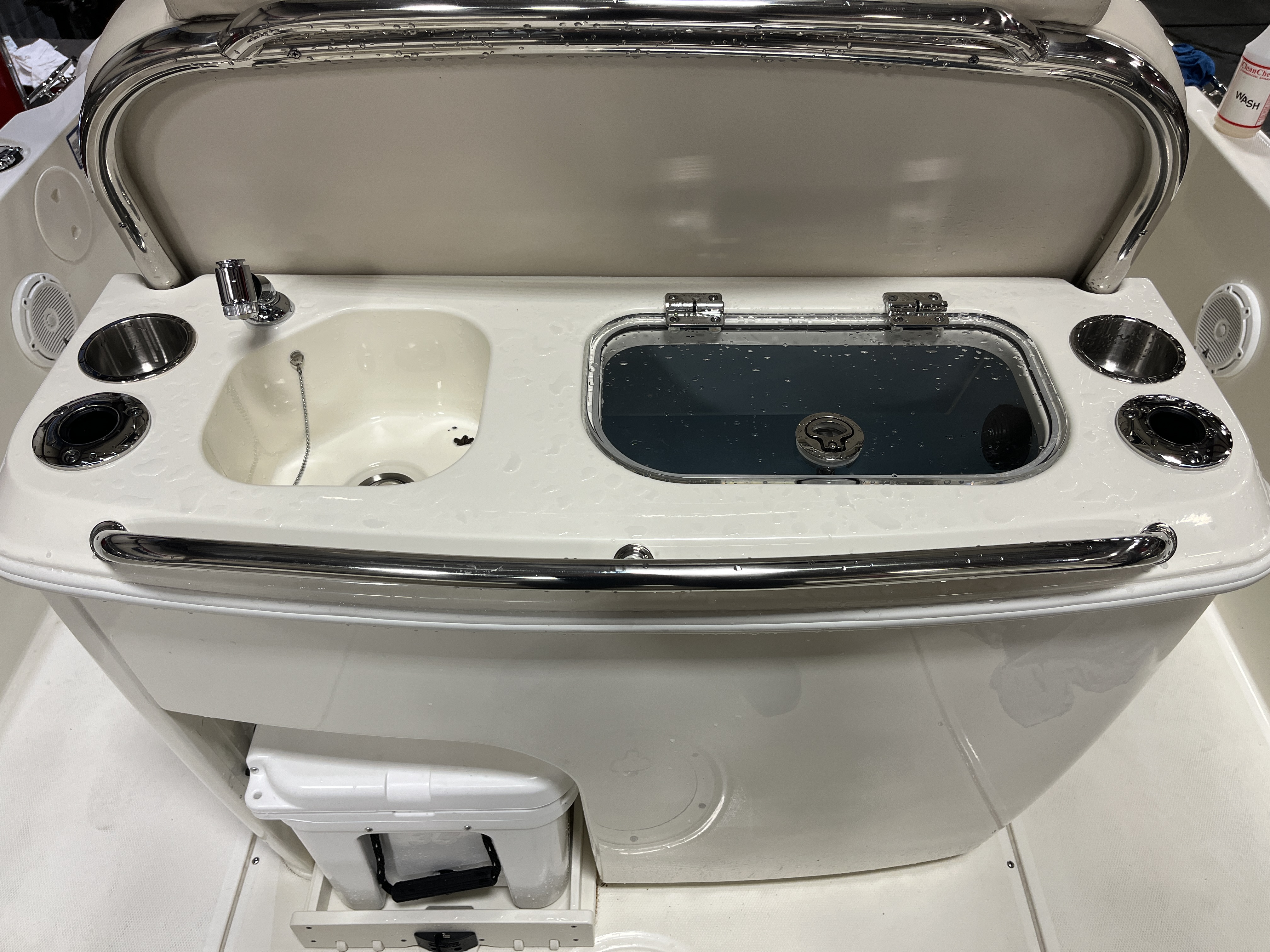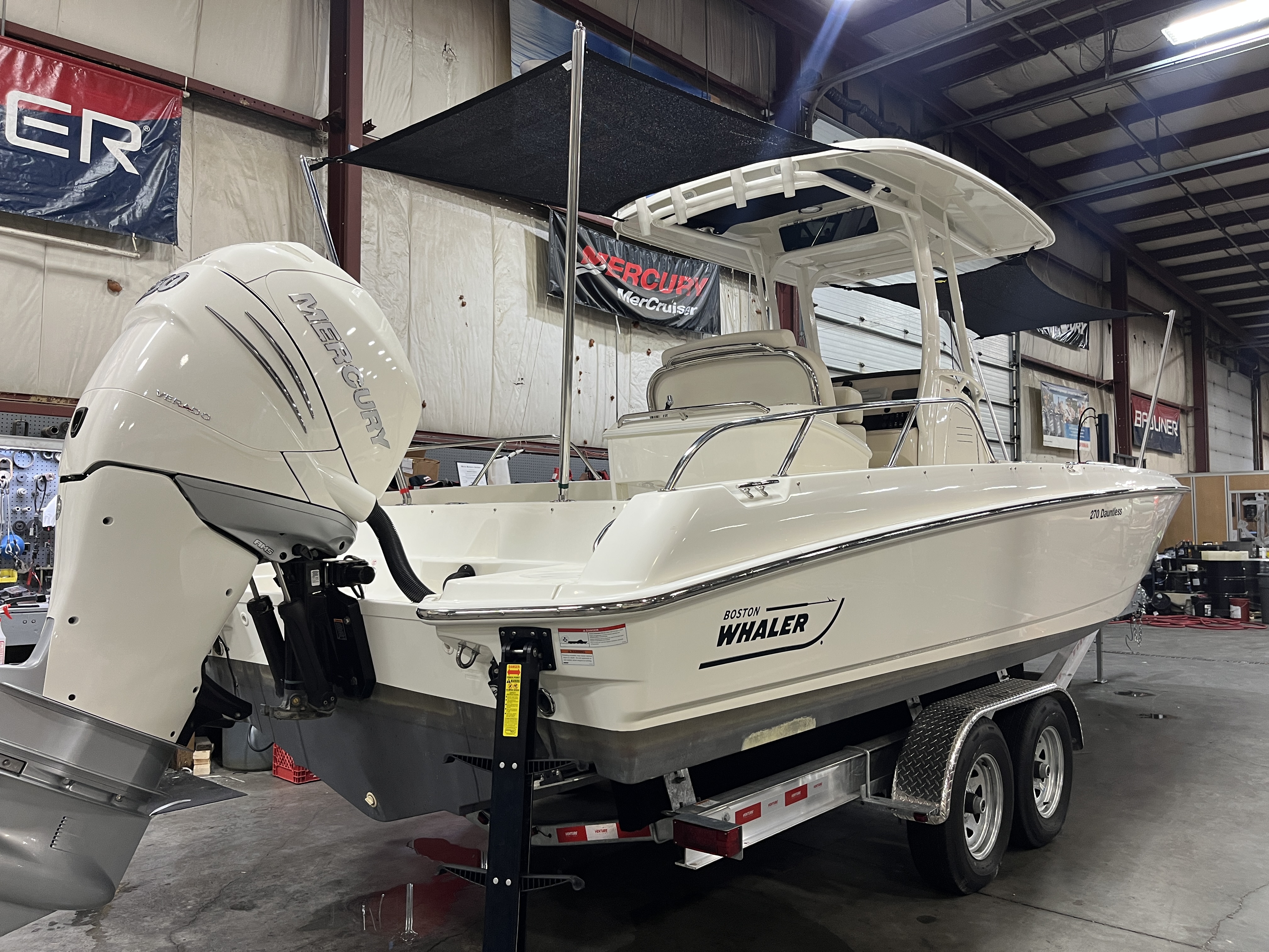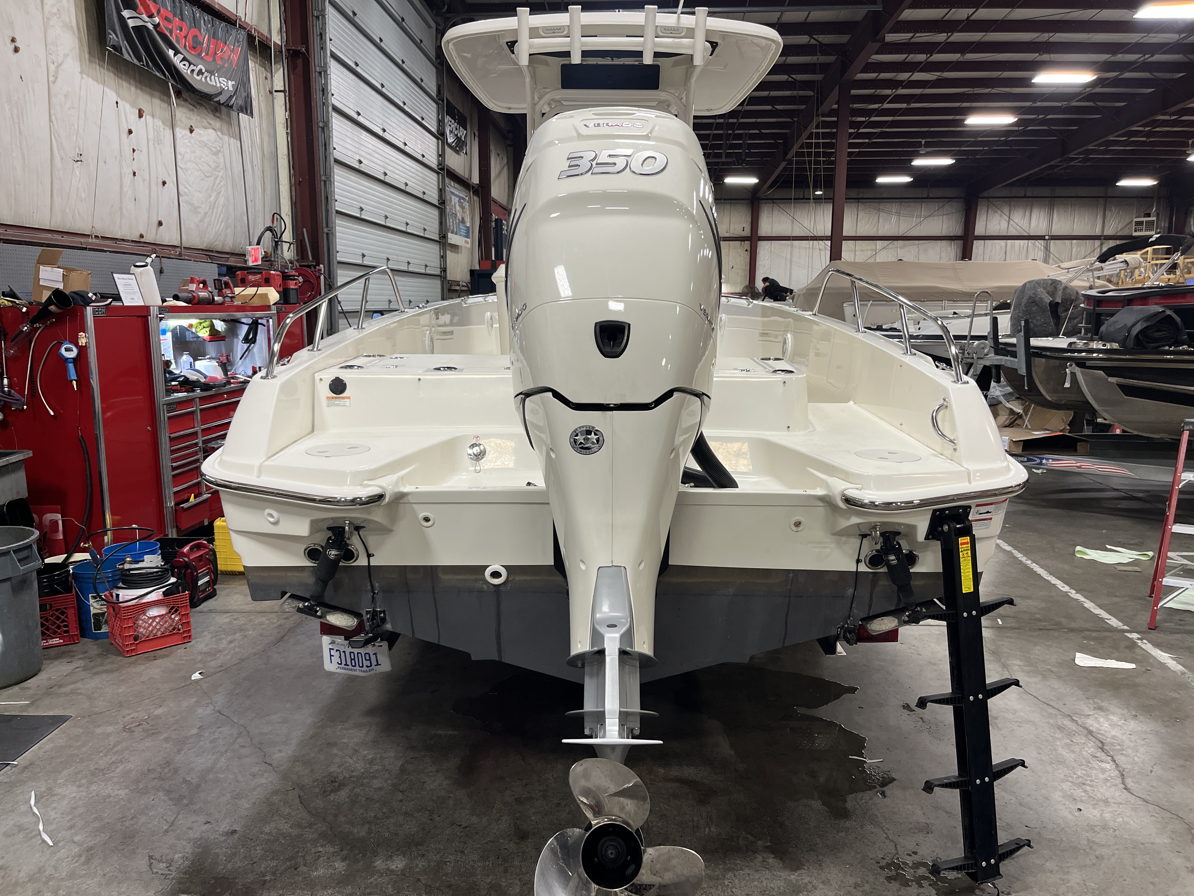Gorgeous low hour boat and well below book value. This comes powered by a Mercury 350hp Verado with just 87 hours of use. This well maintained center console includes many standard features and upgrades of Bow and Stern sunshade, coffin box, 12' Garmin, Windlass and pump-out head.