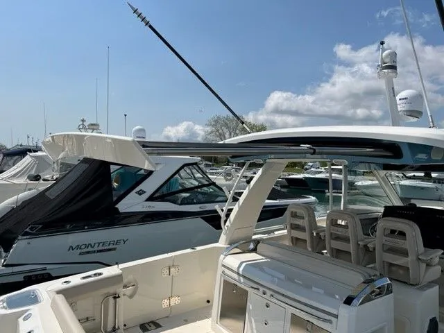 This one owner 2021 Boston Whaler 420 Outrage is fully equipped, SeaKeeper stabilized and powered by quad Mercury 450R's with only 252 fresh water hours. She has been Captain maintained and operated since delivery. It has spent the summer months in on Lake Michigan and during the winter she is kept inside heated storage. This 420 is currently located in Chicago, IL. Call today to schedule a showing!Unmatched state-of-the-art features make the flagship 420 Outrage a boat like no other, and our Anniversary Edition marks a key milestone in the evolution of the family's comfort and legendary capability. From the expansive bow with innovative seating galore, to the beautifully designed convertible helm and cockpit areas, to the gracious, well-equipped cabin with enclosed head, the 420 is a champion at onboard entertaining and pleasure cruising, whether close to home or way offshore. With so many inviting spaces to settle in for the day, this is the yacht you'll want to enjoy with family and friends.Engine Hours: 135Sea Keeper Hours: 25Factory Options:Colored Hull Abaco BlueAbaco Blue Underside of Hard TopChrome GraphicsBlack CanvasWhite FrameHard Top SunroofShore-Tax Exterior Upholstery PackageAnchor Windlass and ChainSummer KitchenAft Cockpit TableFull Side GlassFiberglass Bow TableCockpit Fold out BenchUnderwater Lighting212 DC Receptacle for DownriggersDeluxe Radial Outriggers (Hard Top Mounted)Radar- Magnum - Open Array 4KW SHD/SATVessel View MobileRealvision 3D SonarAudit ID System (AIS) 700 TransceiverFLIR Thermal Night VisionPremium Audio PackageSatellite Radio and TVCanvas Cover PackageDiesel GeneratorSeaKeeper Gyro StabilizerActive Engine Trim16" Ray Marine Axiom XL Triple Elec/Nav PkgTrades considered.
