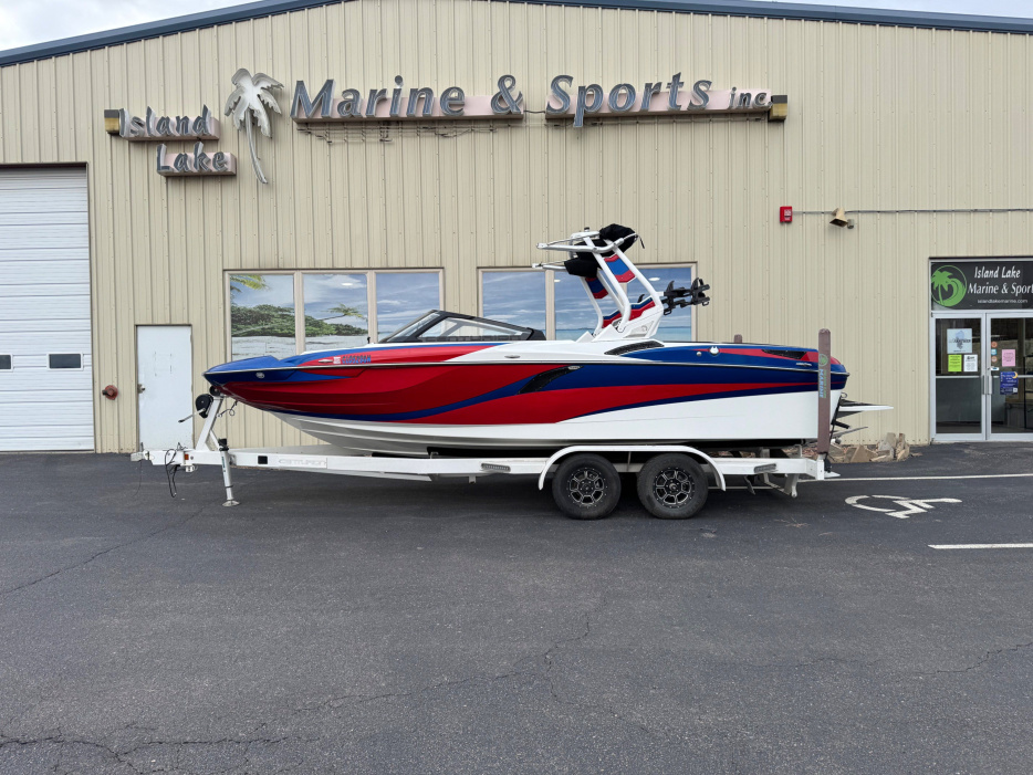 2021 Centurion Fi23 - An Epitome of Power and Luxury Introduction: The 2021 Centurion Fi23 stands out as an unmatched blend of luxury and power on the water. Embodying the modern design, advanced technology, and unbeatable performance, this model is a real game-changer in the world of wake boats. Superior Performance: Equipped with PCM engine options, the Centurion Fi23 promises high torque, greater fuel efficiency and low emissions. The result is an enthusiast’s dream: unequaled power, reliability and sustainability on the water. To augment wake surfing and wakeboarding, the Fi23 features Centurion's innovative Opti-V Hull Design and Silent Stinger Wake Plate that maximize performance while minimizing noise emission. Impeccable Design: Aesthetically, the 2021 Centurion Fi23 is truly captivating. It boasts of a sleek and modern design with a range of custom finishes that blend style and function. The interiors are laced with luxurious upholstery, ambient lighting, ample storage space, and hand-stitched detailing. It also offers a spacious layout that comfortably accommodates up to 14 passengers, letting you host unforgettable boating experiences for your family and friends. Advanced Tech Features: Designed for unmatched connectivity and entertainment, the Fi23 integrates a state-of-the-art Roswell Marine Stereo System that delivers crisp, pulsating tunes to enliven your sea adventures. The Touch Vision System allows for seamless control of boat functions, while the GPS enabled cruise control system ensures worry-free navigation. Safety & Convenience: Every inch of the 2021 Centurion Fi23 reflects thoughtful design catered to safety and convenience. It's complemented with a quick-launch system to minimize bow rise and increase visibility. The built-in cooler, versatile seating arrangement and the generously proportioned swim platform add to the boat’s usability and versatility, promising convenience at every turn. Conclusion: In the 2021 Centurion Fi23, power meets innovation and performance dances with luxury. Crafted with precision, it is a boat that leaves no room for compromise, offering an unparalleled boating experience.