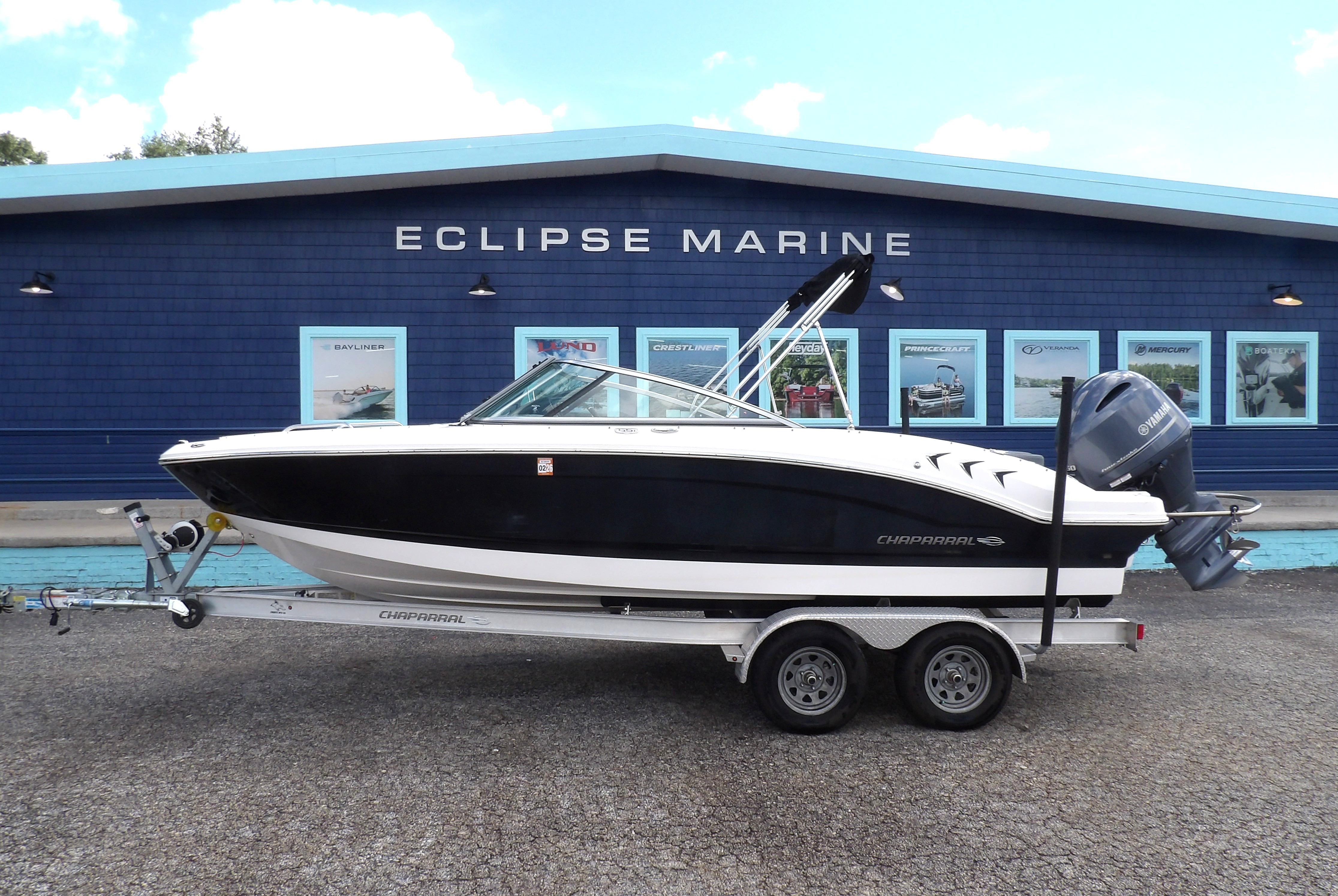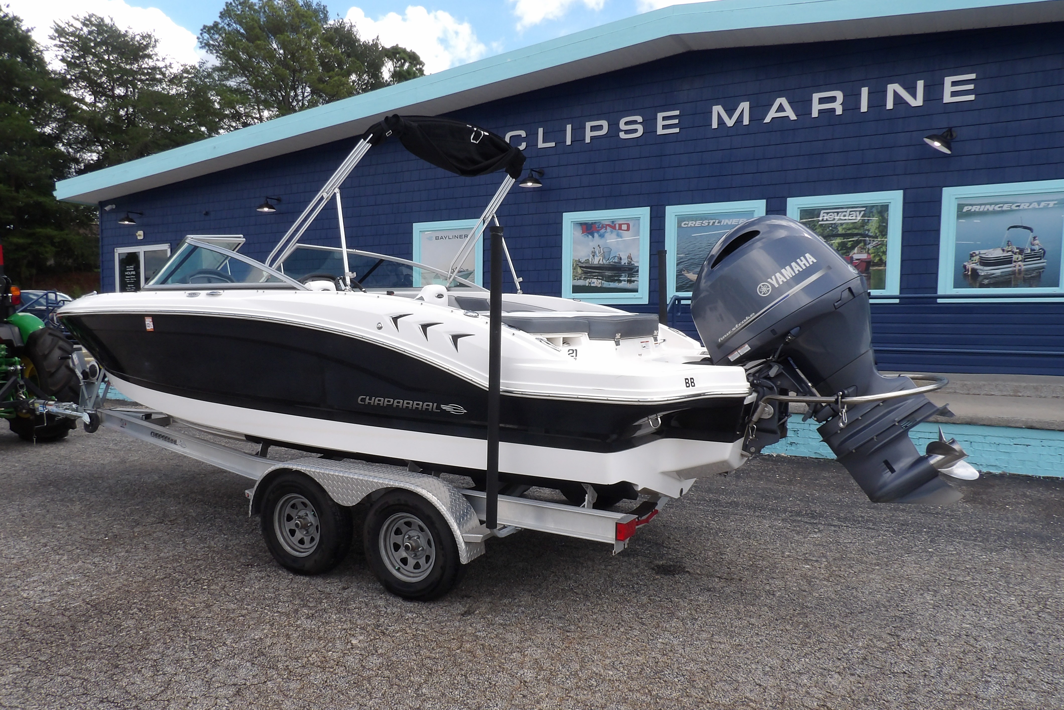 This previously enjoy 2021 Chaparral 21 SSI is a clean and ready to hit the water. Paired with a reliable, low hour 150 HP Yamaha Four Stroke outboard, its perfect for your family to cruise for years to come. This boat features a spacious, well thought out cockpit with comfortable seating and plenty of storage. Great for tubing, skiing or just cruising, stop in and check this Chaparral out before it's gone. For more details, the latest in pricing and incentives give us a call at Eclipse Marine Seneca (864) 670-2270 or stop in and see us at 305 US Hwy 123 Seneca, SC. Max HP: 200 hp (149 kW)