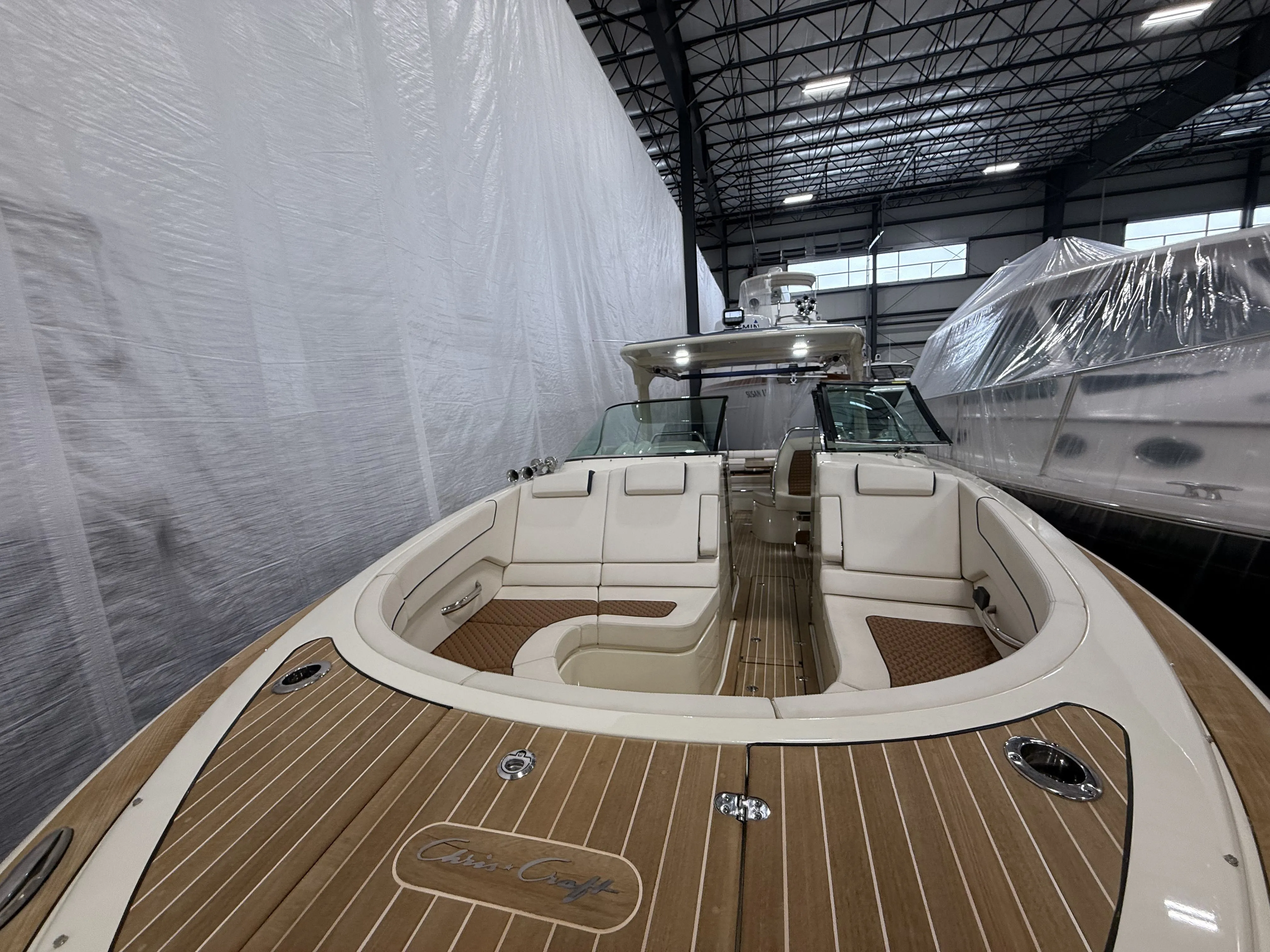 Recent price reduction on this pristine like-new 2021 Chris Craft Launch 35 GT\ Heritage Edition boasting under 100 hours of exclusive fresh water use! Experience timeless elegance and exhilarating performance in this meticulously maintained boat featuring a stunning Fountain Blue painted hull and joystick equipped Mercruiser V8 8.2L fresh water cooled engines. Fresh bottom paint and refinished teak promise immediate enjoyment. The boat is outfitted with a premium electronics display, Garmin radar, and VHF radio ensuring you stay connected and informed on the water. Luxury and craftsmanship are evident throughout with teak accents on the cockpit table and rails, as well as a stainless steel anchor with electric windlass. Relax to the sounds of the premium audio system, prepare meals on the cockpit grill and enjoy enhanced visibility with docking lights, a spotlight and vibrant underwater LED lights. Additional highlights include the comfort of a teak lined cockpit and unmatchedattention to detail, making this vessel exceptionally clean. This Chris Craft 35 Launch Heritage Edition offers unparalleled sophistication, versatility and a pristine condition that will impress even the most discerning buyers. Motivated sellers. Bring all reasonable offers!