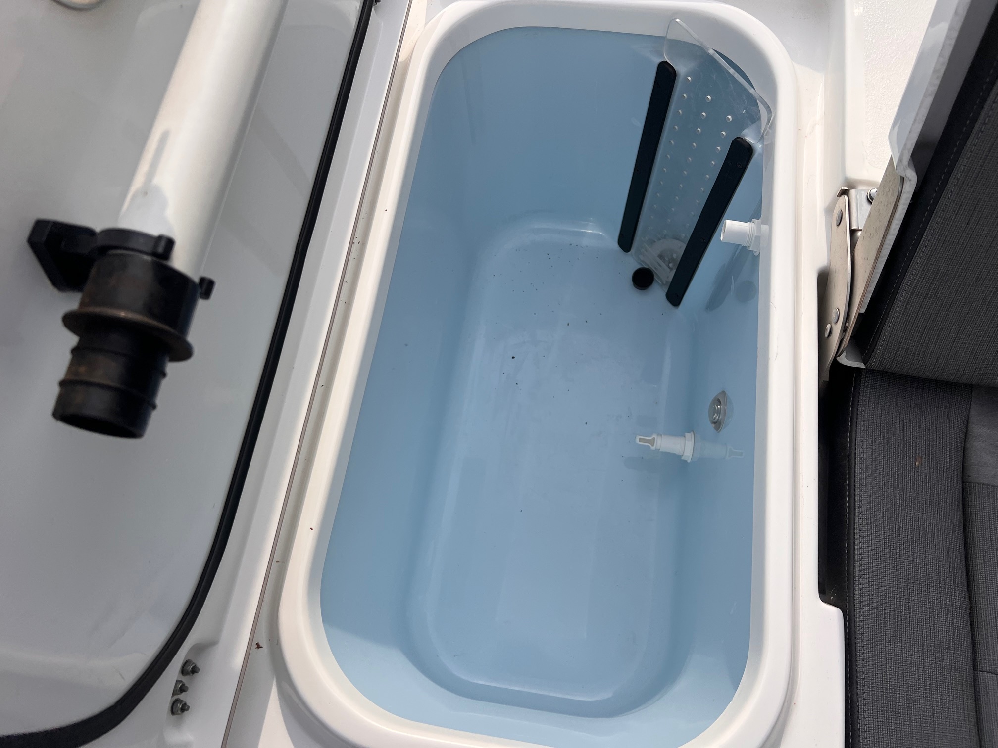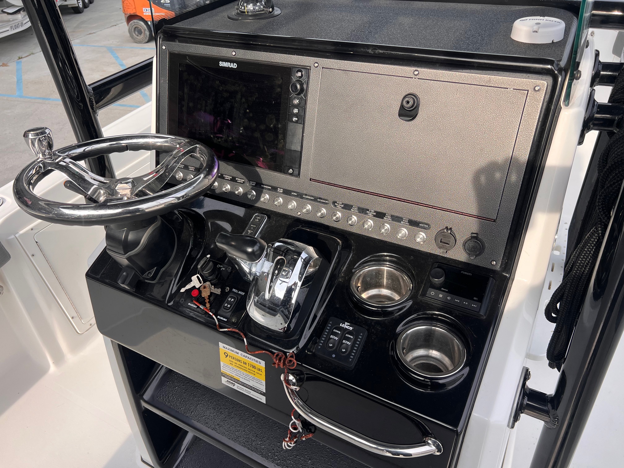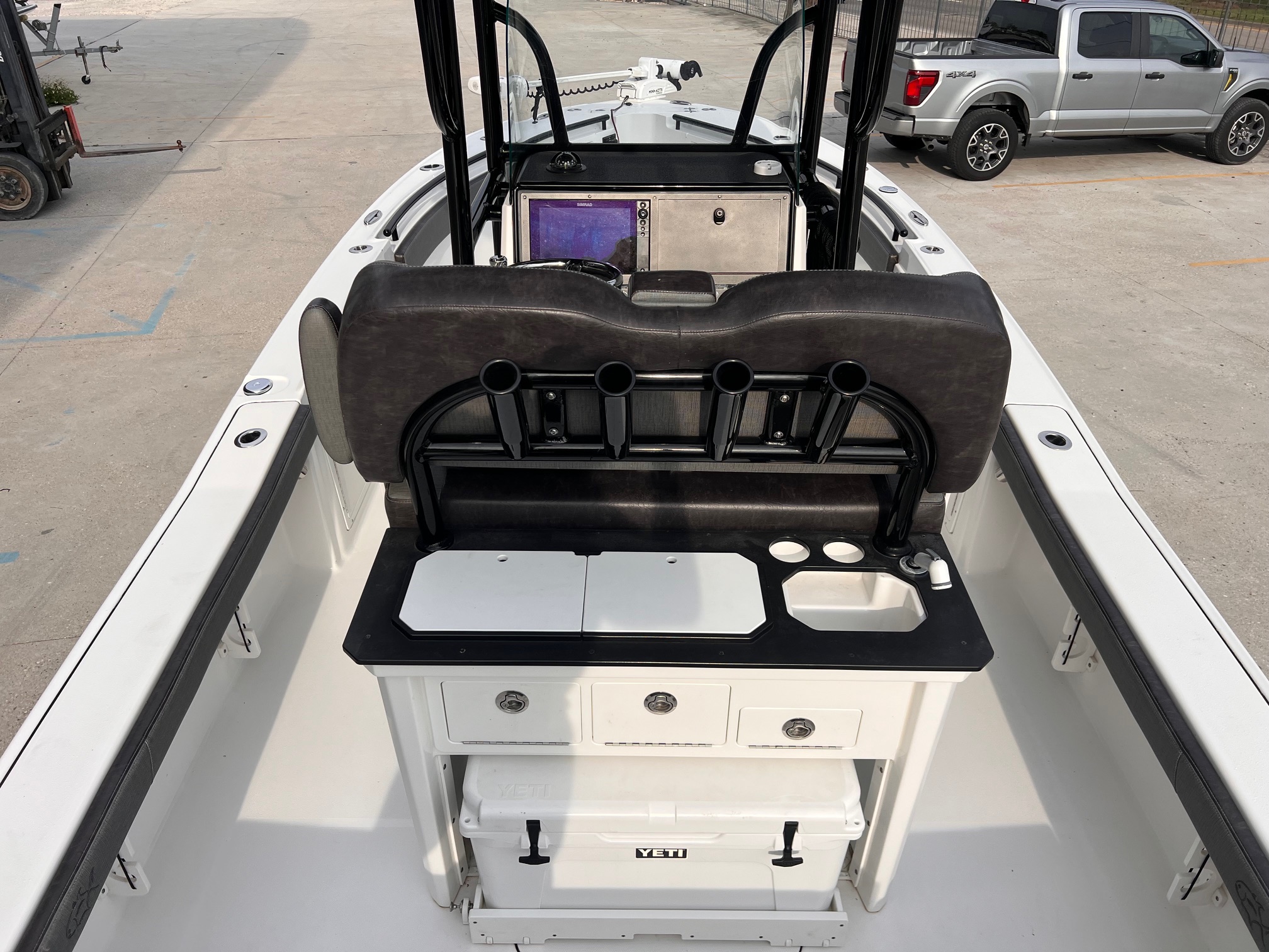 The 2021 Crevalle 26 HBW is a 25.5-foot center console boat with a beam of 8.5 feet. It's powered by a 350 horsepower engine, and features a 16-degree deadrise hull. The boat has a draft of 12-14 inches and a fuel capacity of approximately 90 gallons.