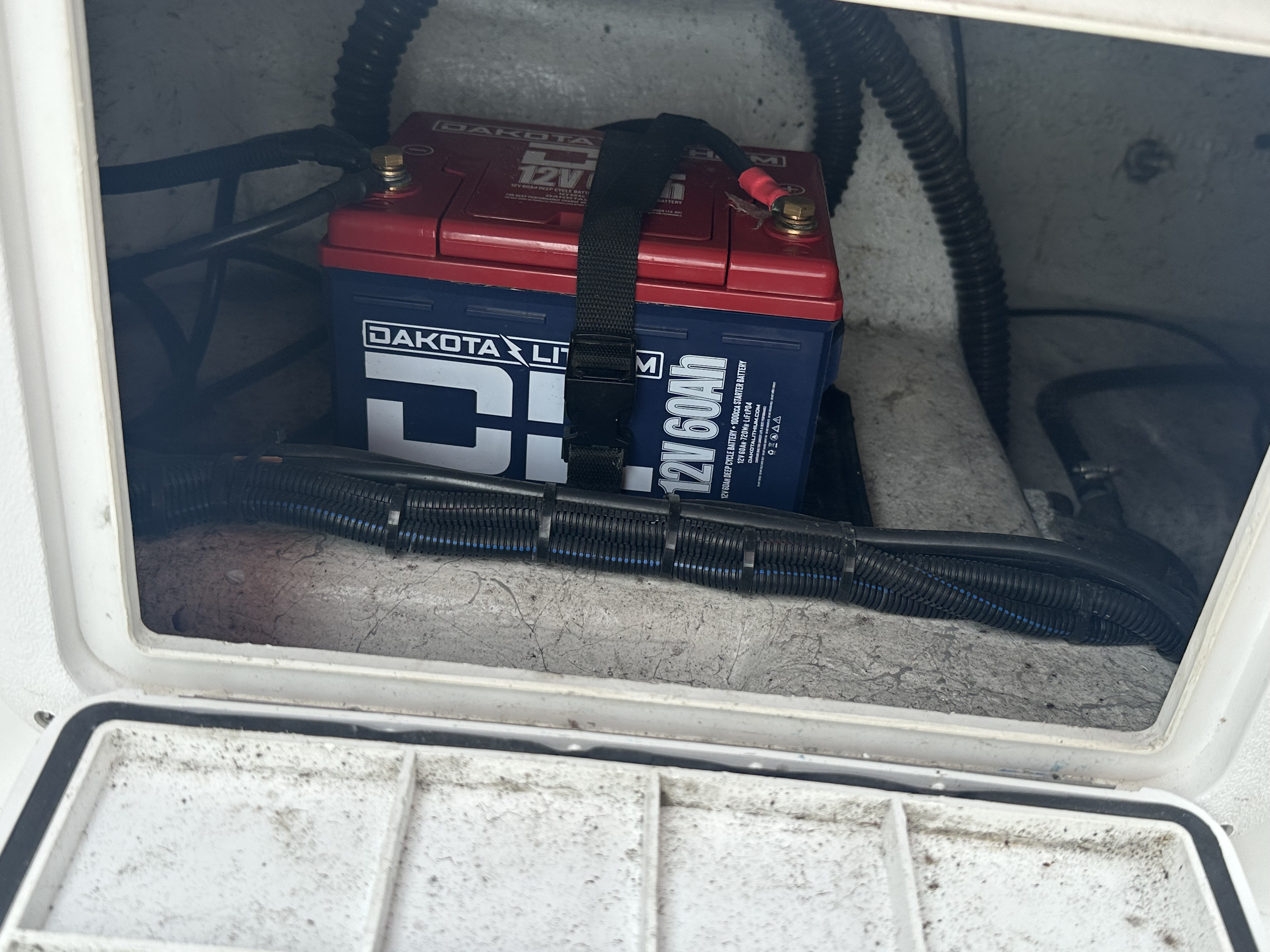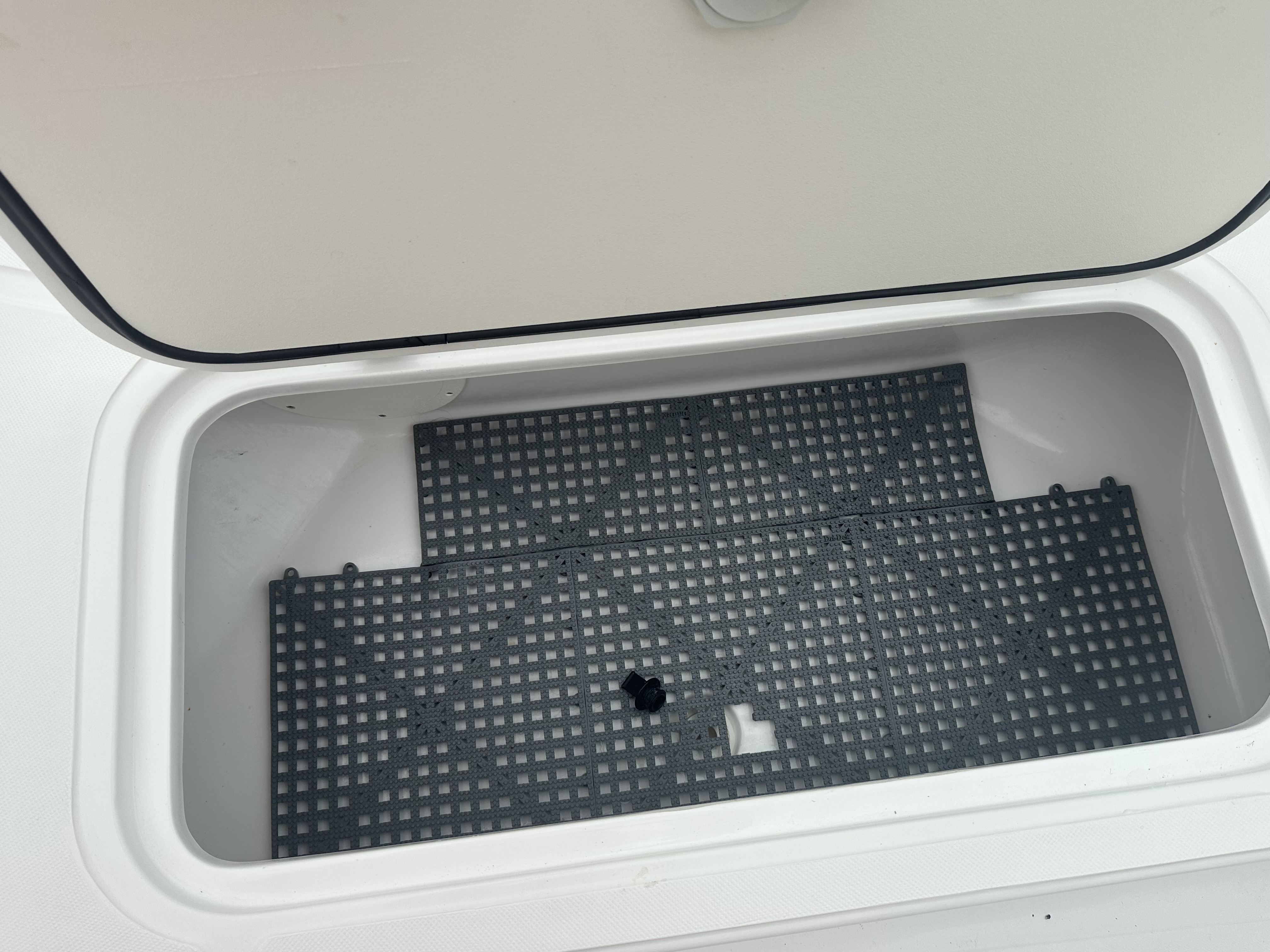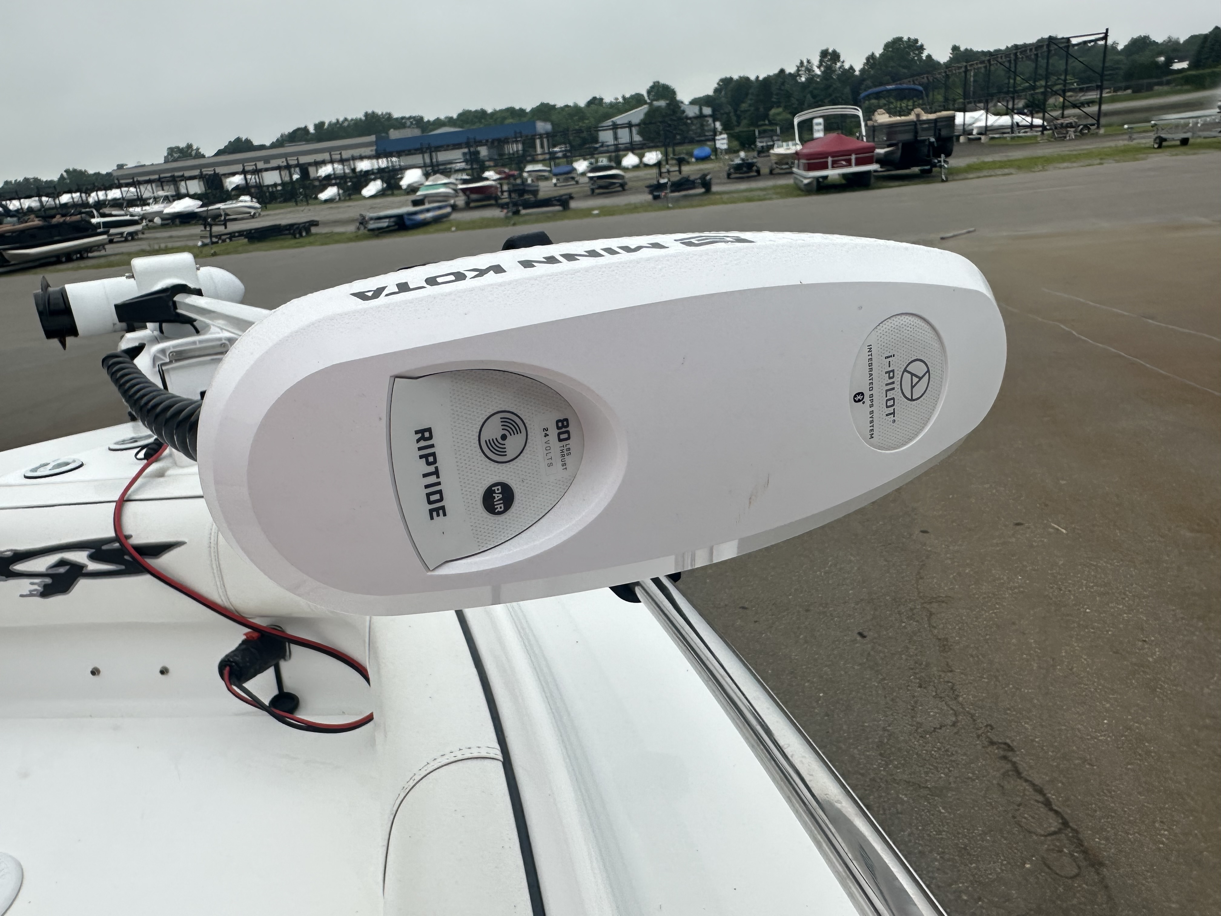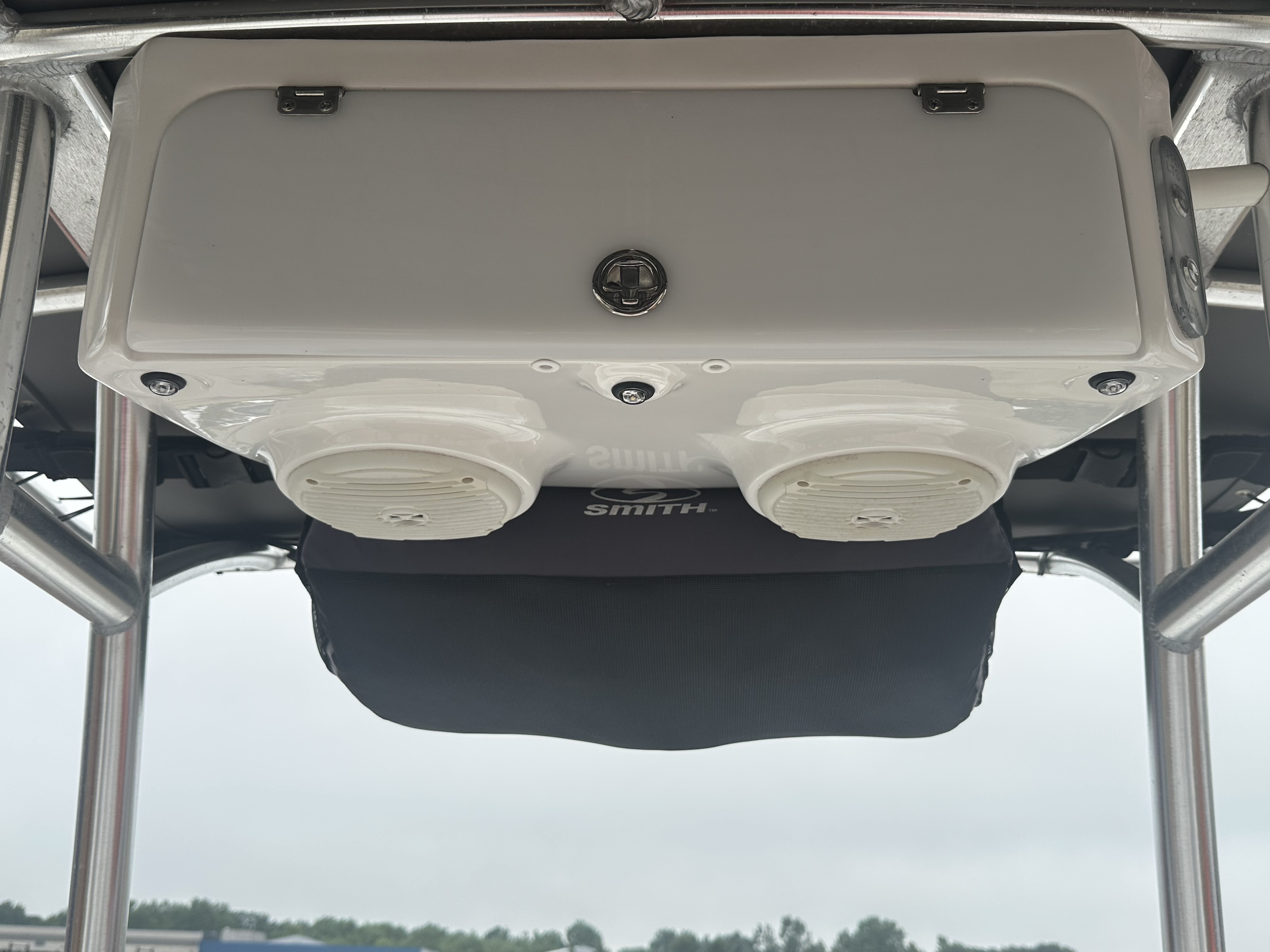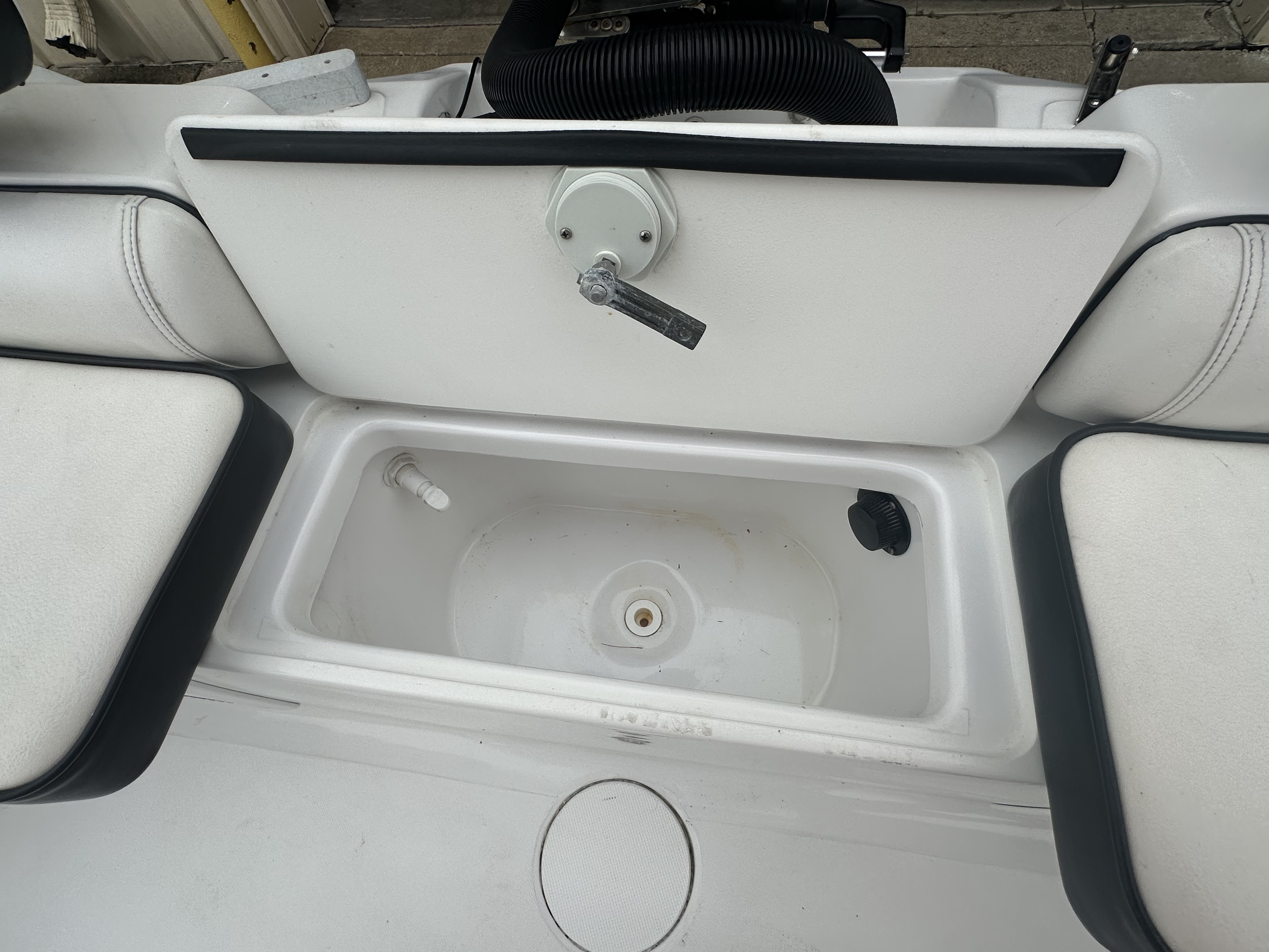 Boat comes with rear boarding ladder, removable aft seats, front removable bow cushion, MinnKota Riptide 80lb I-Pilot (hand control) with *Dual 24V Dakota Lithium batteries, 12V Dakota Lithium main crank battery, Simrad and Lowrance fish finders at console, compass, T-Top (rear light, speakers, storage compartment, lights), wash down system with fresh water and raw water option, battery selector switch, front and rear livewells and much more!