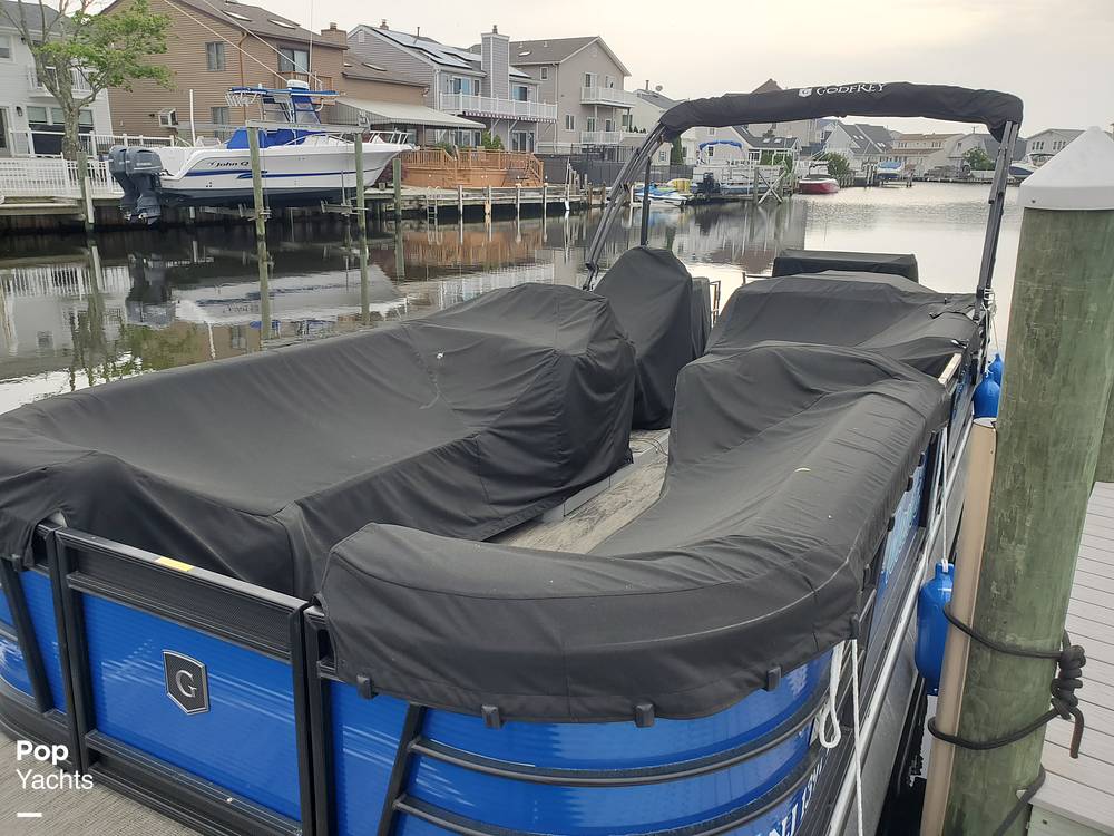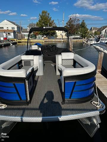 Onboard this 2021 Godfrey AquaPatio you will find amenities such as a bimini top, Captain's chair, in-floor storage, pop-up changing room / porta-potty room and much more!