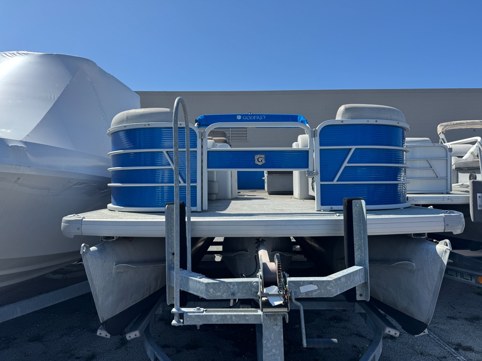 This 2022 Godfrey Sweetwater 2286 is nearly 23 feet in overall length and crafted with a durable aluminum hull and is perfect for leisurely outings on the water or a day of fishing. Powered by a 150 hp Yamaha outboard engine, it promises exhilarating performance and reliability for all your aquatic adventures. Enjoy a smooth ride, relax and enjoy the scenery. Ideal for gatherings with friends and family, this pontoon boat offers ample space for socializing and creating unforgettable memories. Its sleek lines and modern features make it a standout choice for those seeking both comfort and functionality. Experience the joy of boating with the Godfrey Sweetwater 2286! Schedule your Sea Trial and Take Home today! Boateka Certified Product: This certified pre-owned Pontoon meets our highest standards. It has passed a rigorous 100-point inspection, with every major system in excellent condition. Backed by a free 90-day warranty, the 2286 Sweetwater delivers premium performance, reliability and quality-without the new boat price.