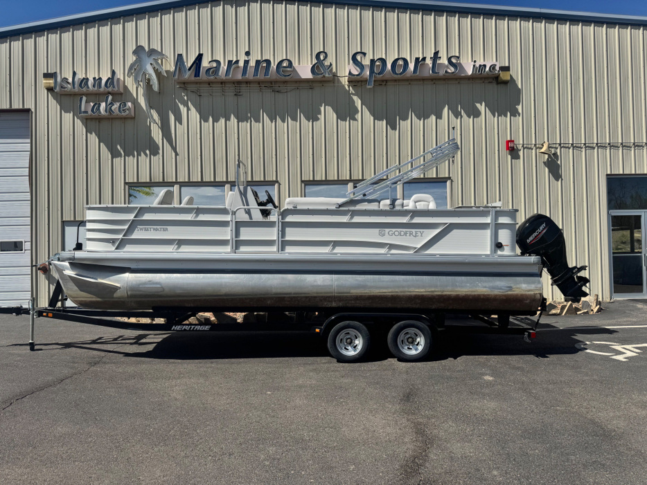 About the 2021 Godfrey Sweetwater Boat Now, we would like to introduce you to the unsurpassed 2021 Godfrey Sweetwater . This sumptuous pontoon boat is not only noted for her amazing layout and design, but also for her performance on the water! She's perfect for family outings, fishing trips, or simply a tranquil cruise down the river. Unmatched Quality and Design The 2021 Godfrey Sweetwater upholds the Godfrey legacy of excellent craftsmanship and innovation. The boat offers top of the line comfort with its tailored upholstery, plush seating, and an expansive deck layout that gives plenty of room for both relaxation and activities. The striking design details are complemented by the latest technology ensuring a seamless experience for passengers. Performance and Features But this boat is not just about aesthetics. Packed with ample power and superb handling, the 2021 Godfrey Sweetwater offers smooth rides in even choppy waters. It's also equipped with advanced navigation tools for the ultimate user-friendly experience. For fishers, the boat comes with a built-in, bait-friendly fishing station complete with rod holders. The efficient underdeck splash guards improve boat performance as well. Conclusion All in all, the 2021 Godfrey Sweetwater offers a unique blend of style, functionality, and performance. If you are in search of a reliable and stylish boat for unforgettable aquatic adventures, look no further. Embark on your dream boat trip with the 2021 Godfrey Sweetwater!
